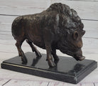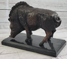 Wild Boar Pig Feral Hog Bronze Statue Sculpture Figure on Marble Base J. Moigniez