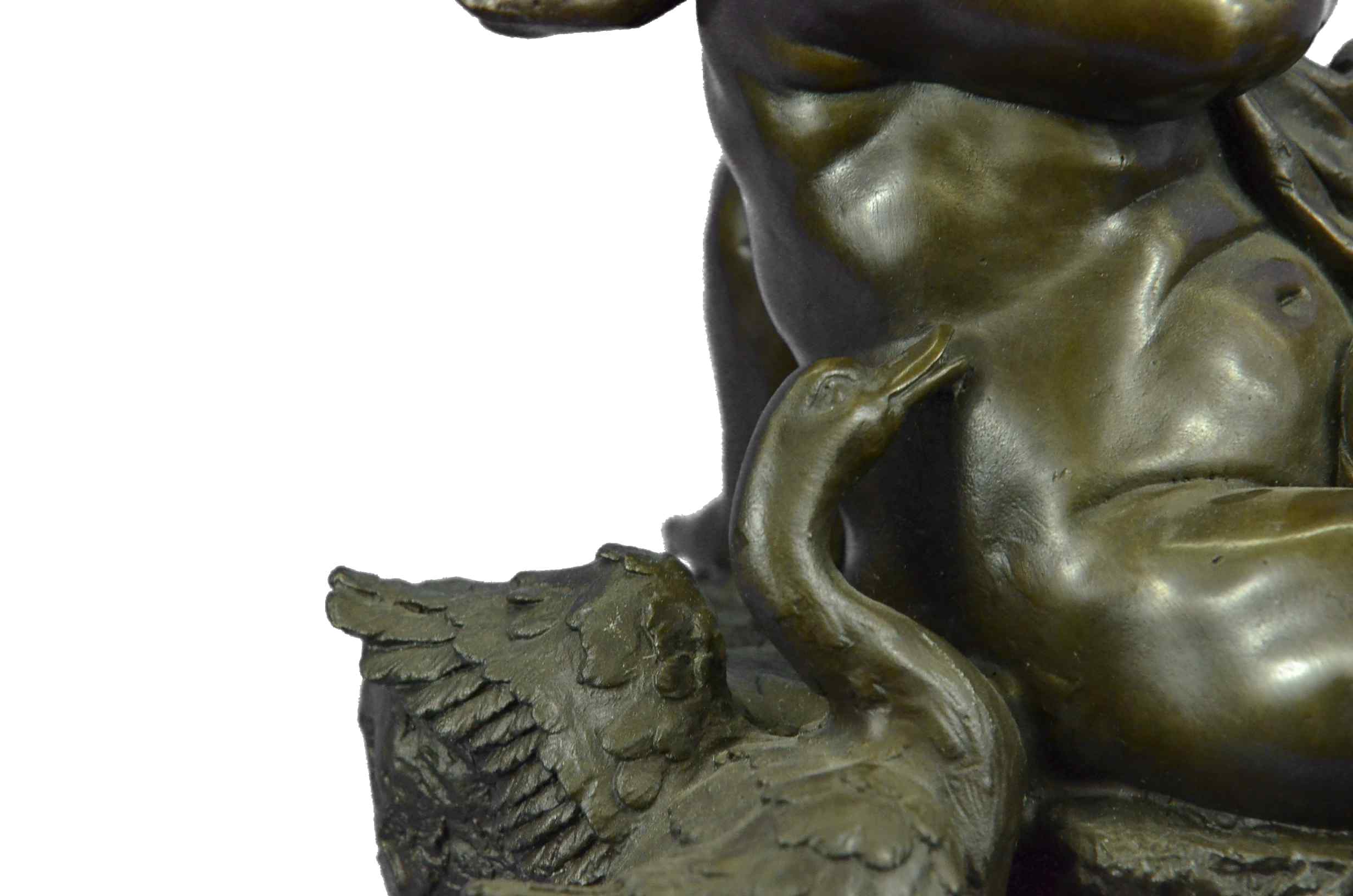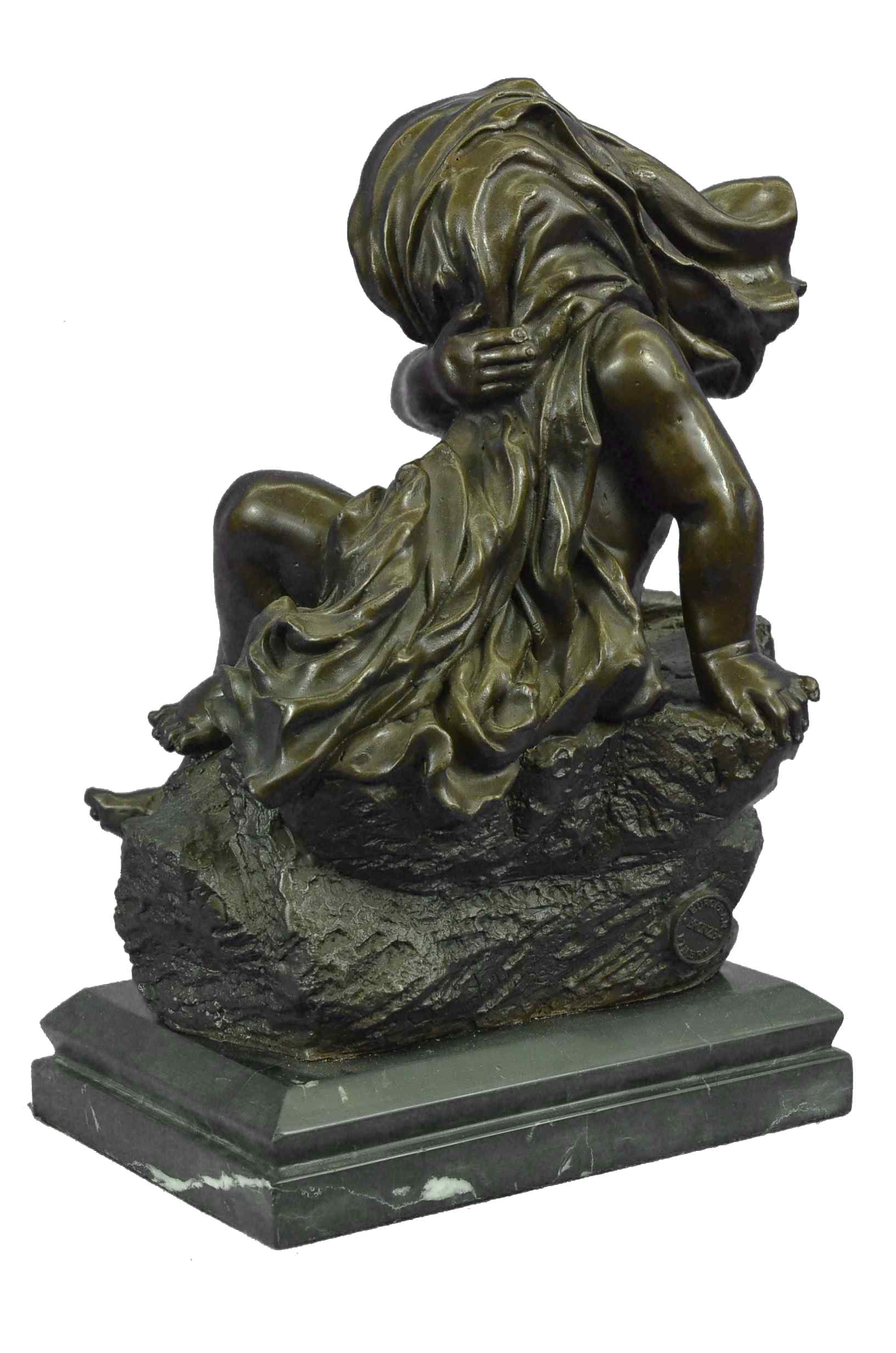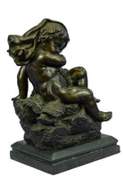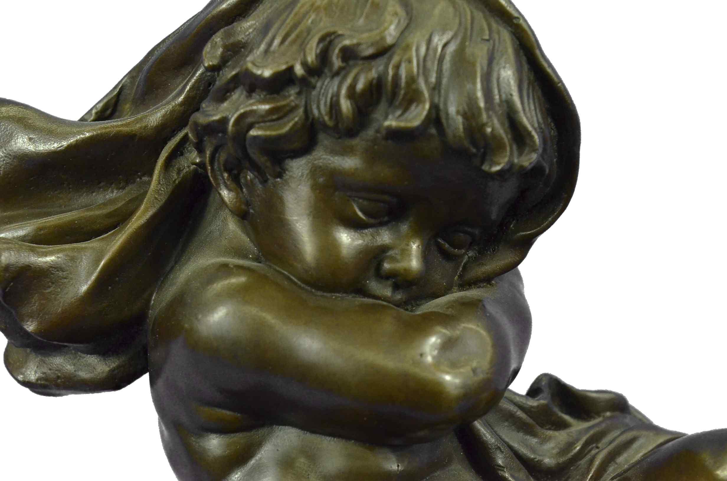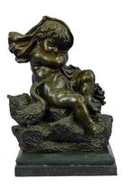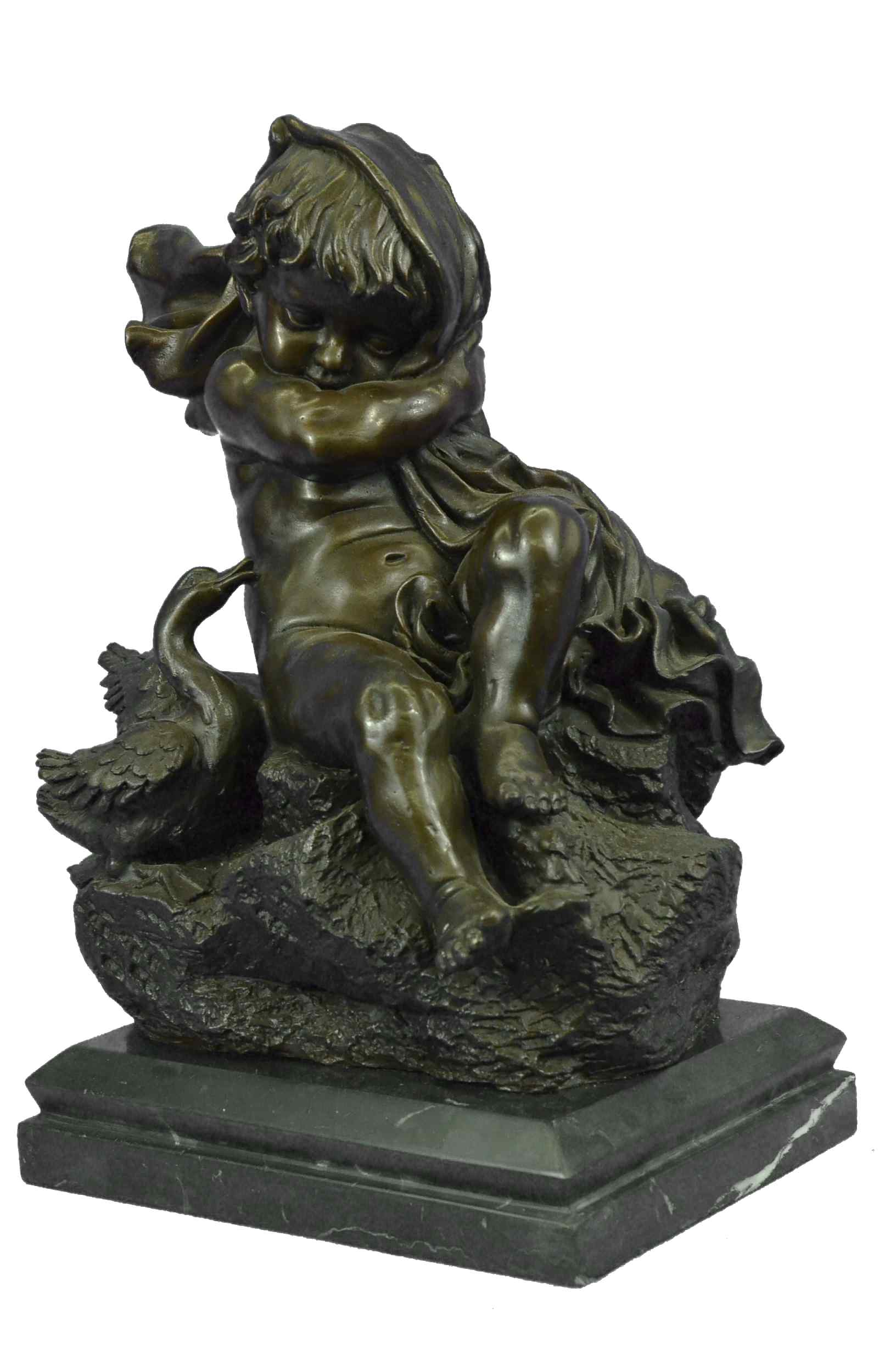 An Innocent Nude Toddler With Her Blanket & Duck Bronze Sculpture Statue Figure