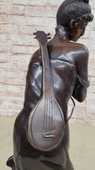 Art Deco Bronze Statue of Girl w/ Mandolin Signed Moreau Sculpture 20" x 7"
