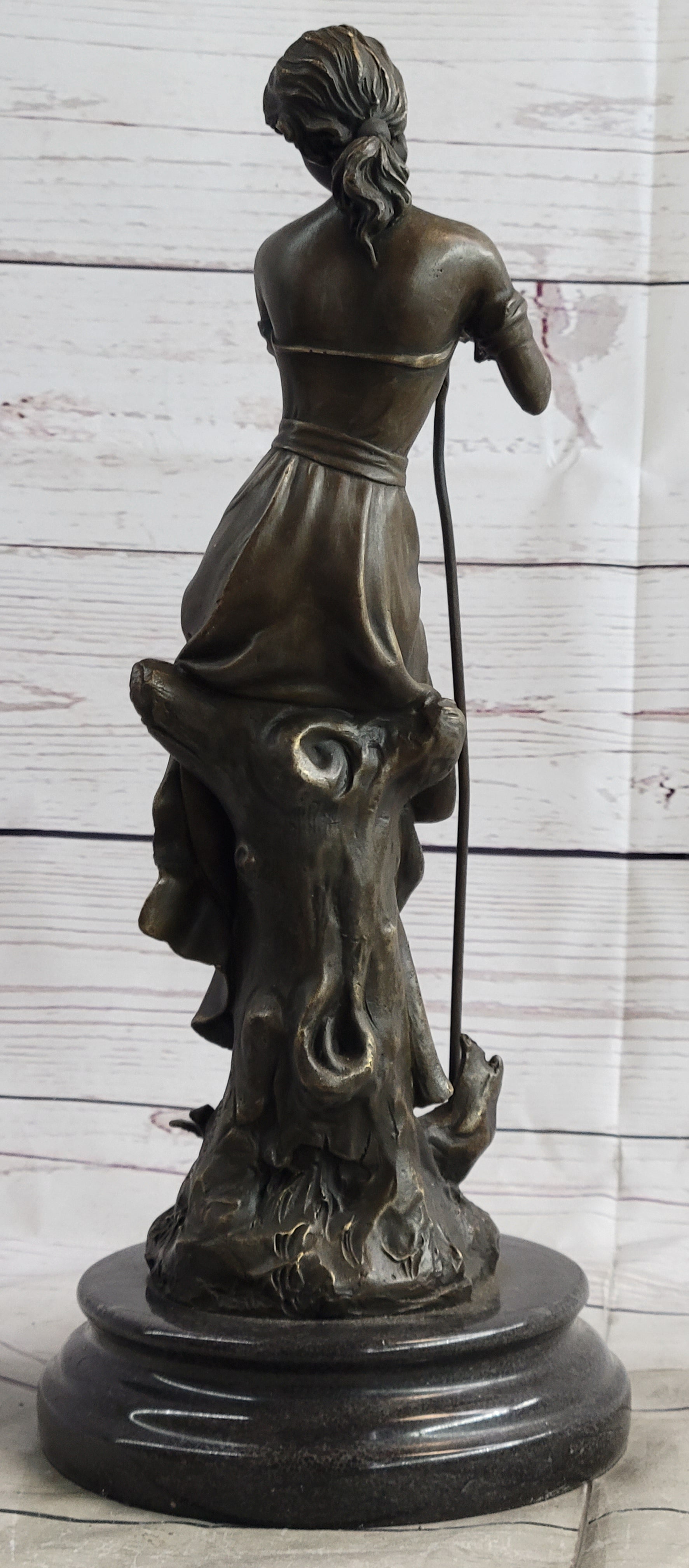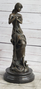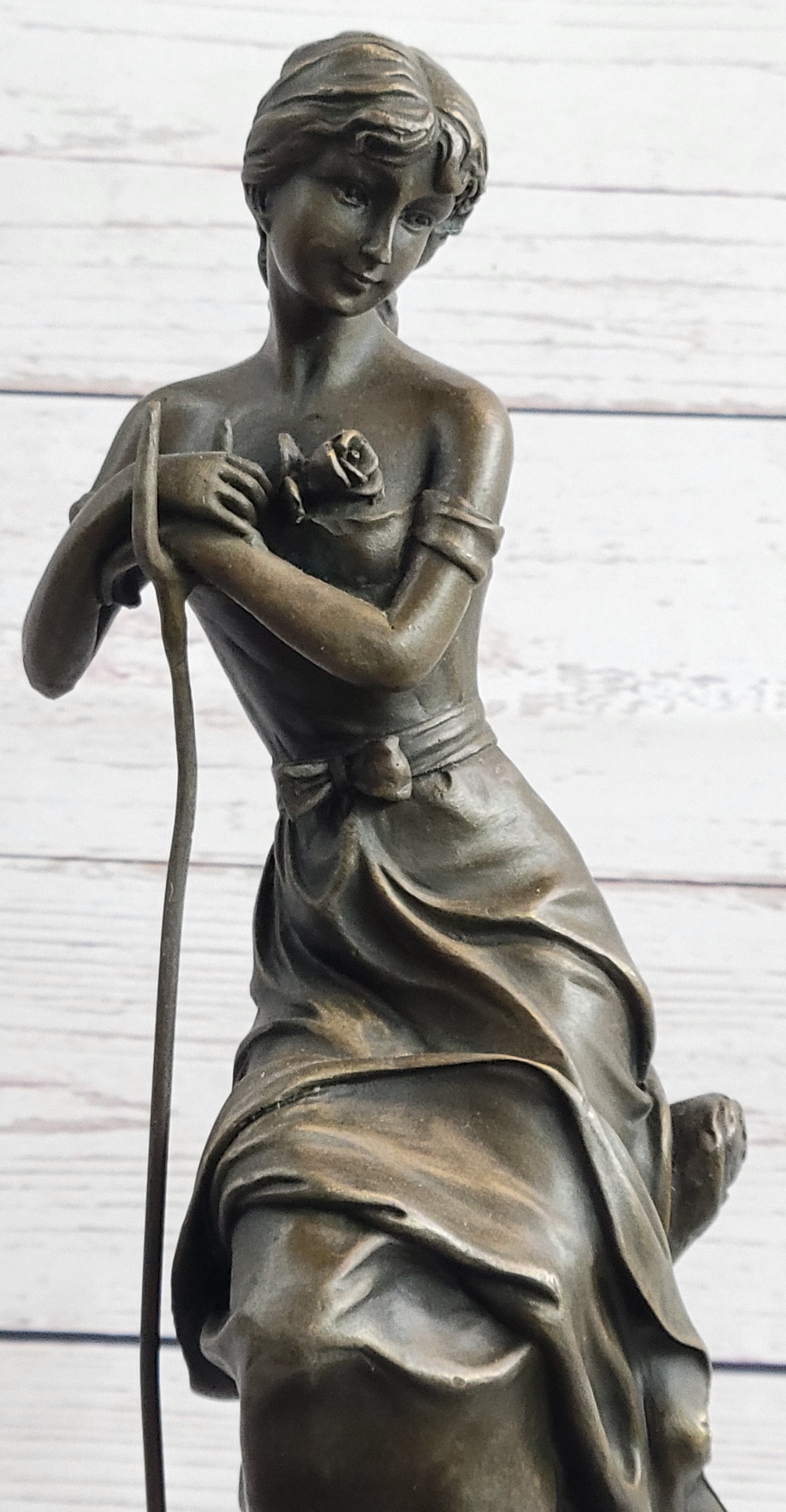 Art Nouveau Sexy Maiden Holding Rose Flower in Garden Bronze Sculpture Statue