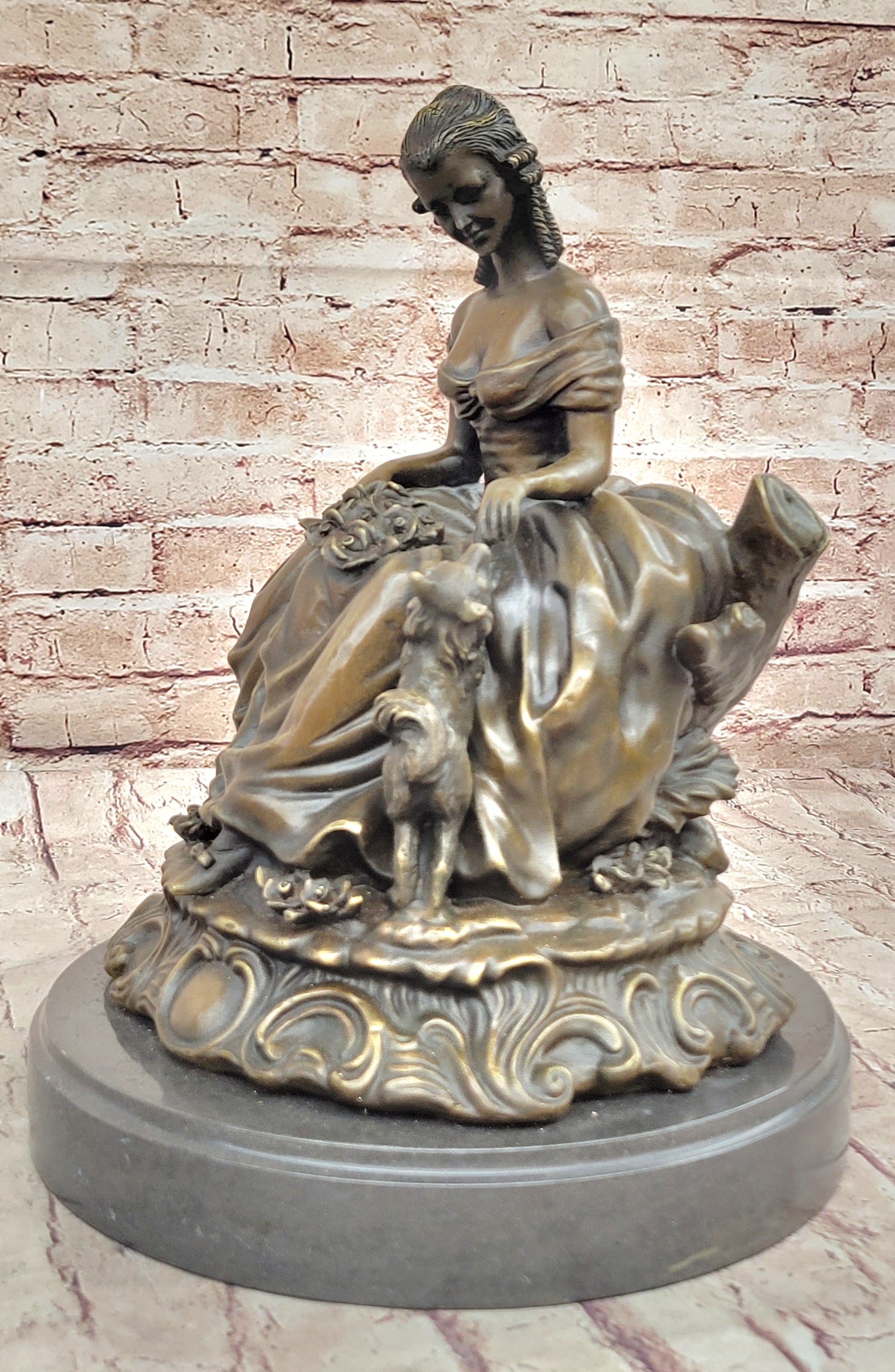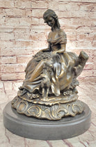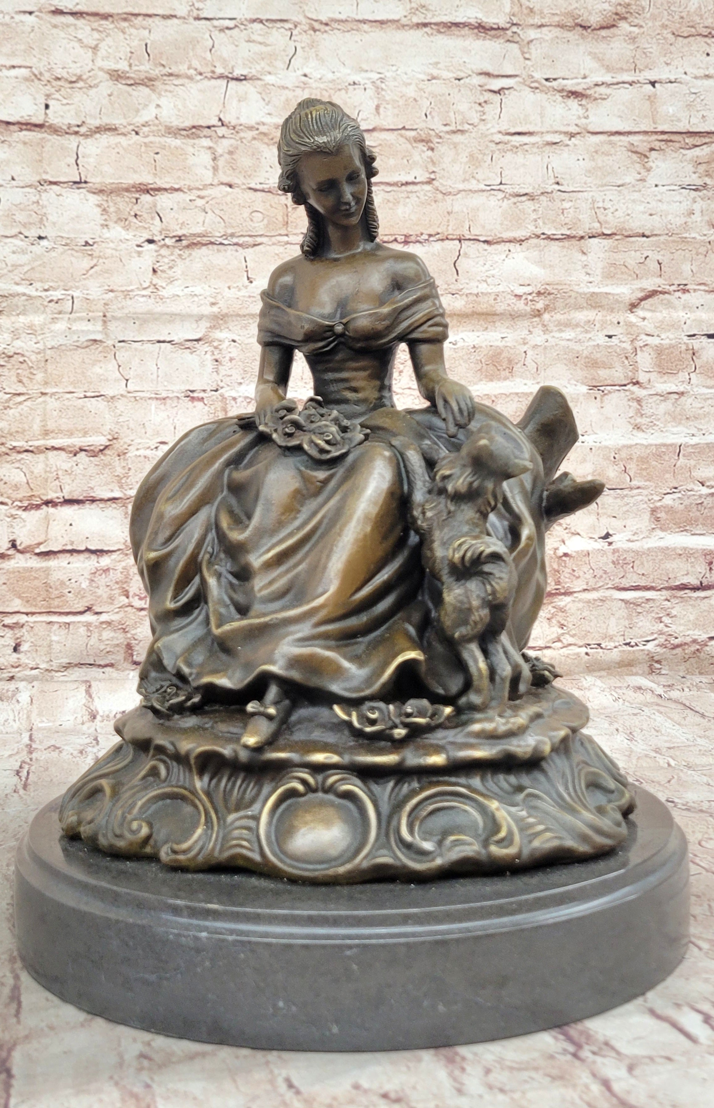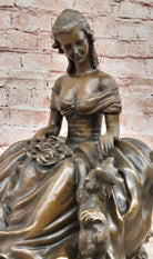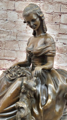 Bronze Sculpture of Victorian Lady with Dog Signed A. Moreau