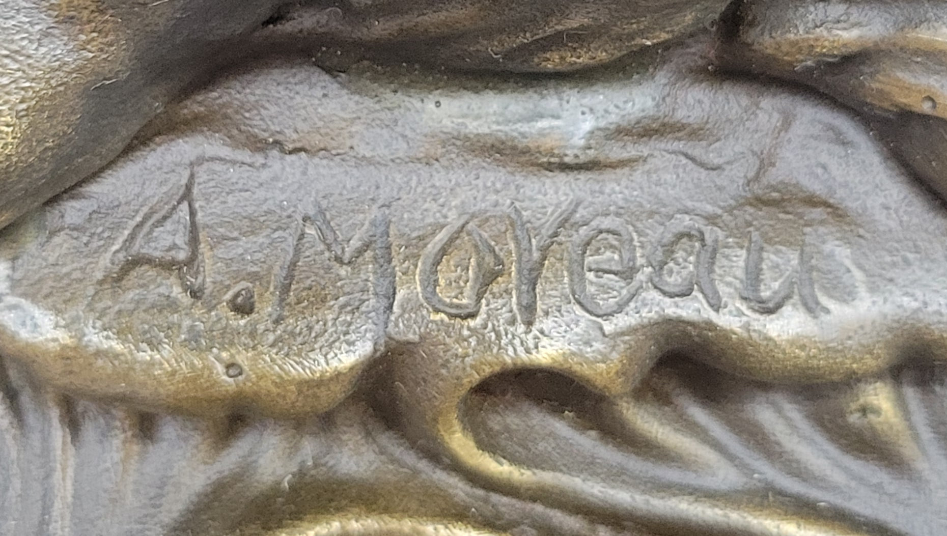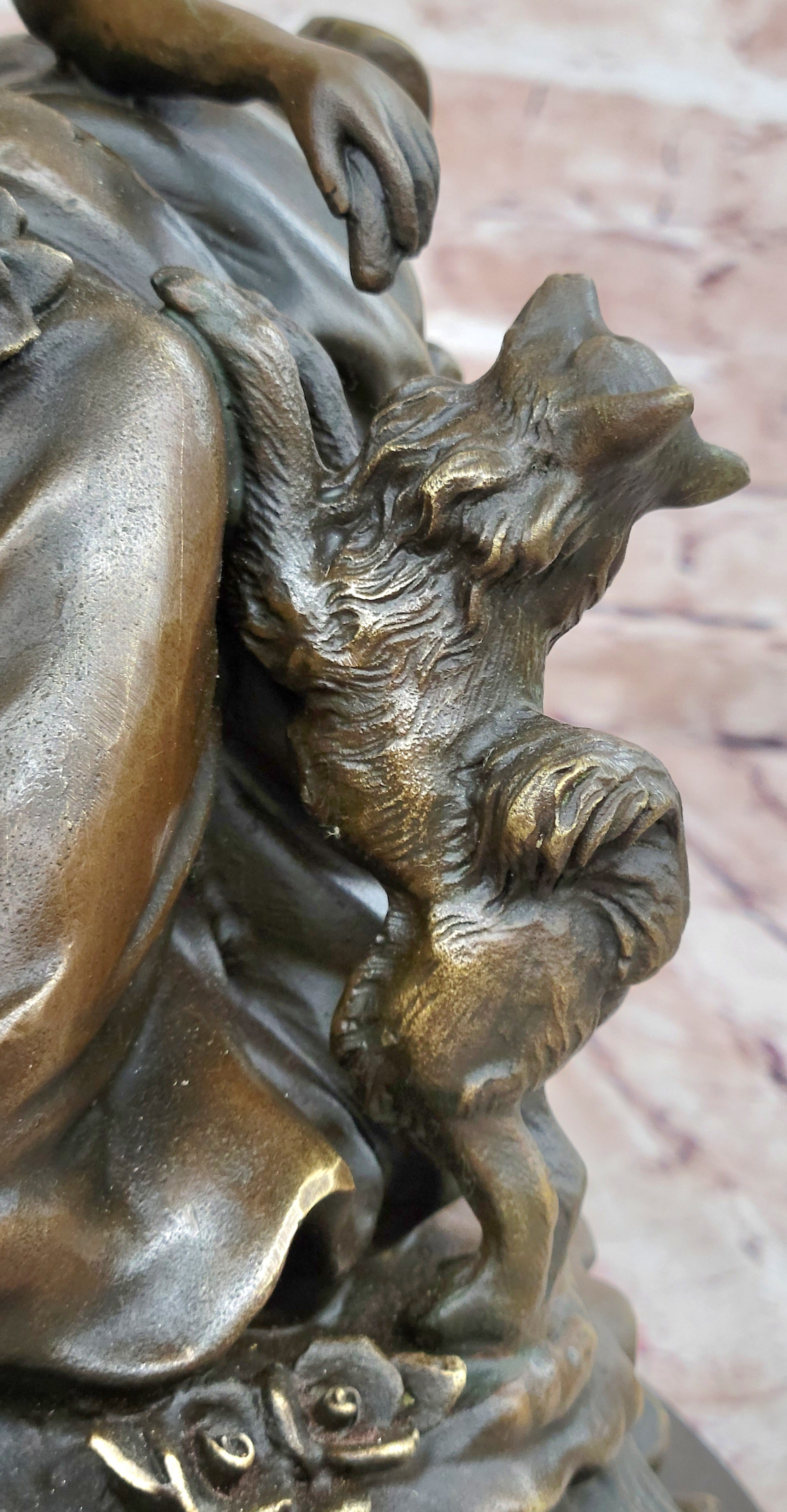Handcrafted using the ancient "Lost Wax Method," this solid 100% bronze sculpture is finished with a rich brown patina, giving it depth and character. Signed by the artist A. Moreau, this timeless piece stands as a beautiful tribute to the bond between human and animal, making it a perfect addition to any fine art collection or elegant décor.Bronze Dimensions with Marble Base: Height 14" X Width 10"
