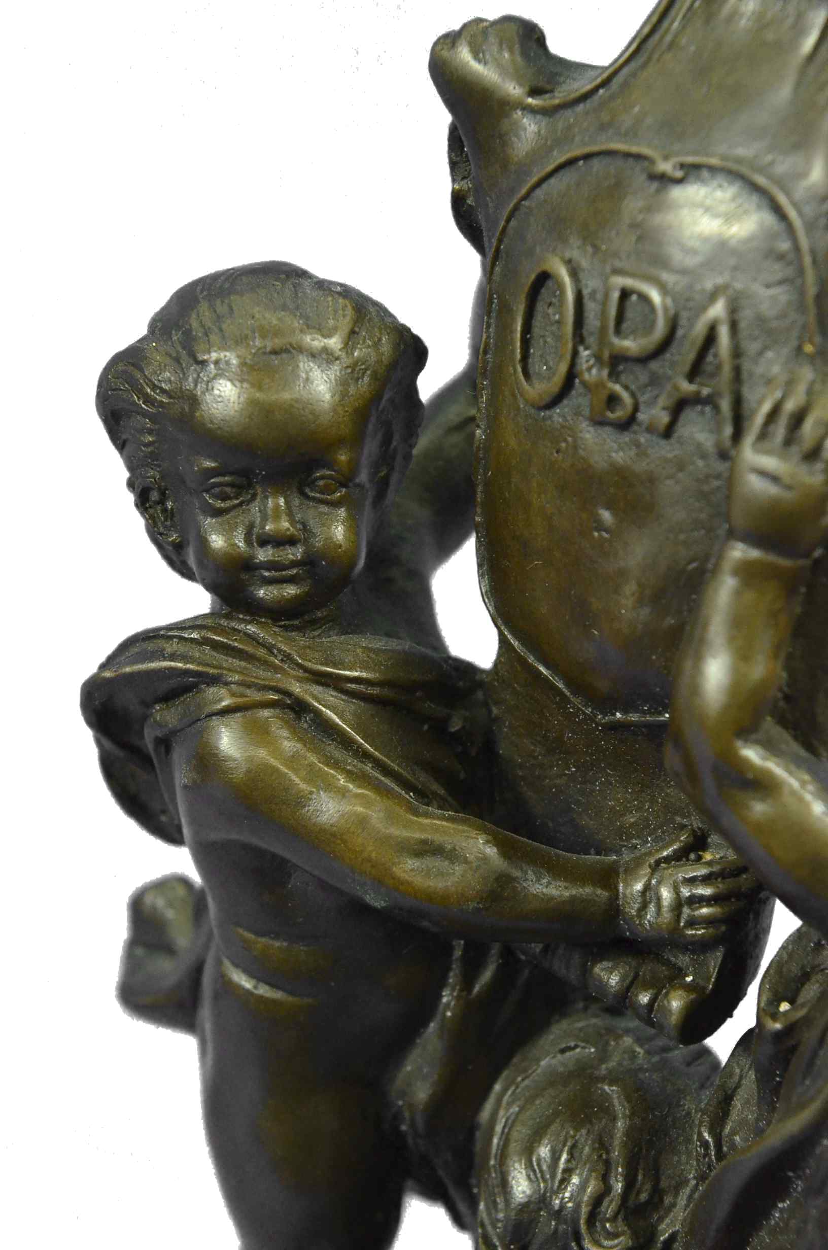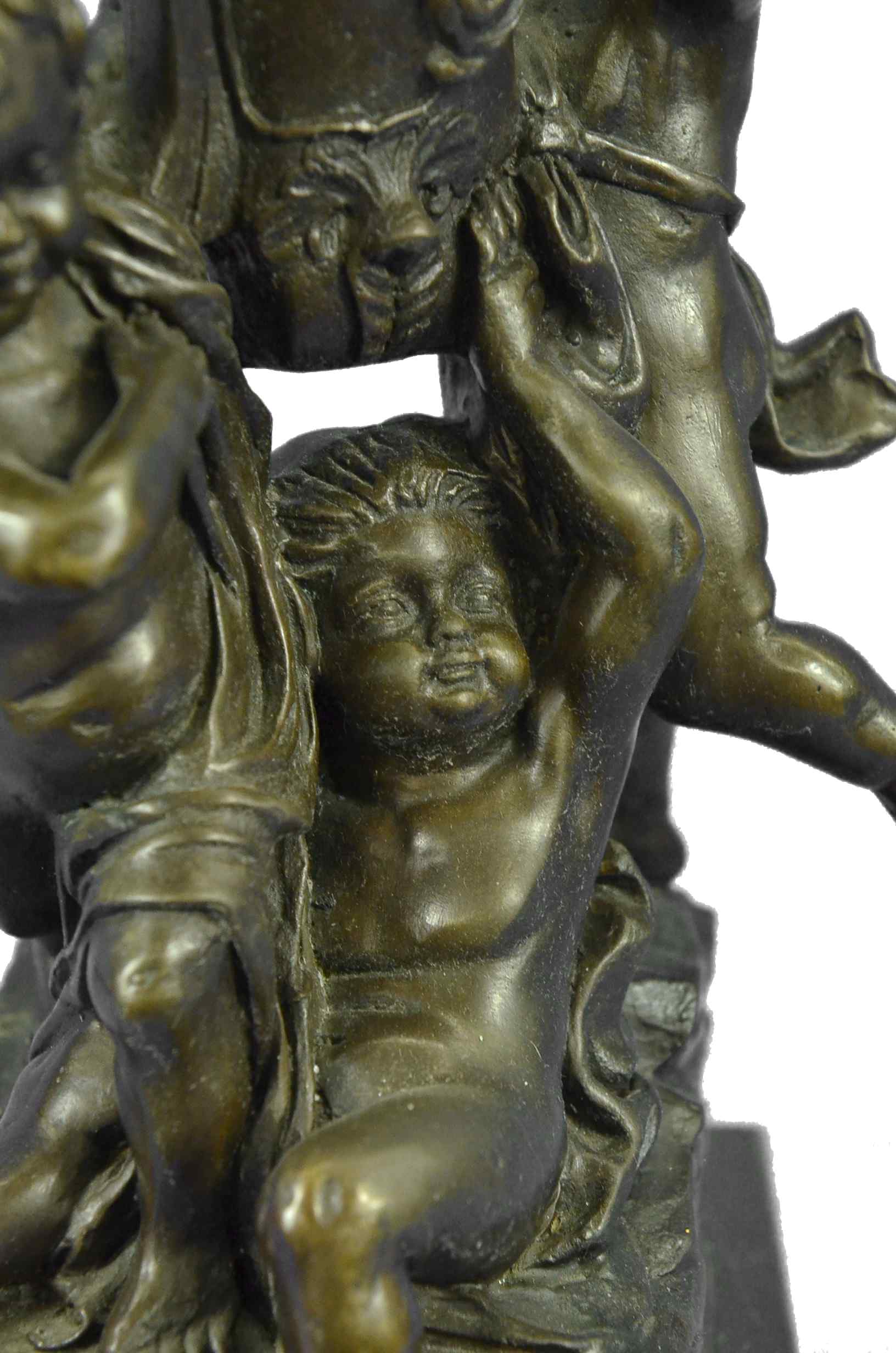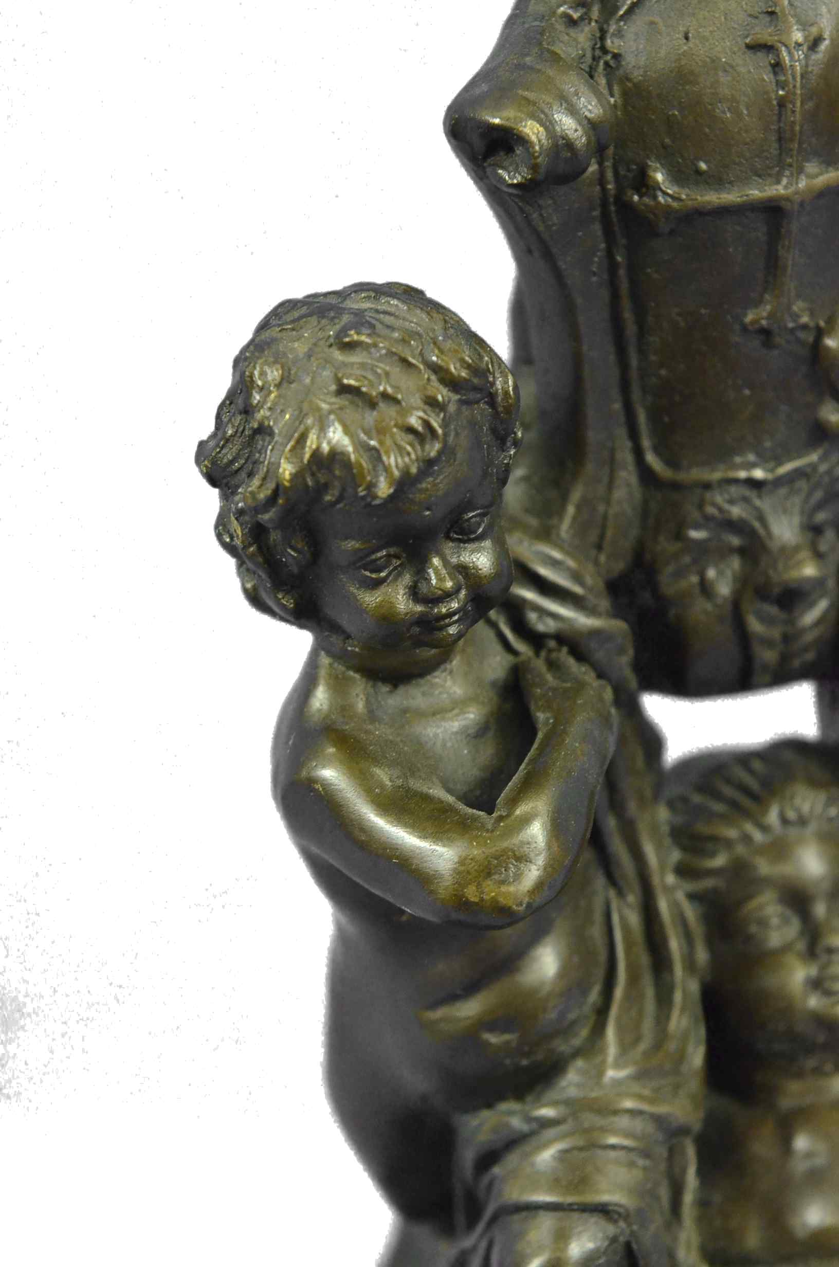 CLEARANCE SALE Bronze Sculpture Three Children Holding Cross Marble Base Figure