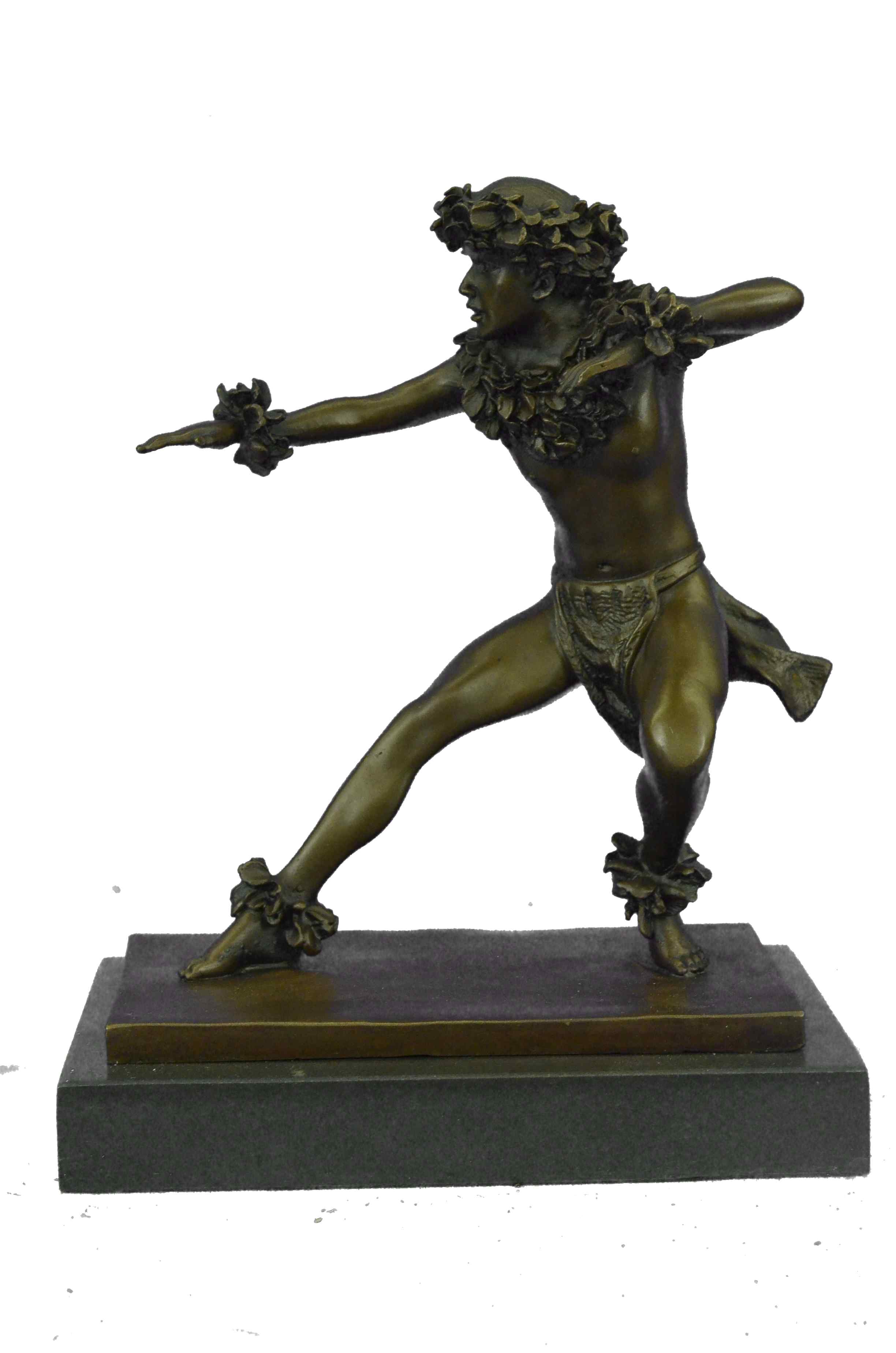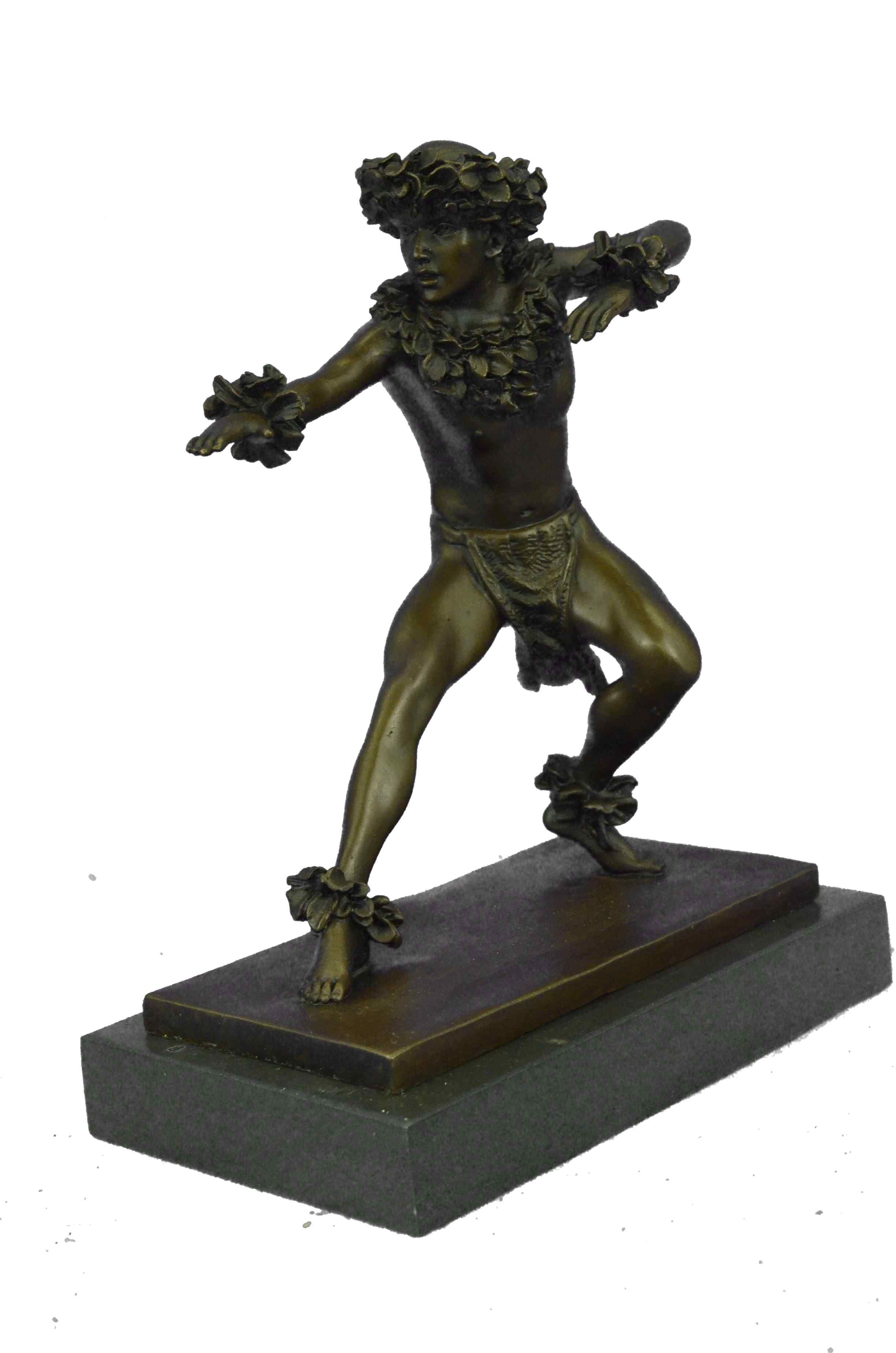 Male Hula Dancer Hawaiian Sculpture Art Bronze Marble Statue Home Decor Figure