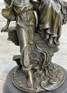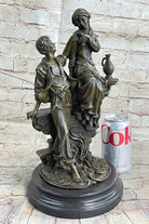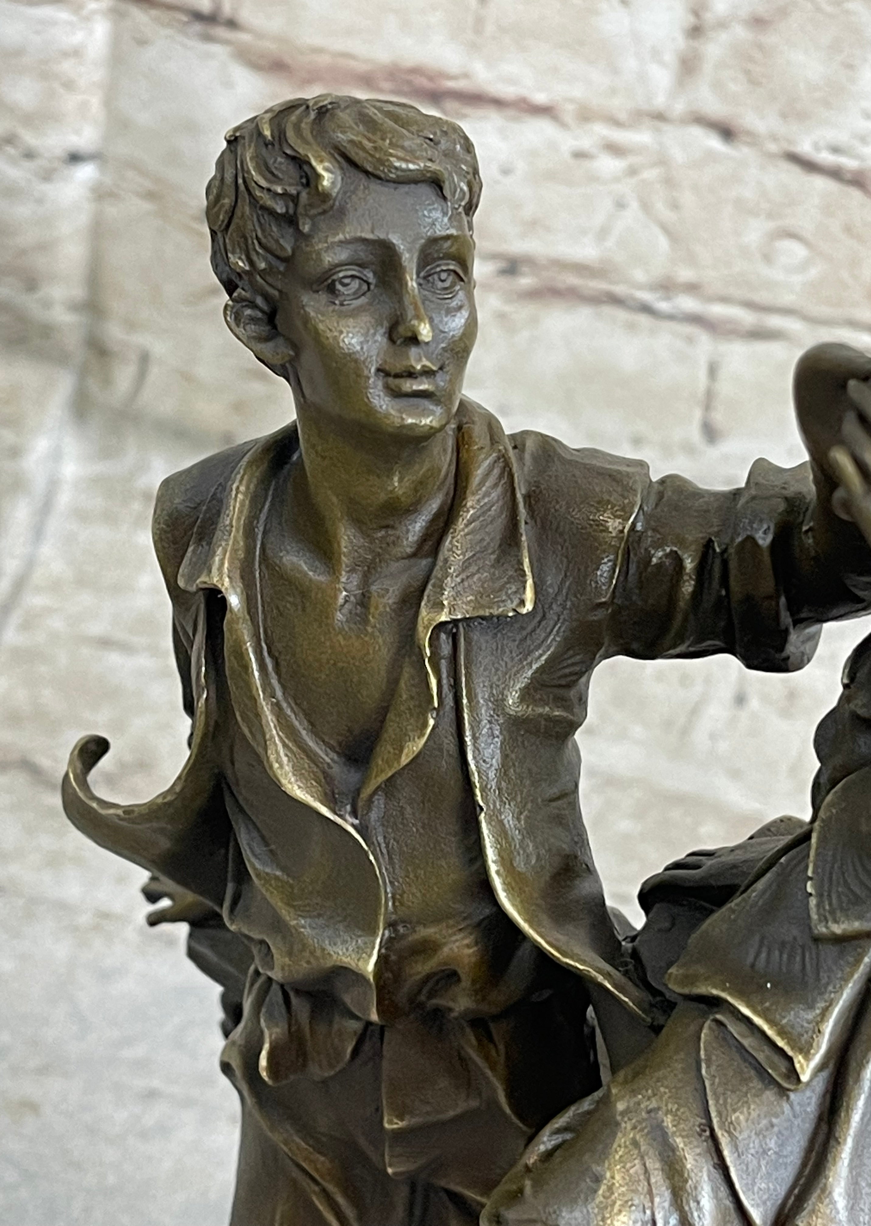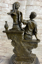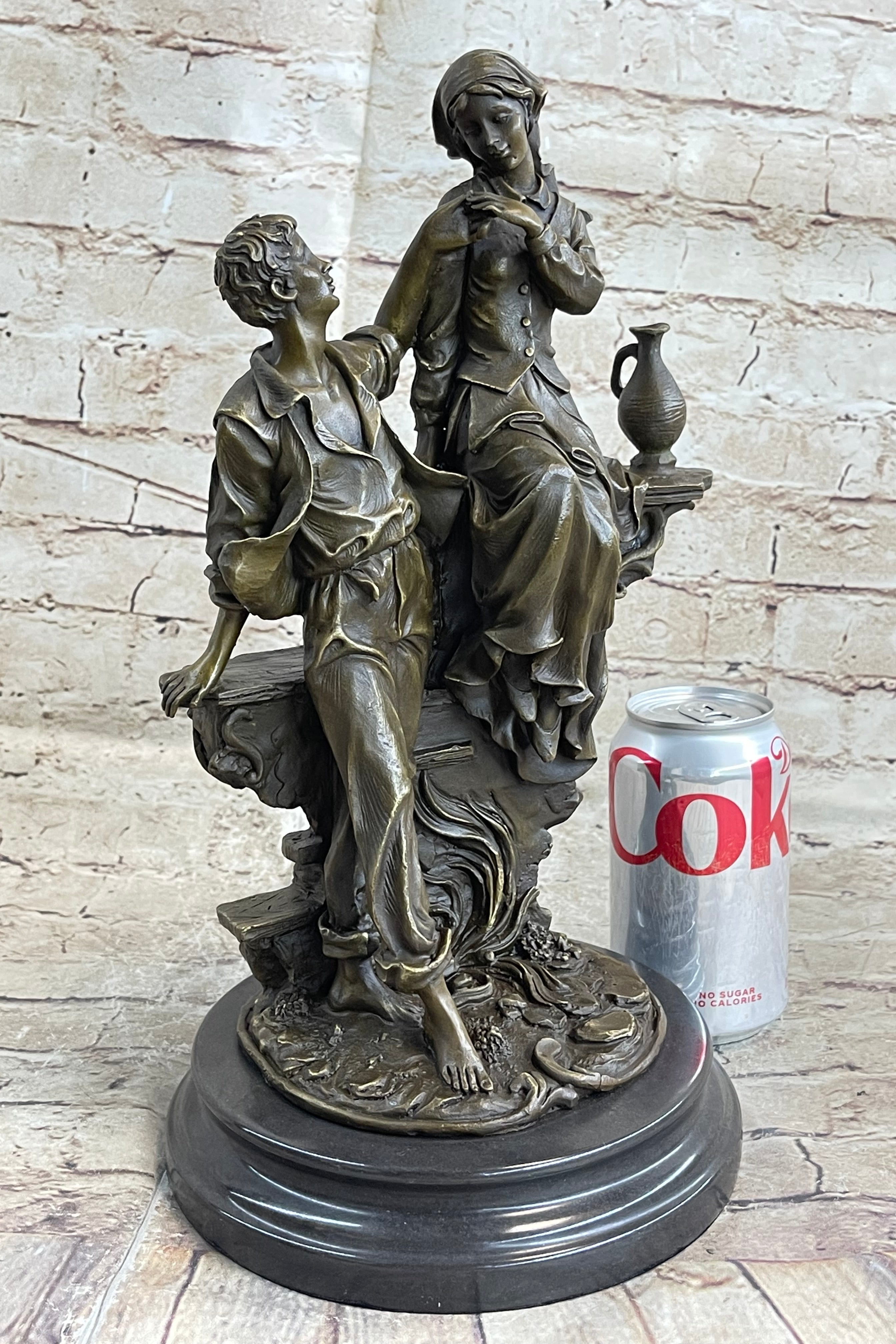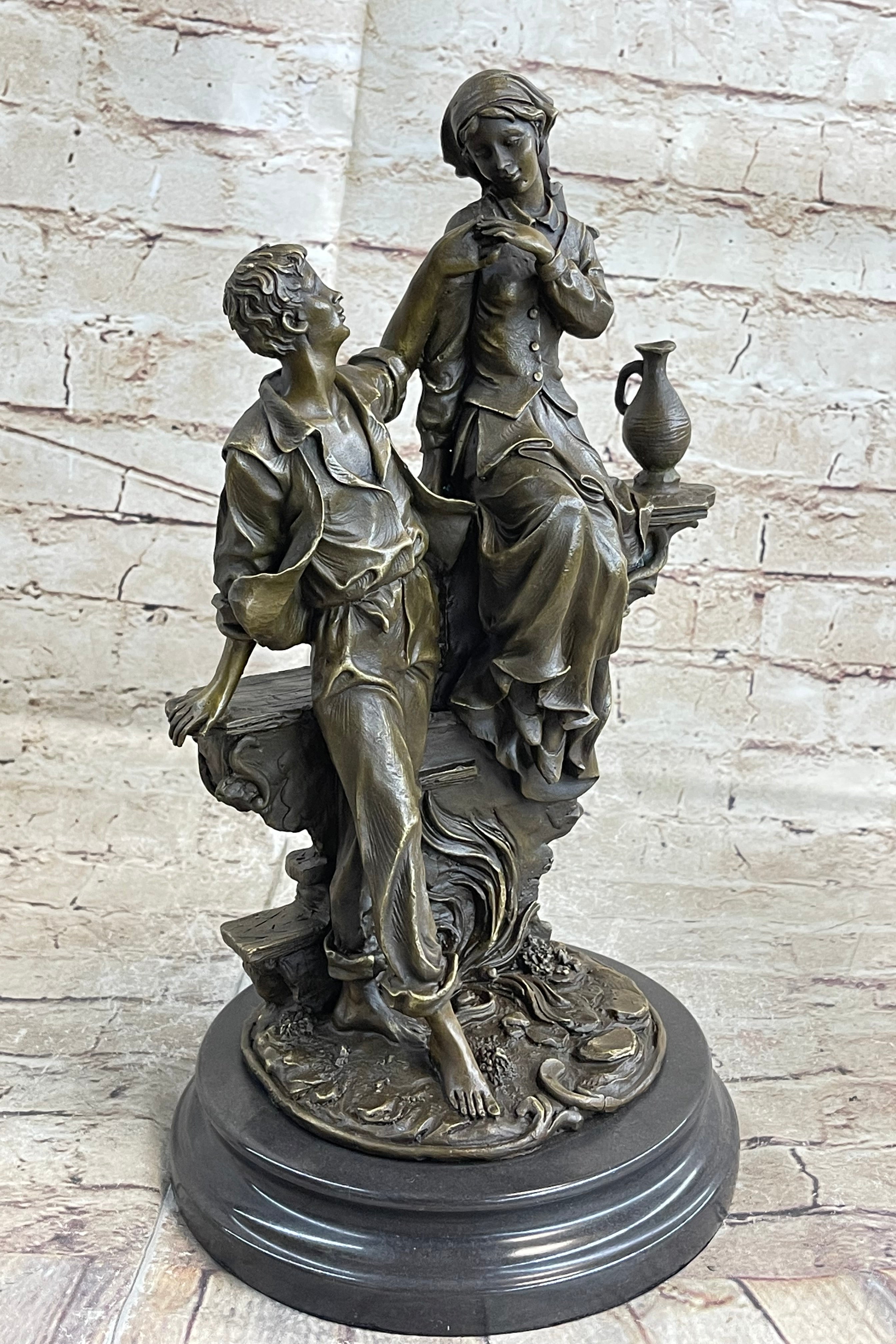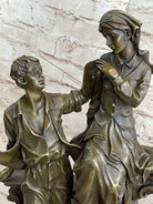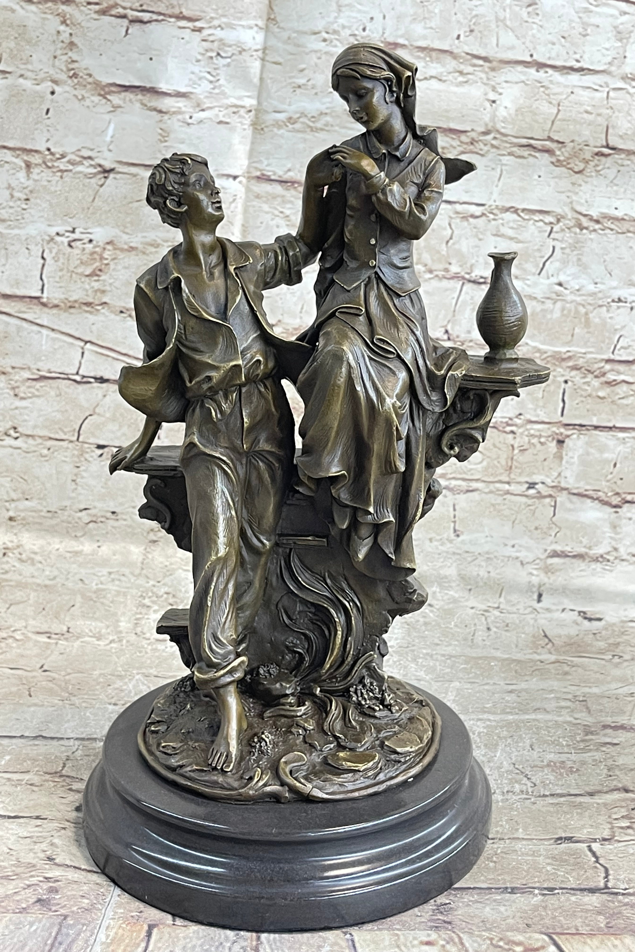French Bronze Statue Sculpture Young Lovers Romance Anniversary Figure Decor 14" x 7.5"