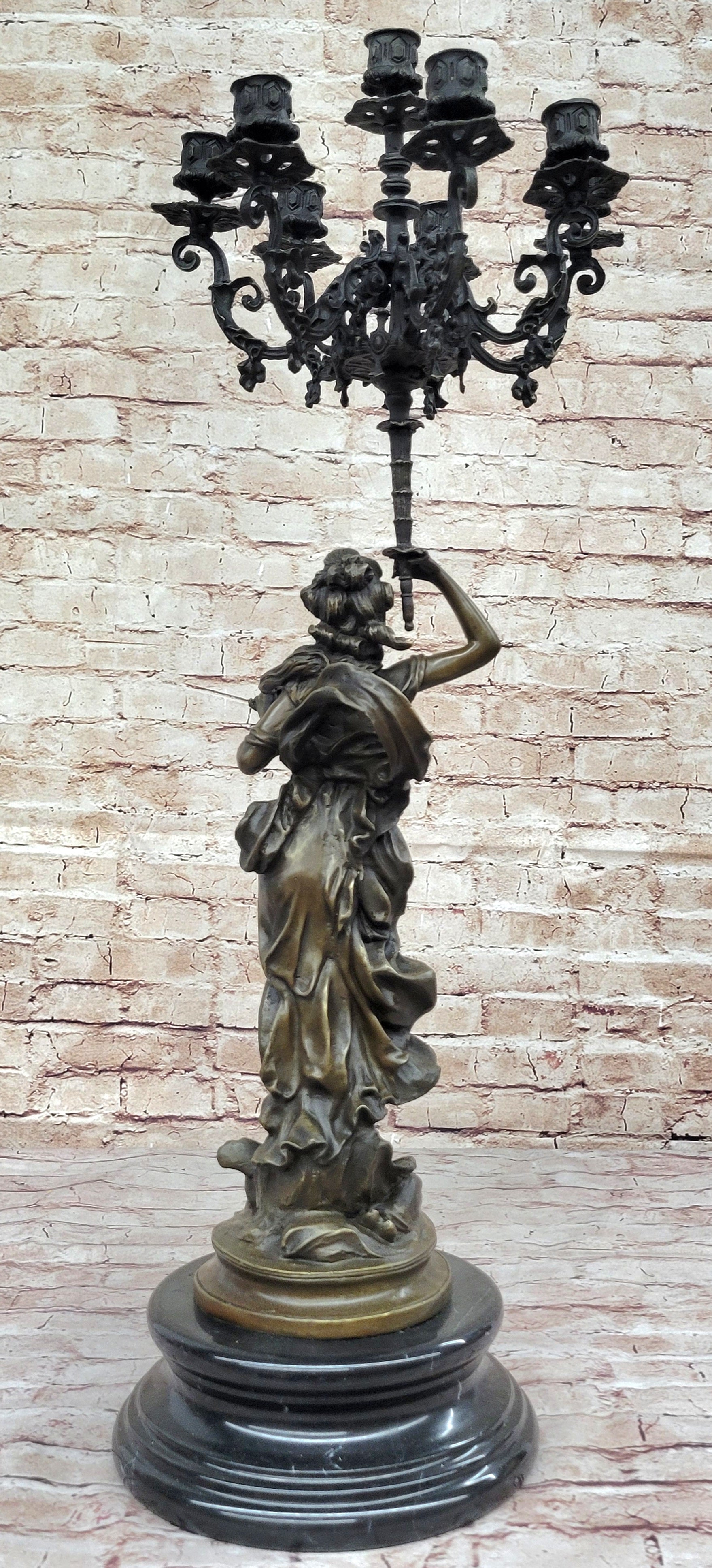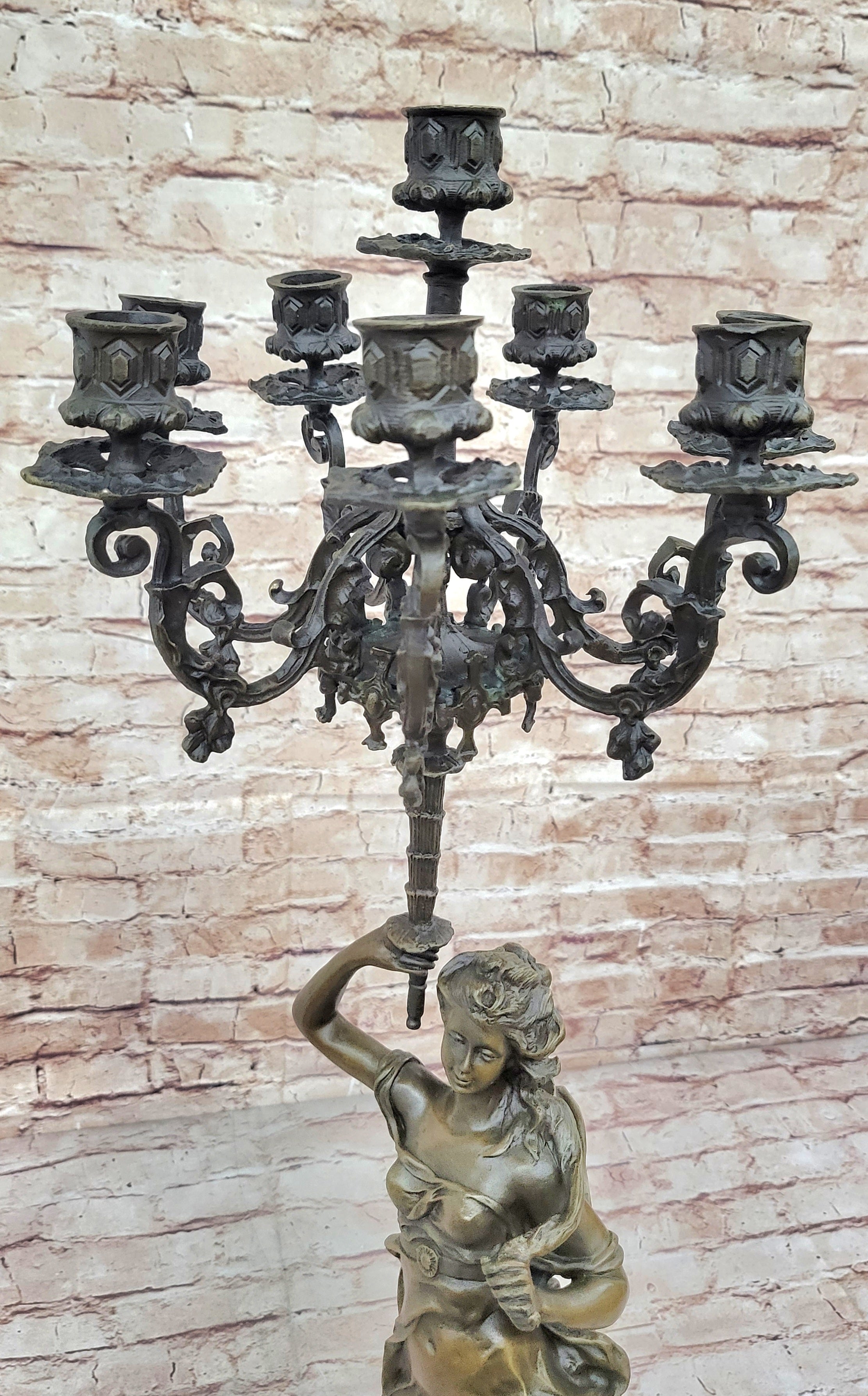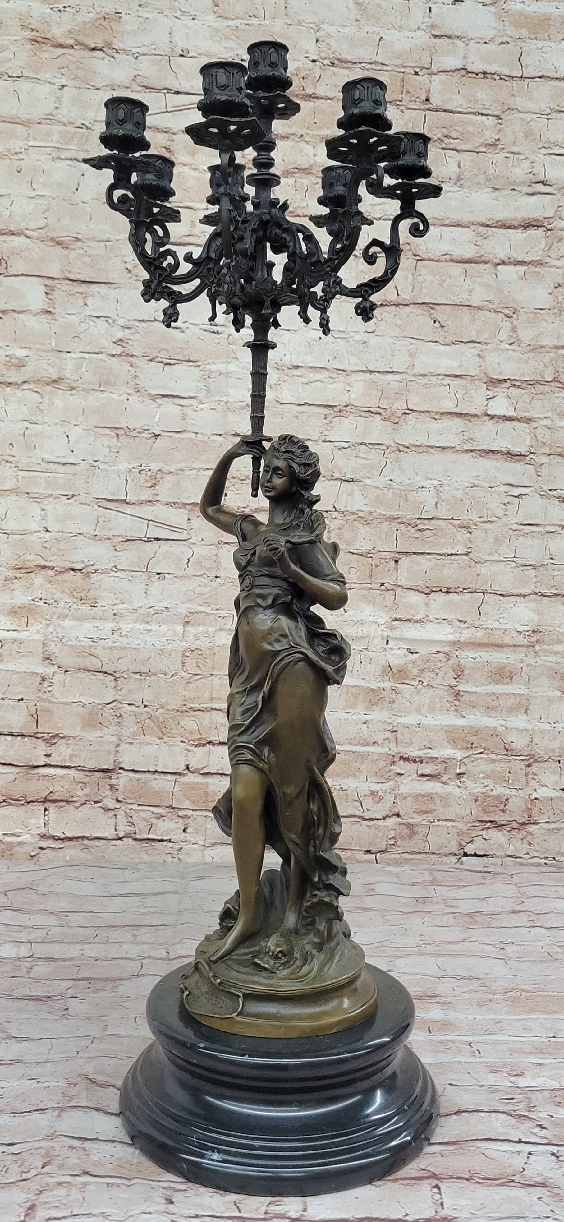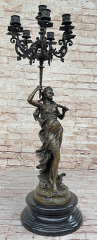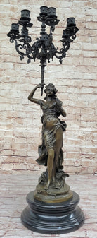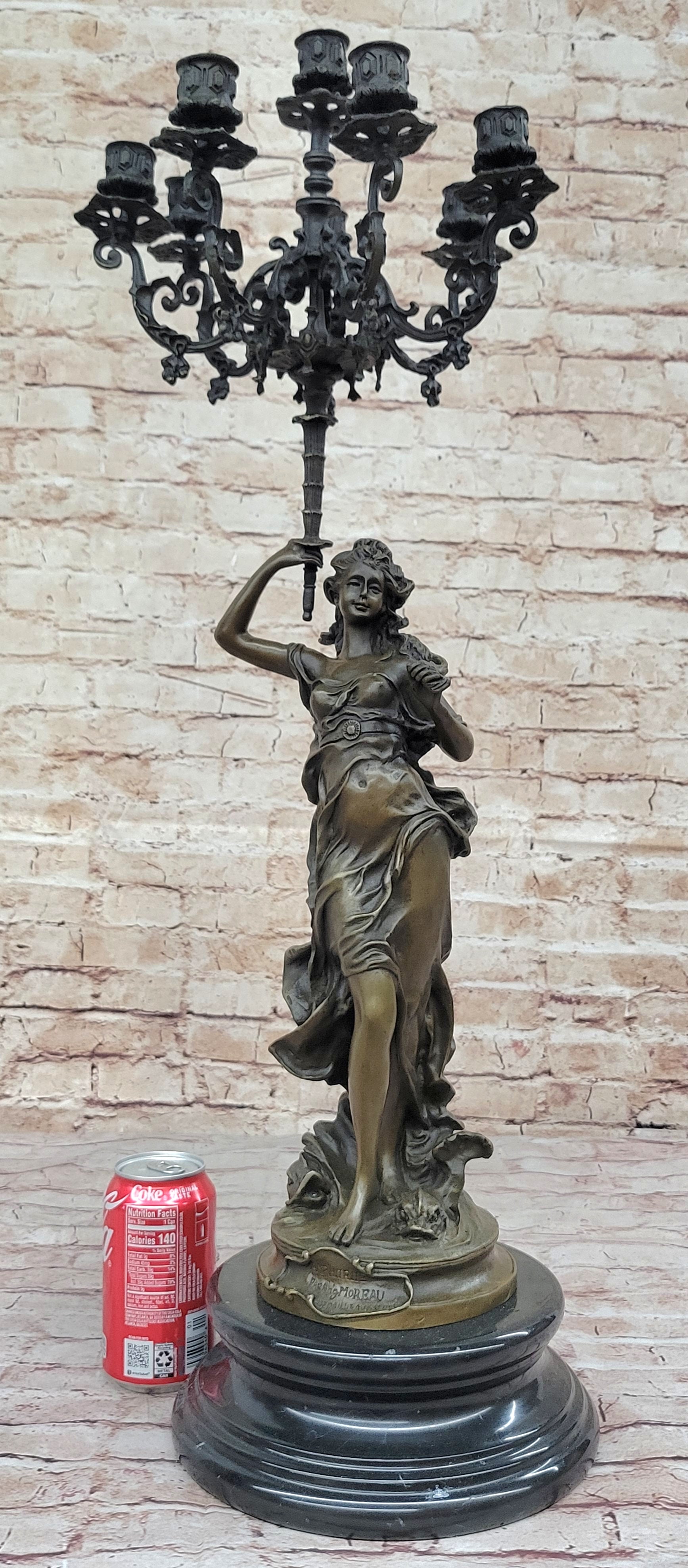 Hot Cast Bronze Figurative French Candelabra Candleholder Female Figure by Moreau