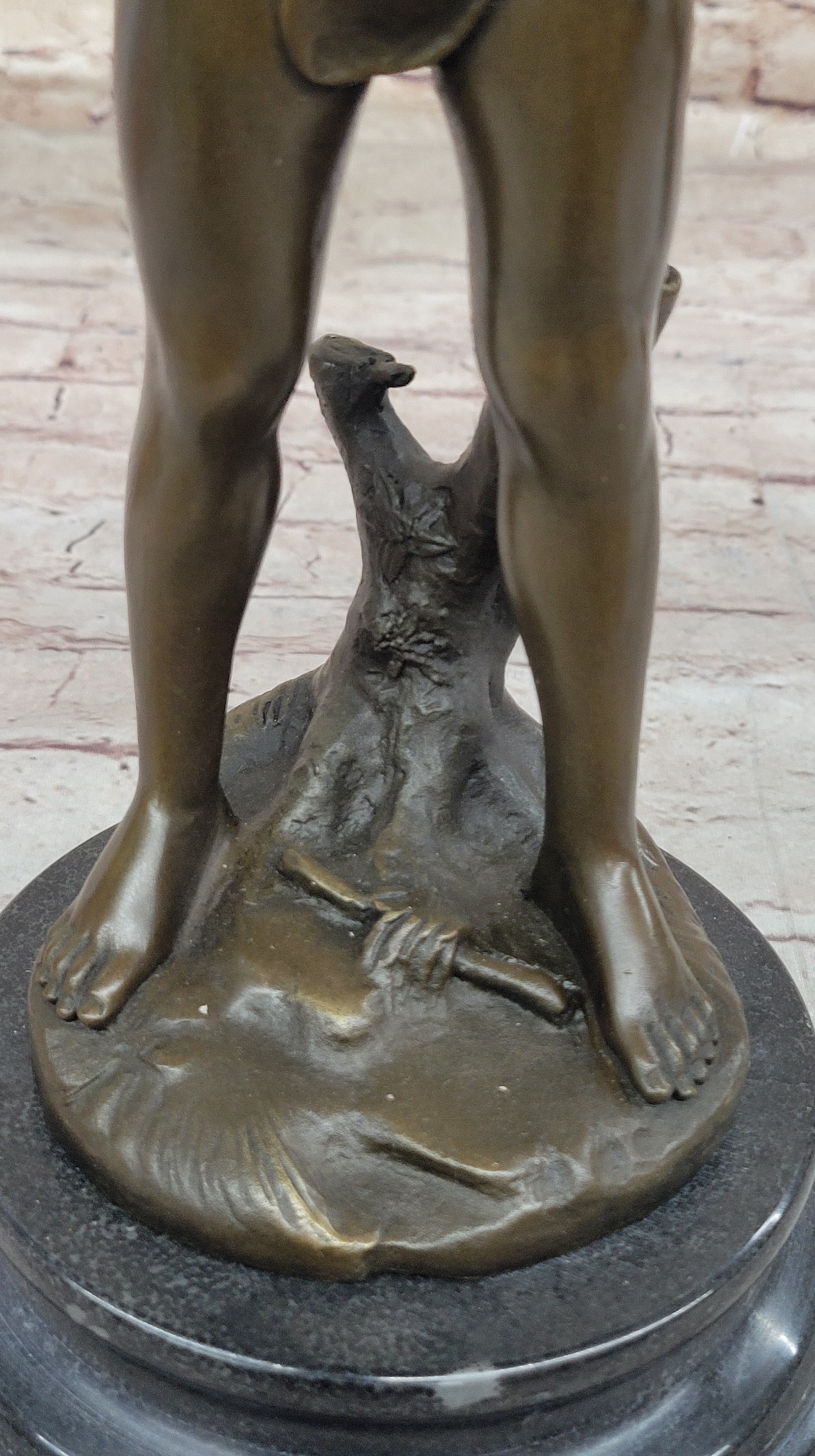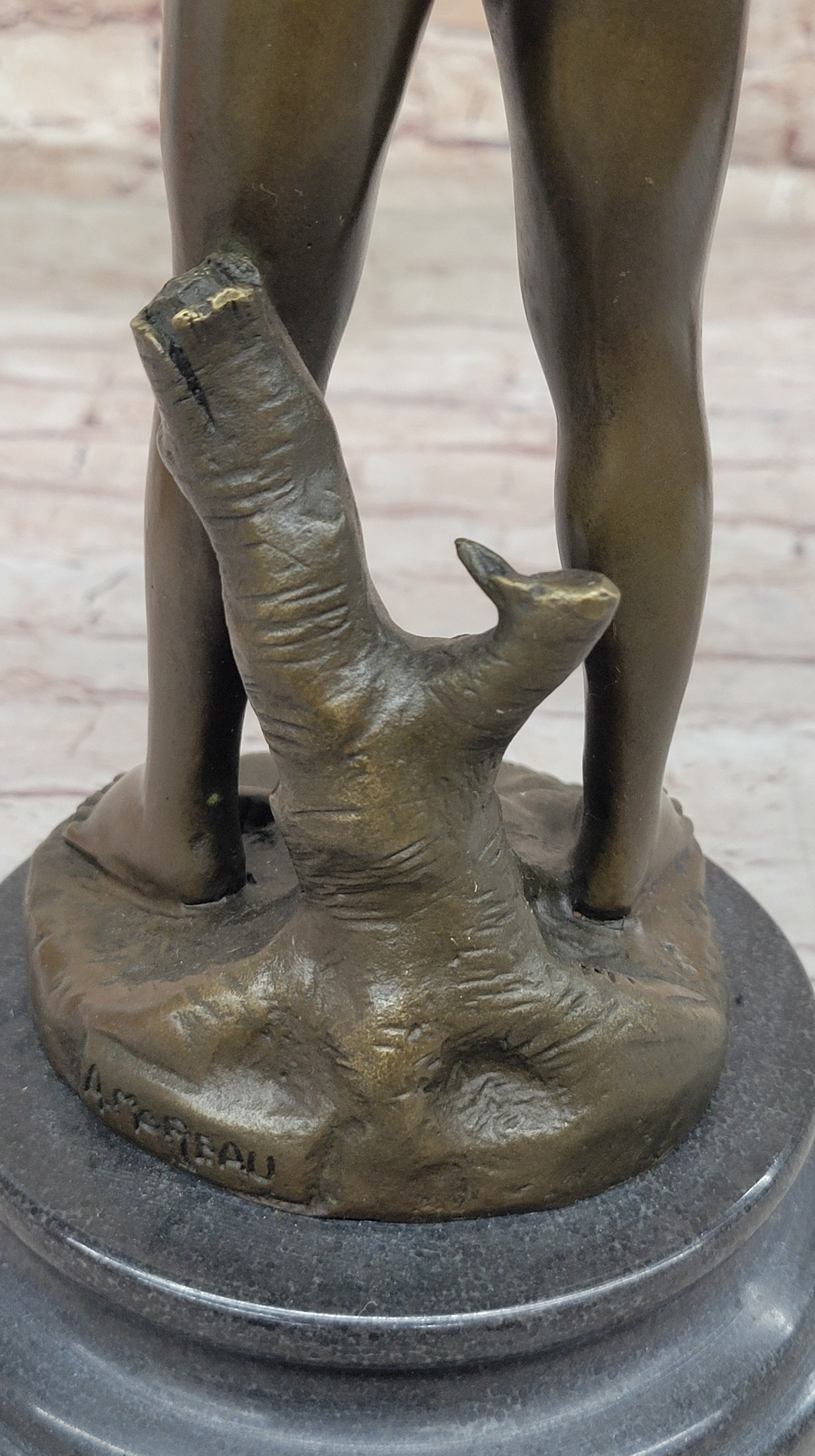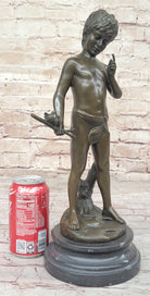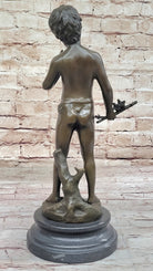 The bronze sculpture "Pan Boy with Bird" by Augustine Moreau is a classic artwork that exudes charm and whimsy. This handcrafted statue, created using the lost wax method, captures a delightful moment of Pan, the mythological god of nature, with a bird in hand.