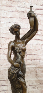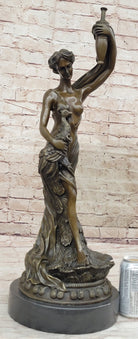 Semi Nude Venus Holding a Peacock Genuine Bronze Sculpture by Moreau