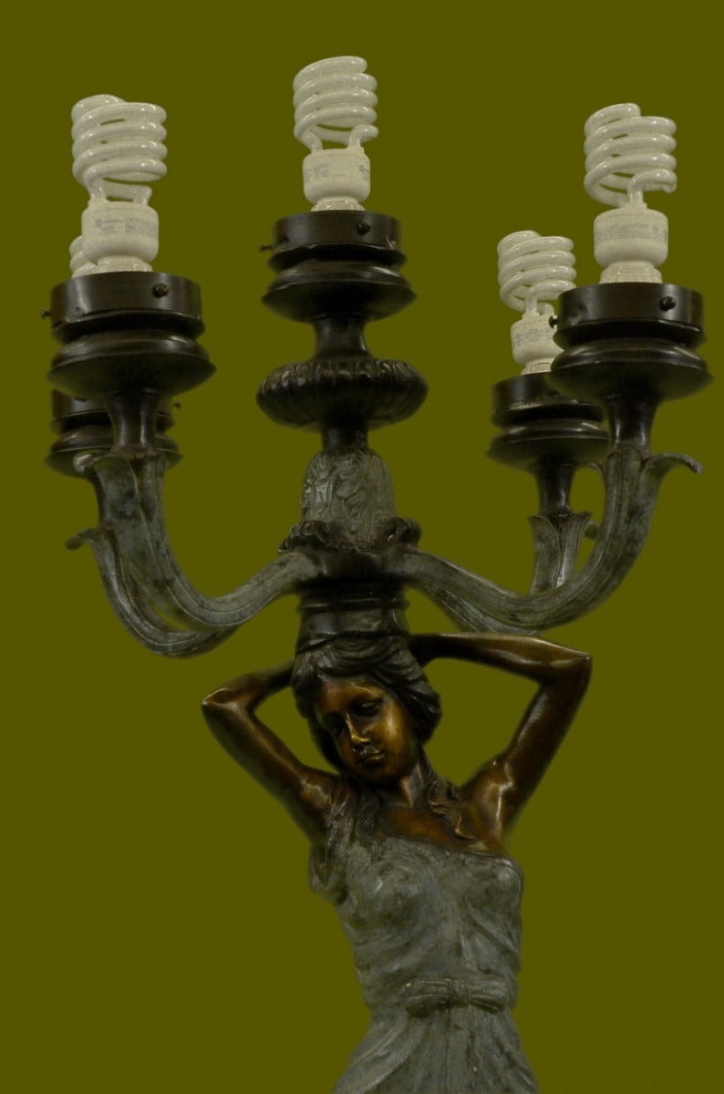 Signed 4 Feet Tall Moreau Sexy Goddess Light Fixture Bronze Sculpture Figurine