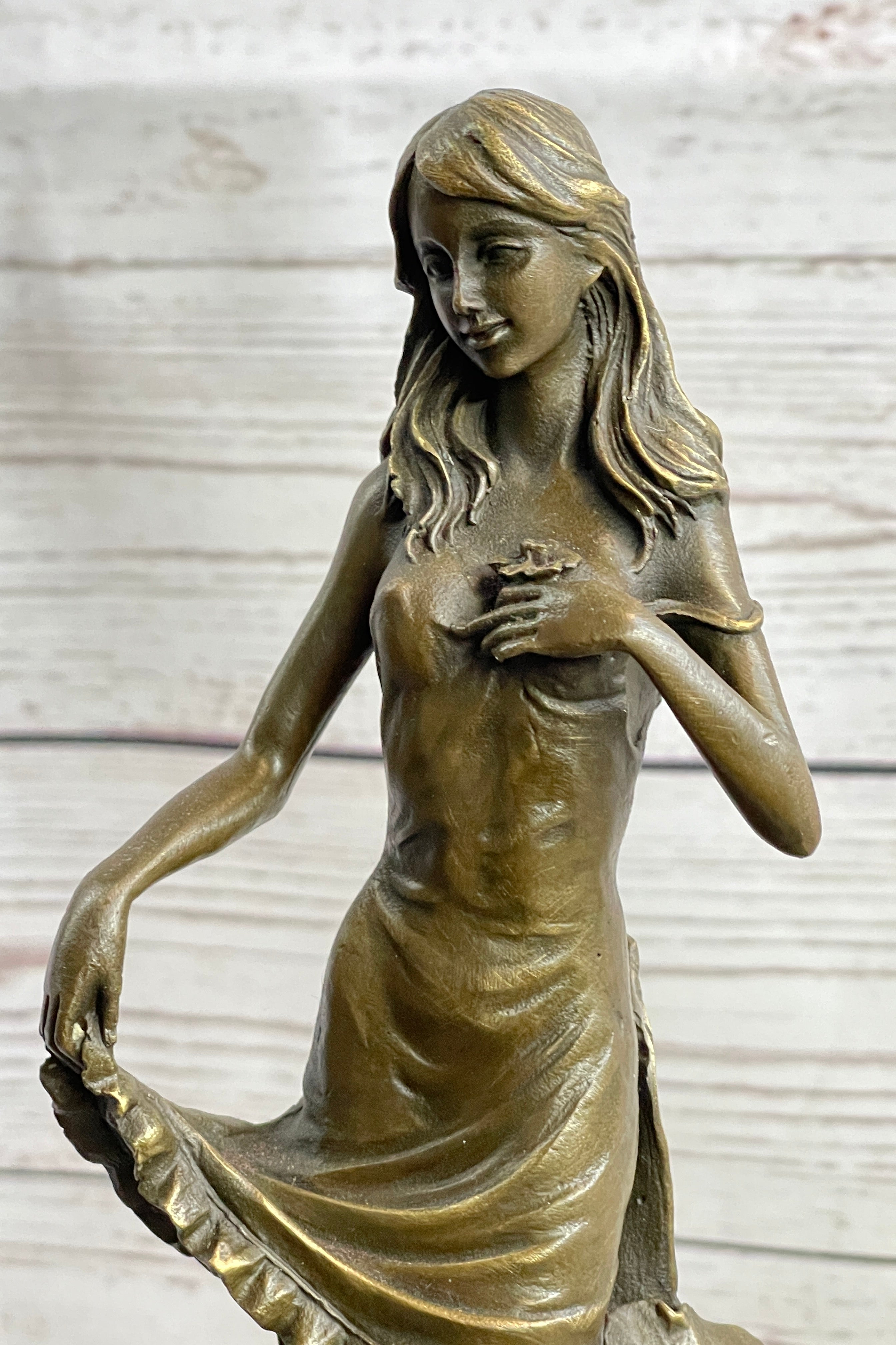 Embrace the serenity and natural beauty embodied in this exquisite bronze sculpture. Whether displayed in your home, office, or gallery, it serves as a gentle reminder to find peace in life's simplest moments. Admire the intricate details and elegant design of this artwork, as it brings a touch of enchantment and tranquility to your surroundings.Bronze Dimensions with Marble Base: Height 10.5" X Width 4.5"
