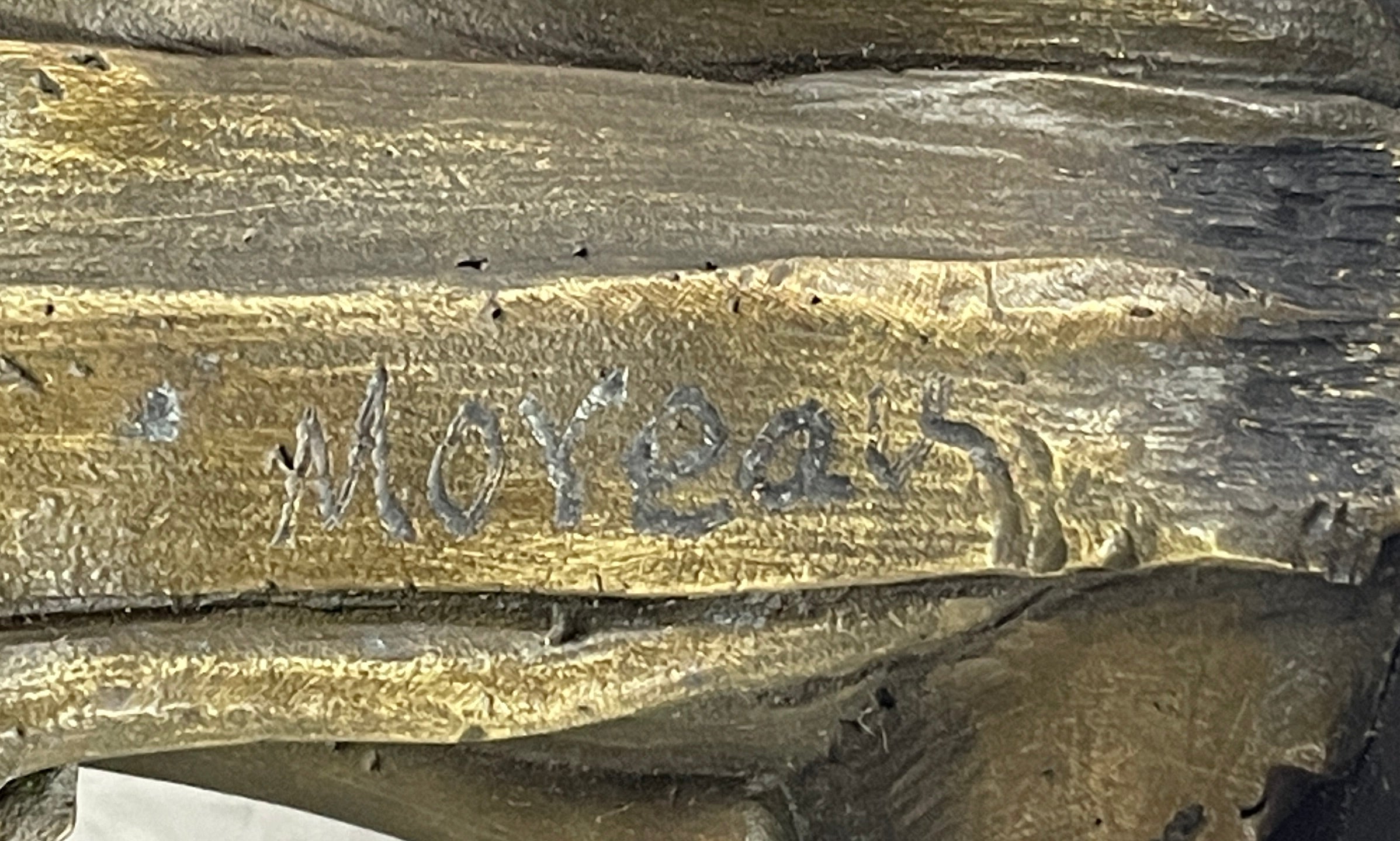 Handmade with meticulous craftsmanship, this bronze sculpture was cast using the archaic lost-wax method, ensuring fine details and quality. It features a brown patina finish that adds depth and character to the piece. Mounted on a sleek black marble base, this sculpture stands as a testament to the artist's skill and vision. It bears the signature of the esteemed artist Moreau, a mark of quality and artistry.