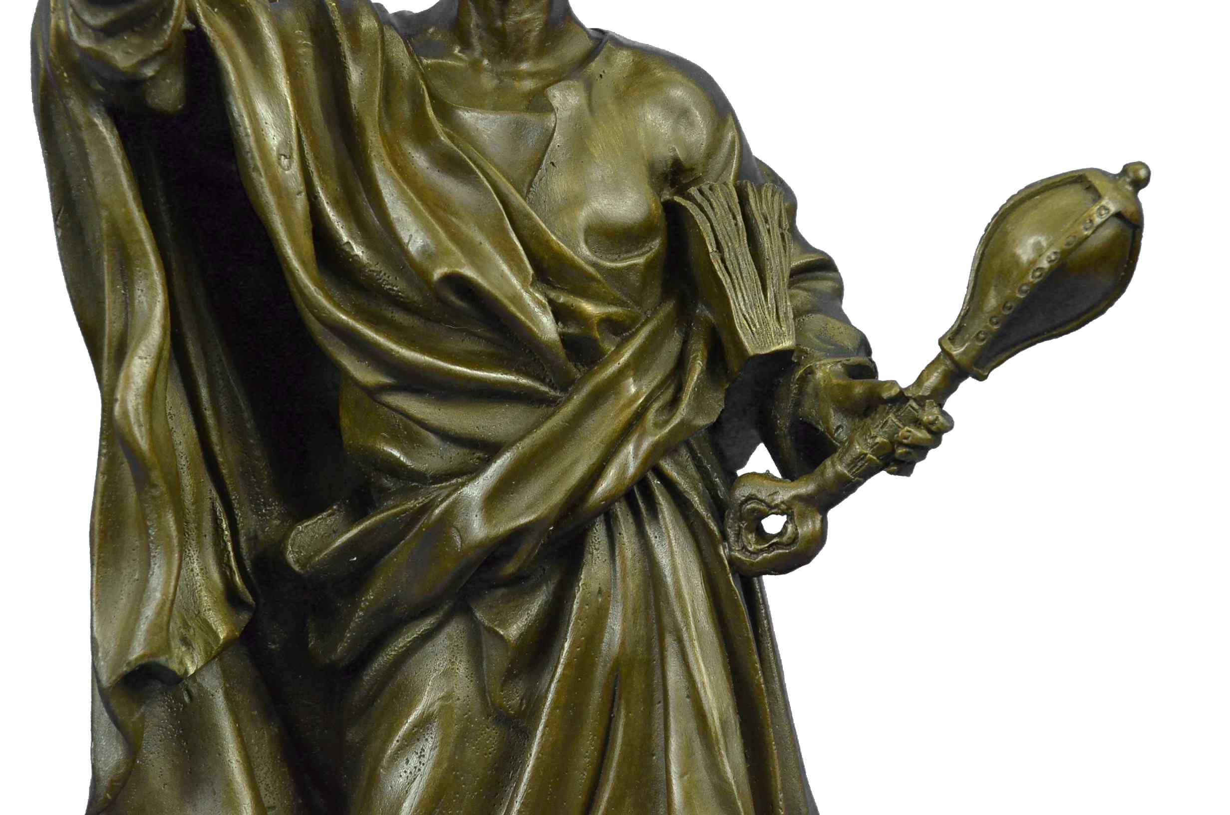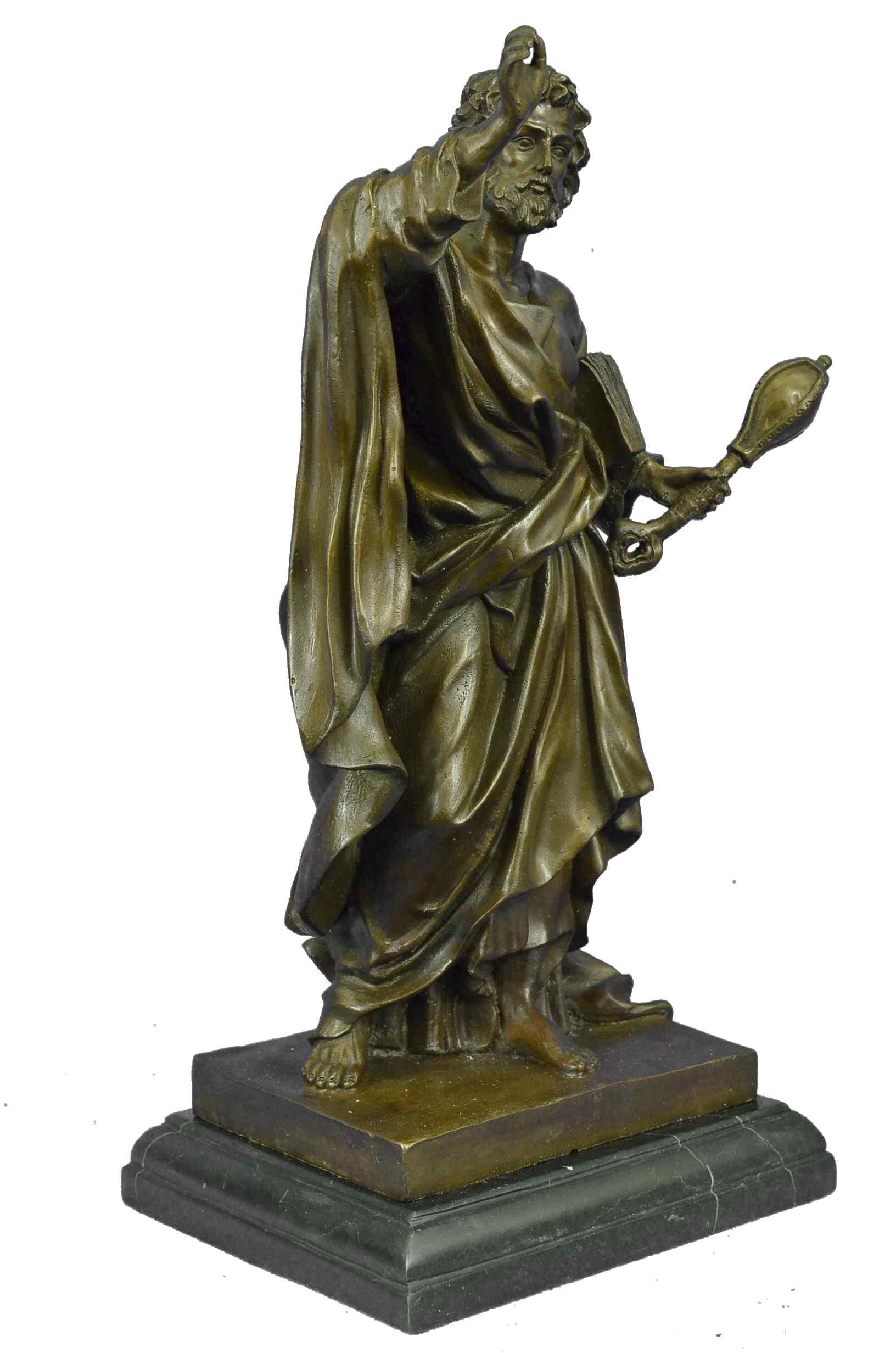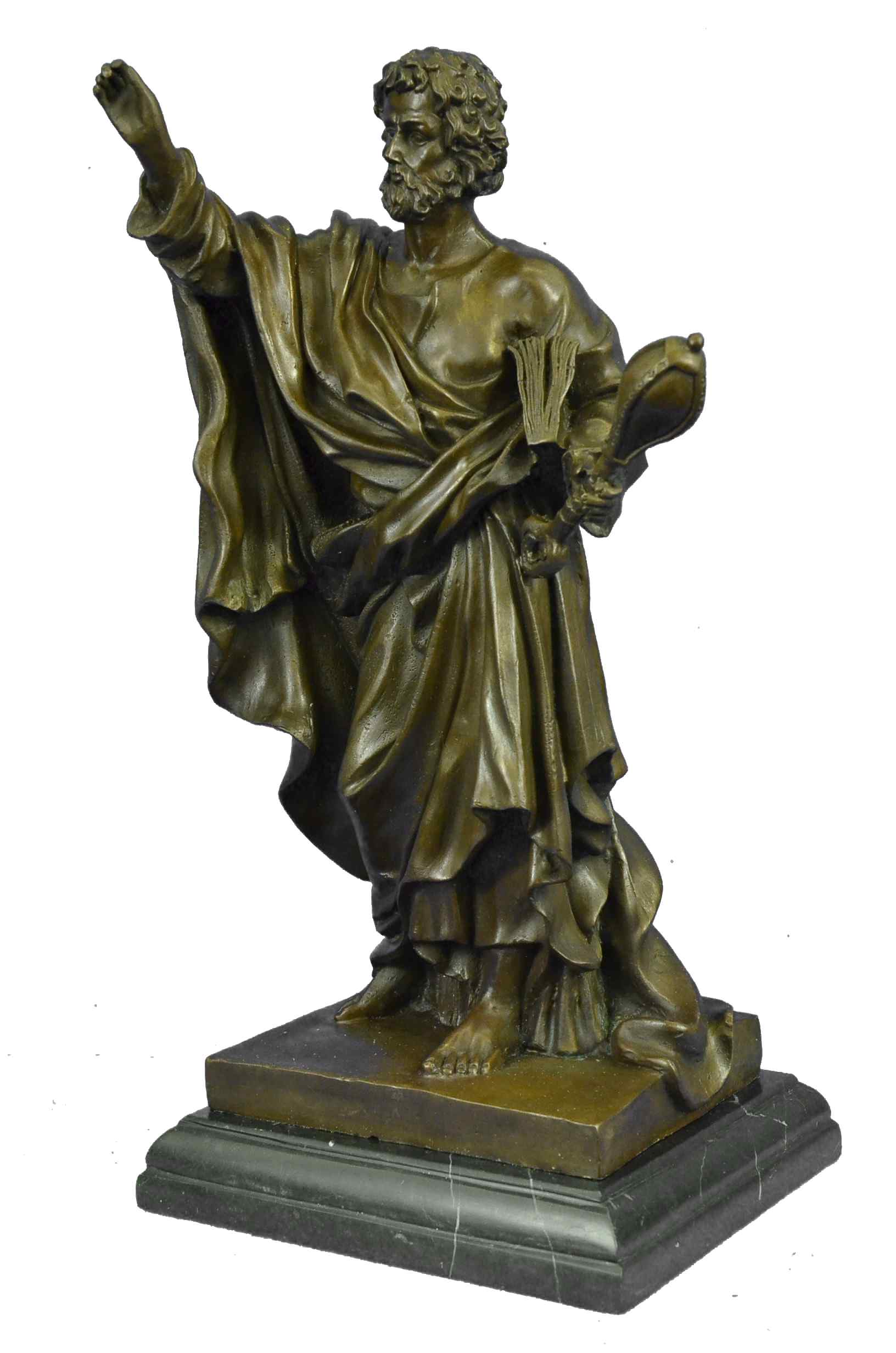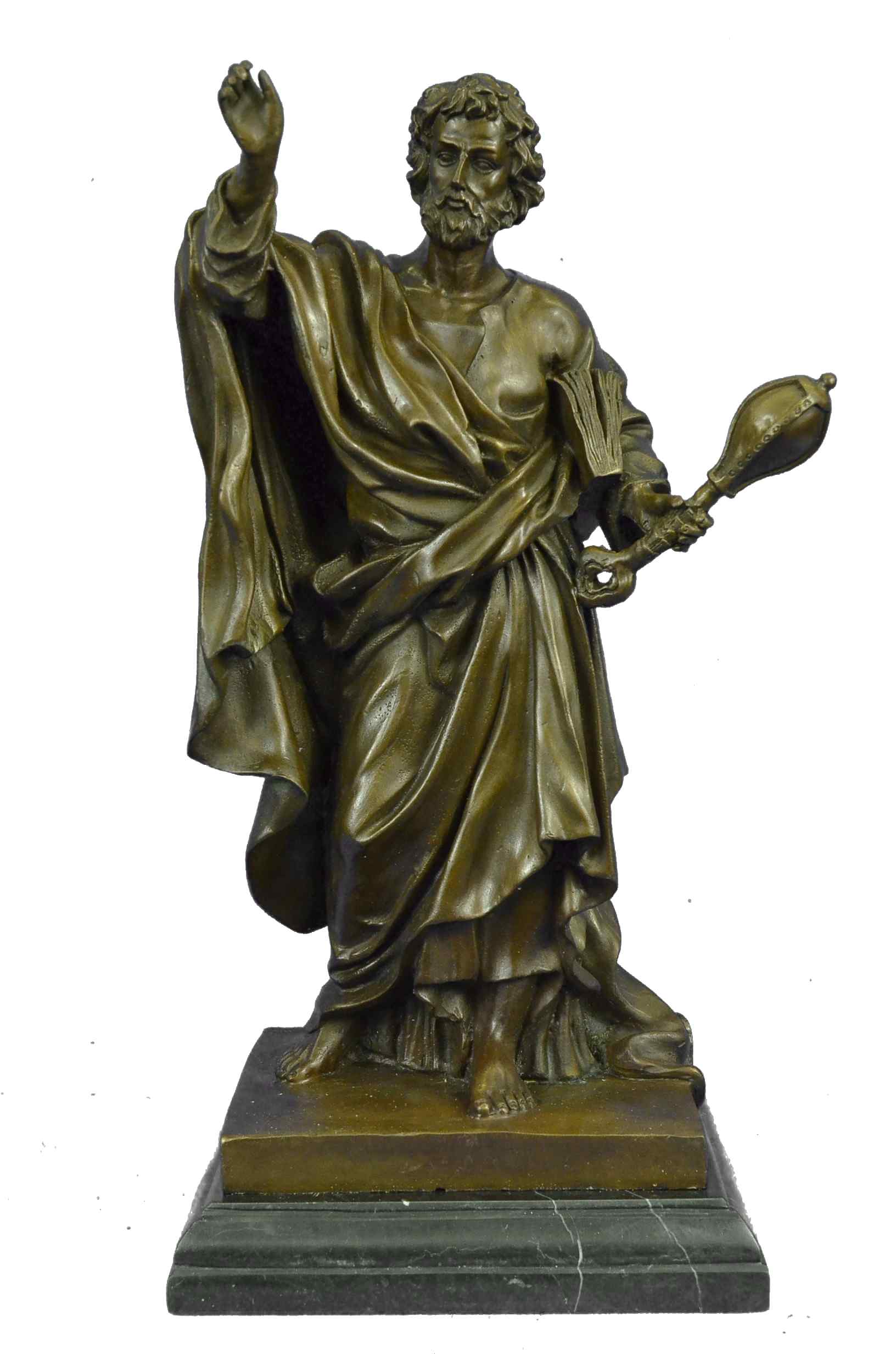 Signed Moreau Saint Religon Church St. Peter Bronze Sculpture Marble Base Figure