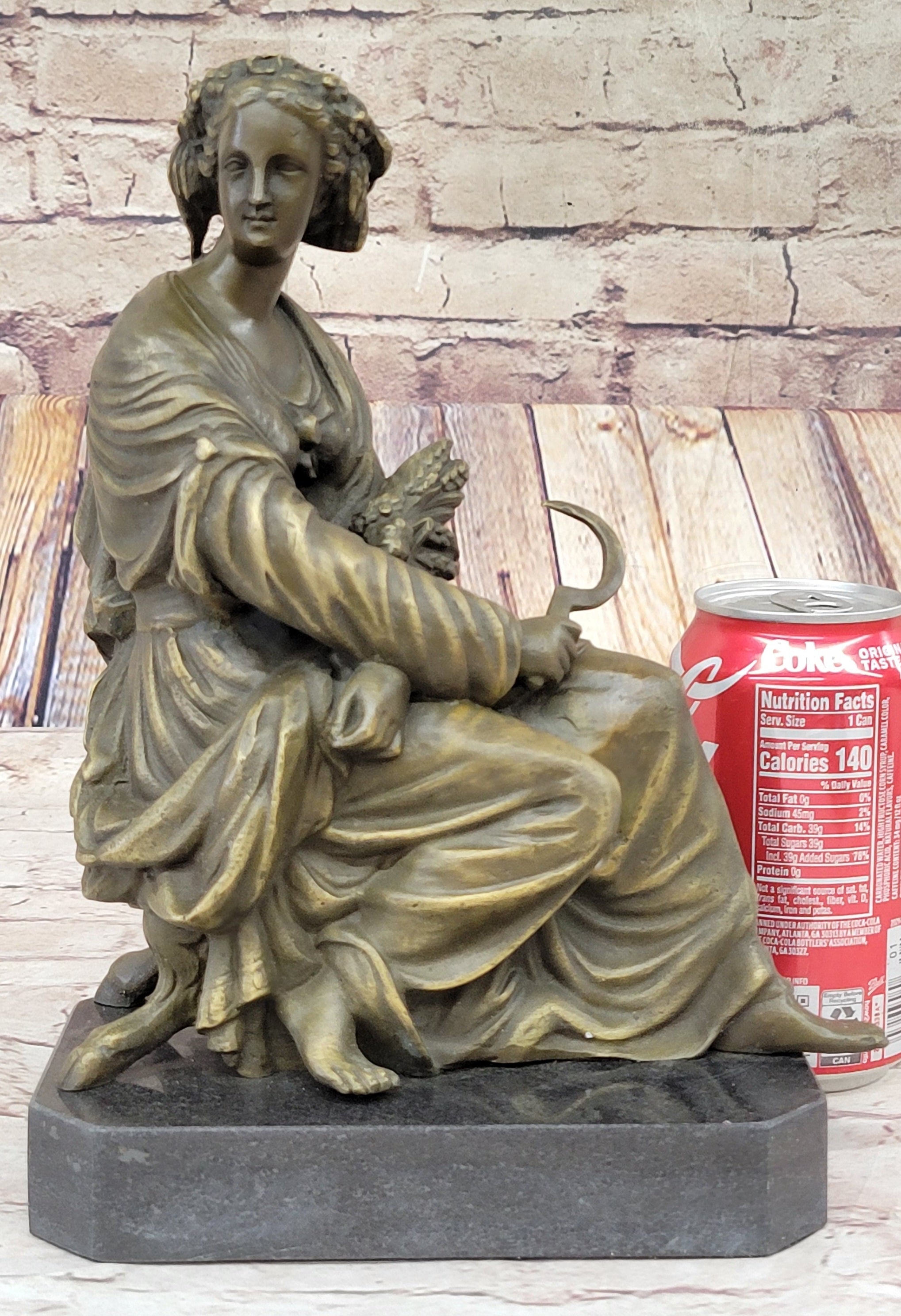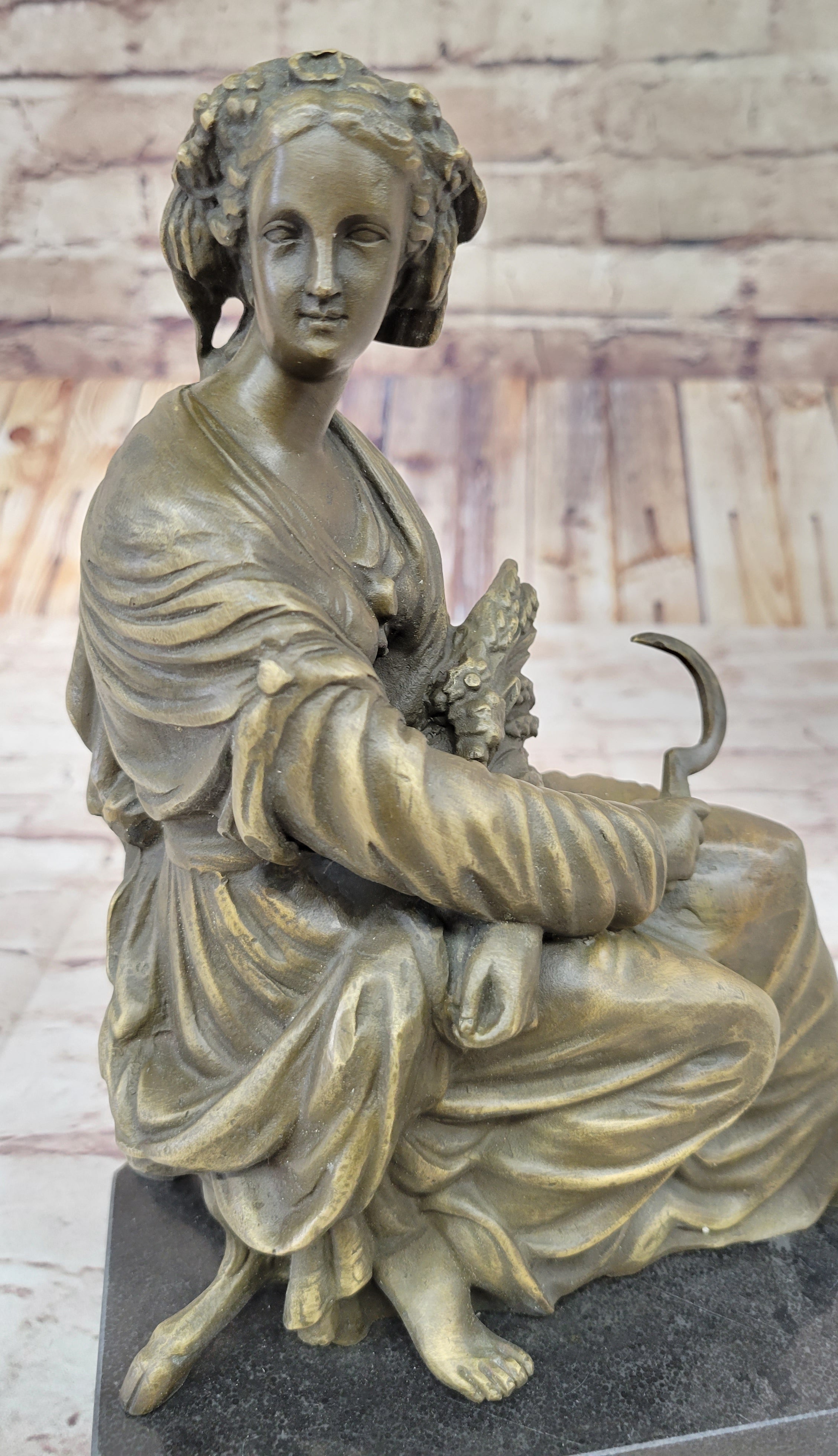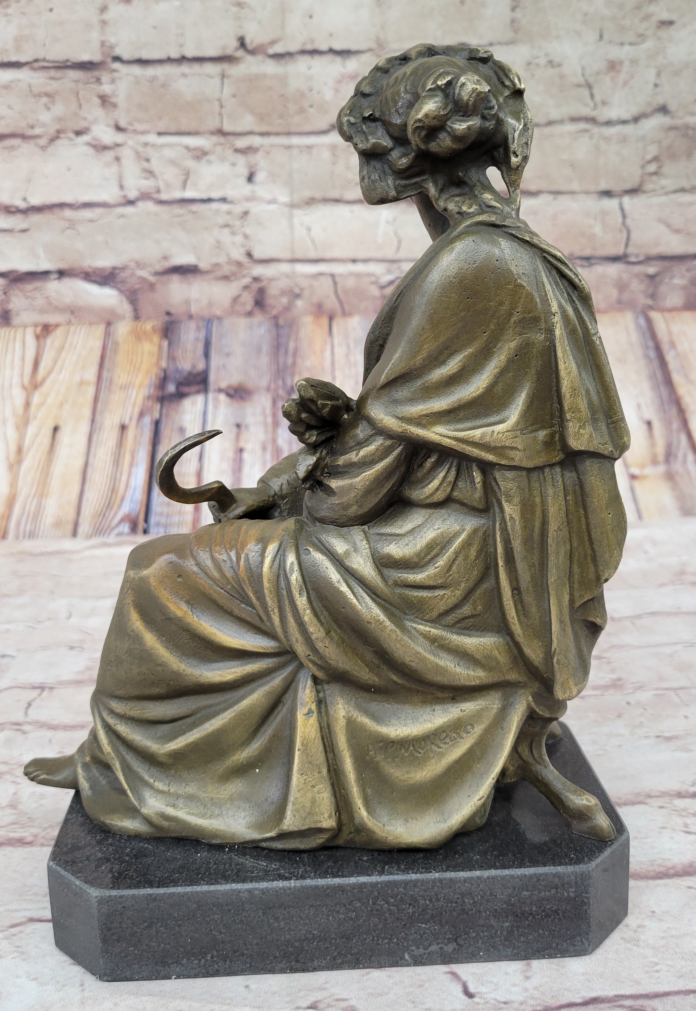 Signed Moreau Victorian Girl Farmer Harvest Bronze Sculpture Figurine Figure Art