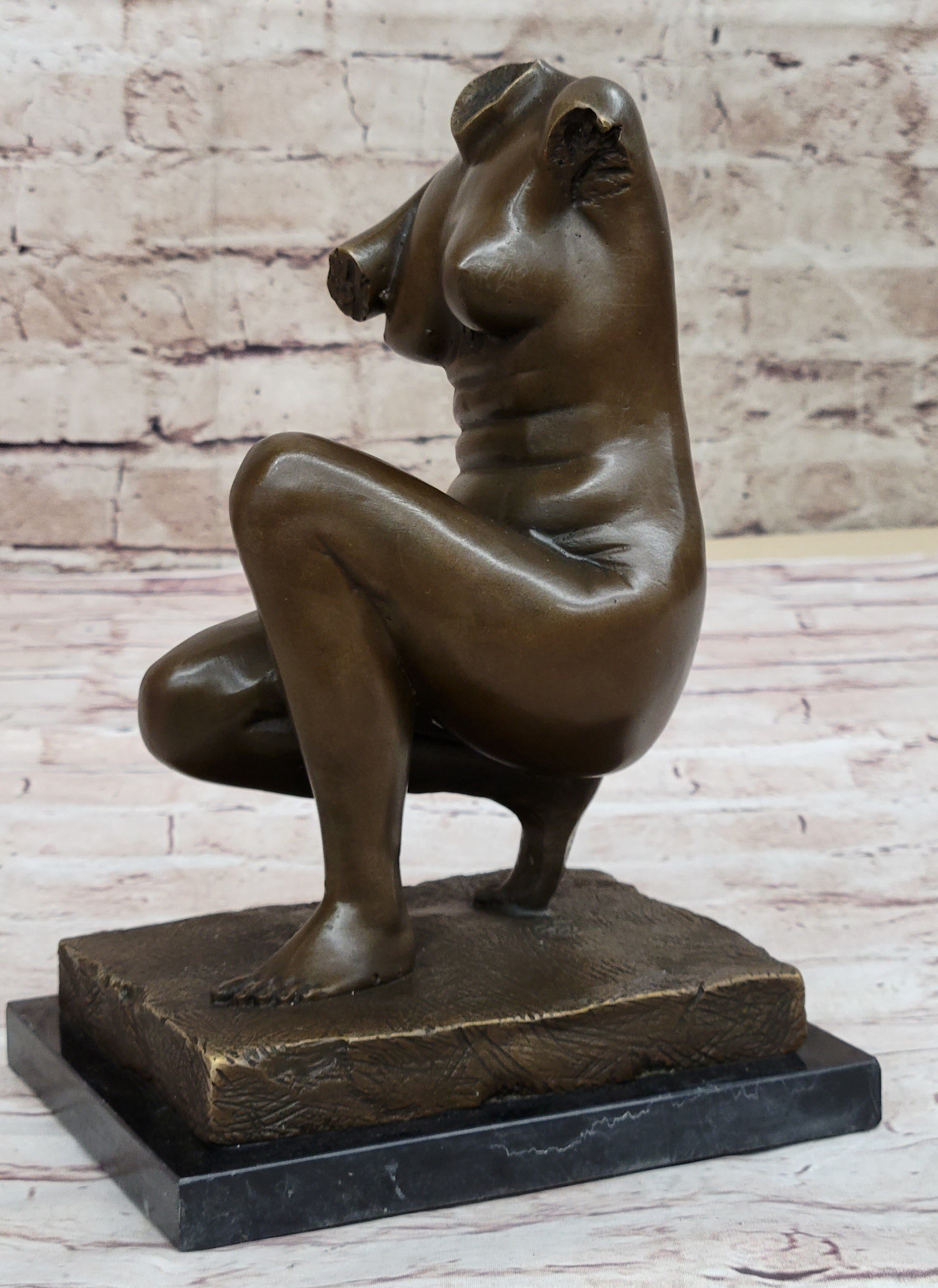 Squatting Headless Nude Female Figure Bronze Statue Sculpture Original Art by Milo