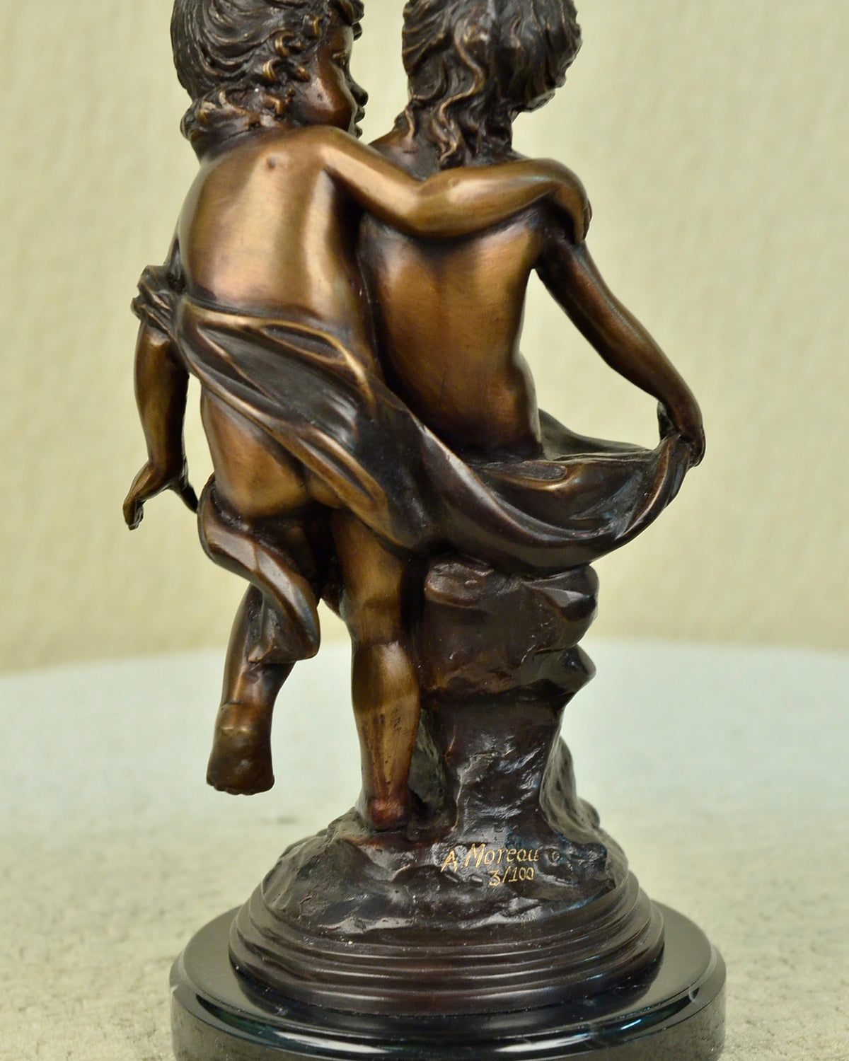 Our curated selection features a variety of themes characteristic of Moreau's artistry, including graceful maidens, playful cherubs, and elegant figures from mythology and nature. Each bronze sculpture is designed to reflect Moreau's attention to detail and his ability to convey emotion and movement, making them a striking addition to any decor.
