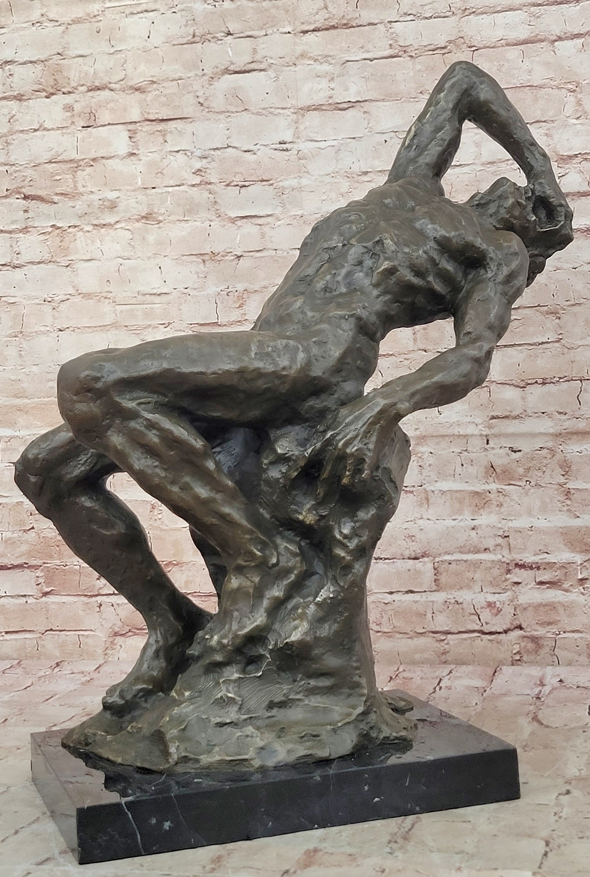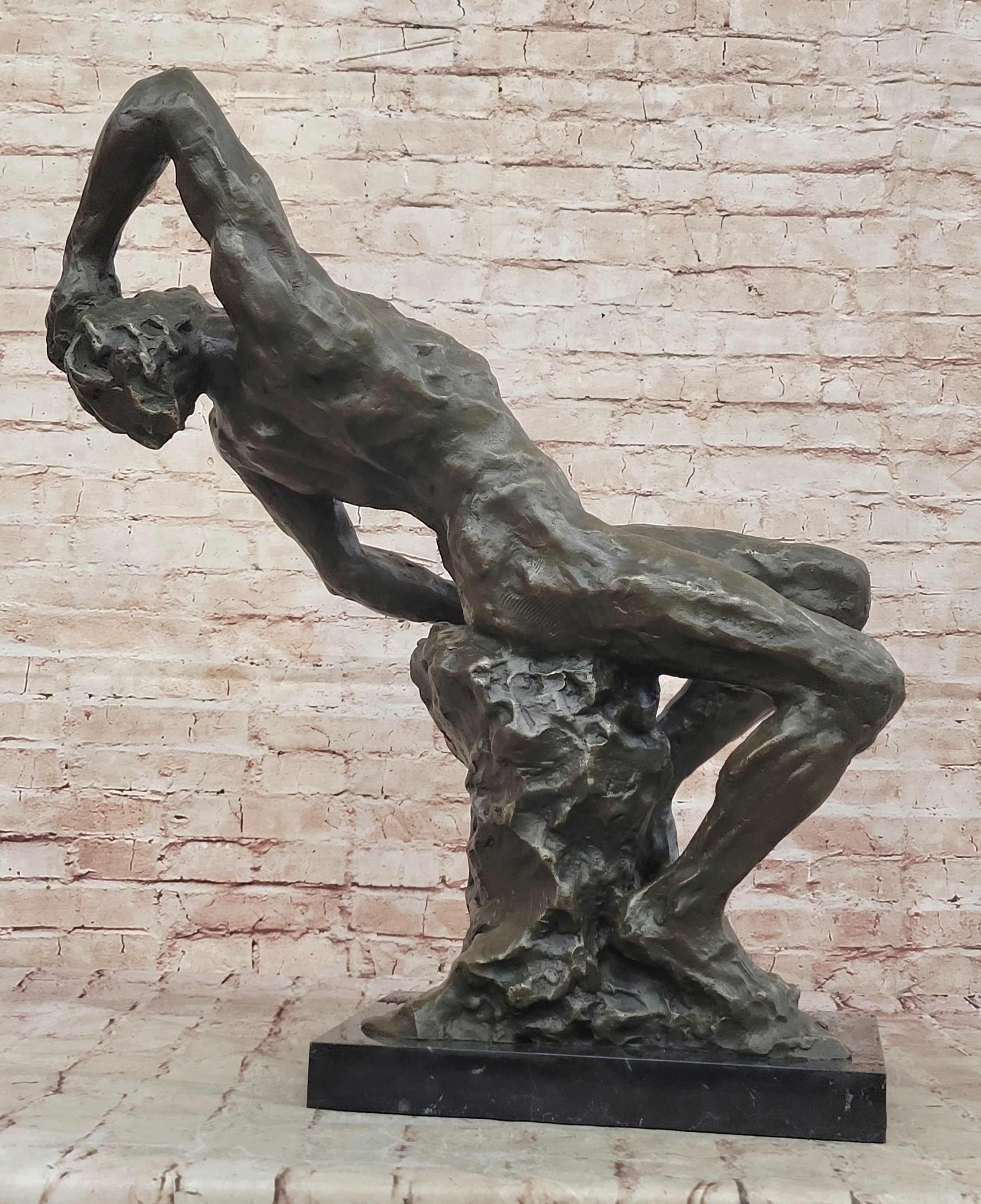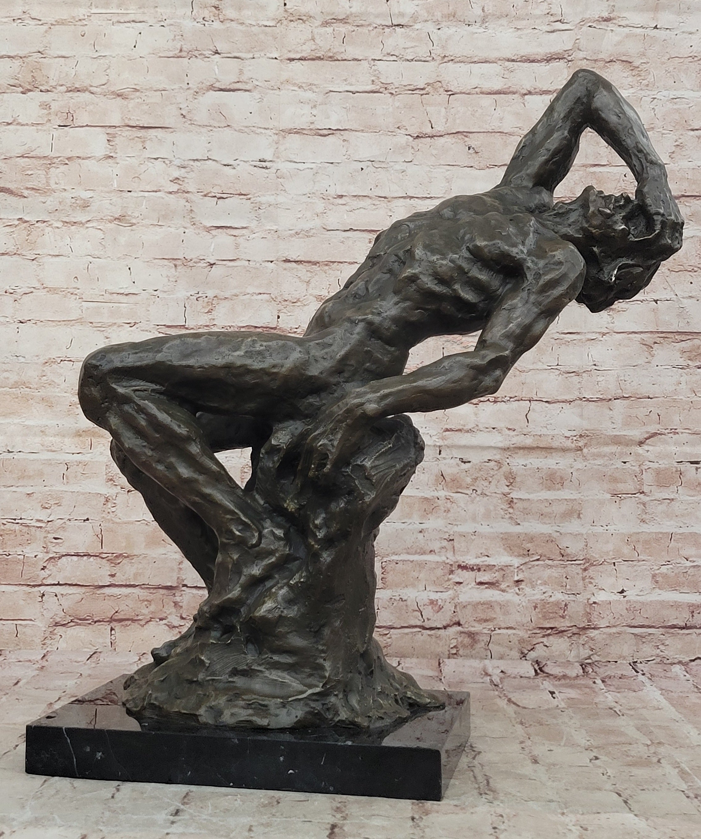 Extra Large Suffering Man by Rodin Genuine Bronze Sculpture Figurine Decor