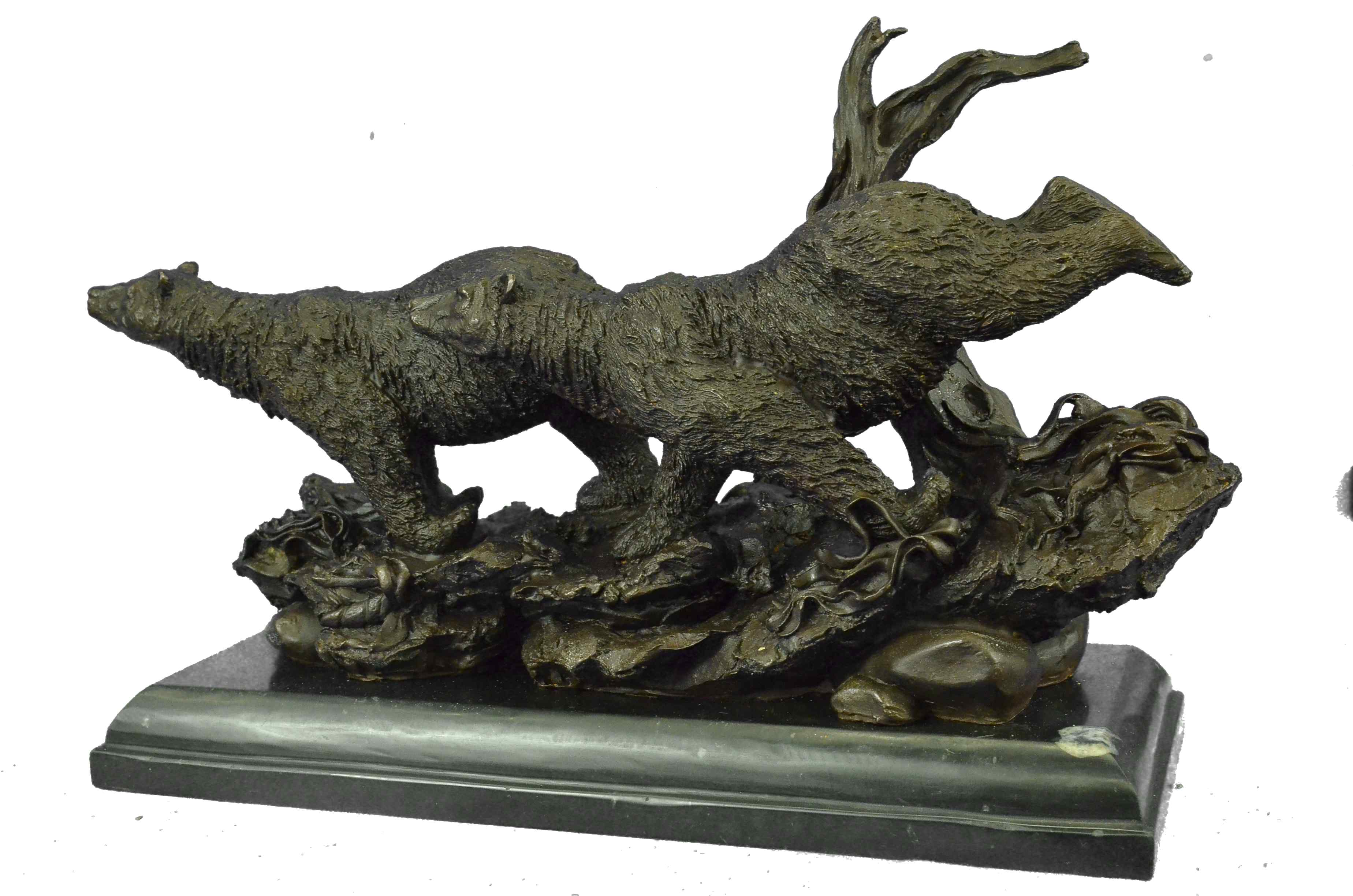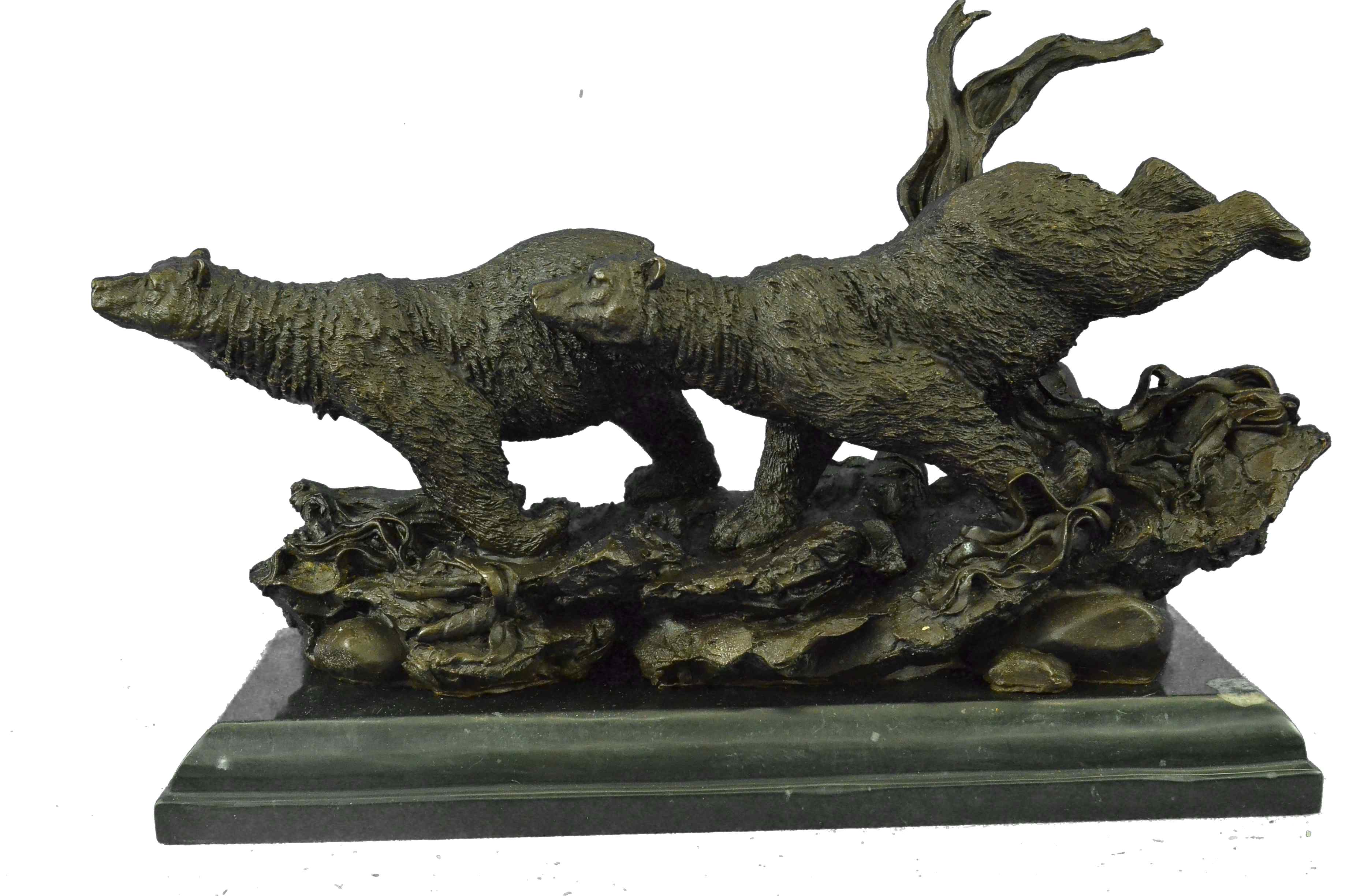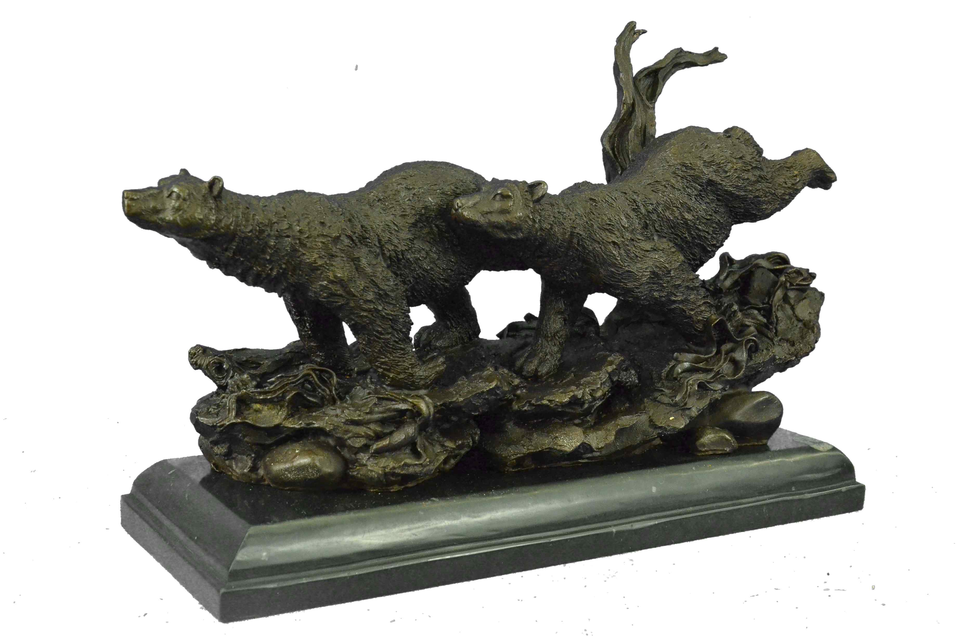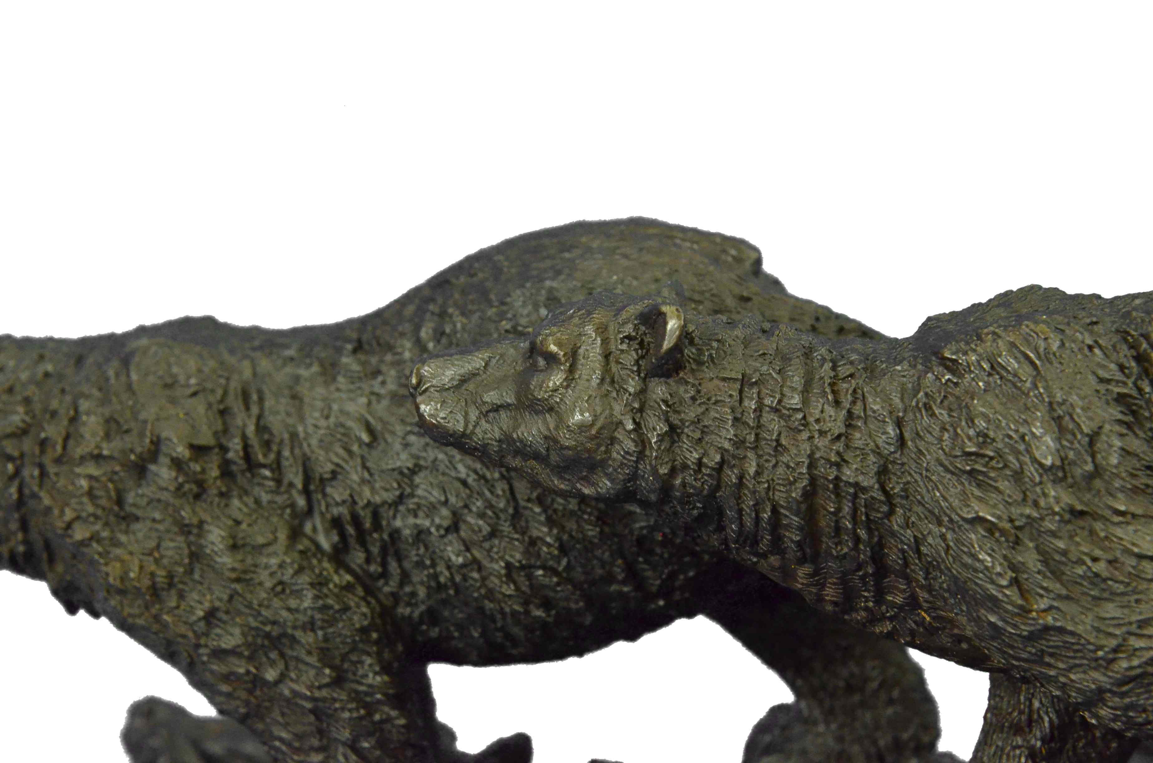 Extra Large 2 Running Black Bears Bear Bronze Sculpture Marble Base Statue Art