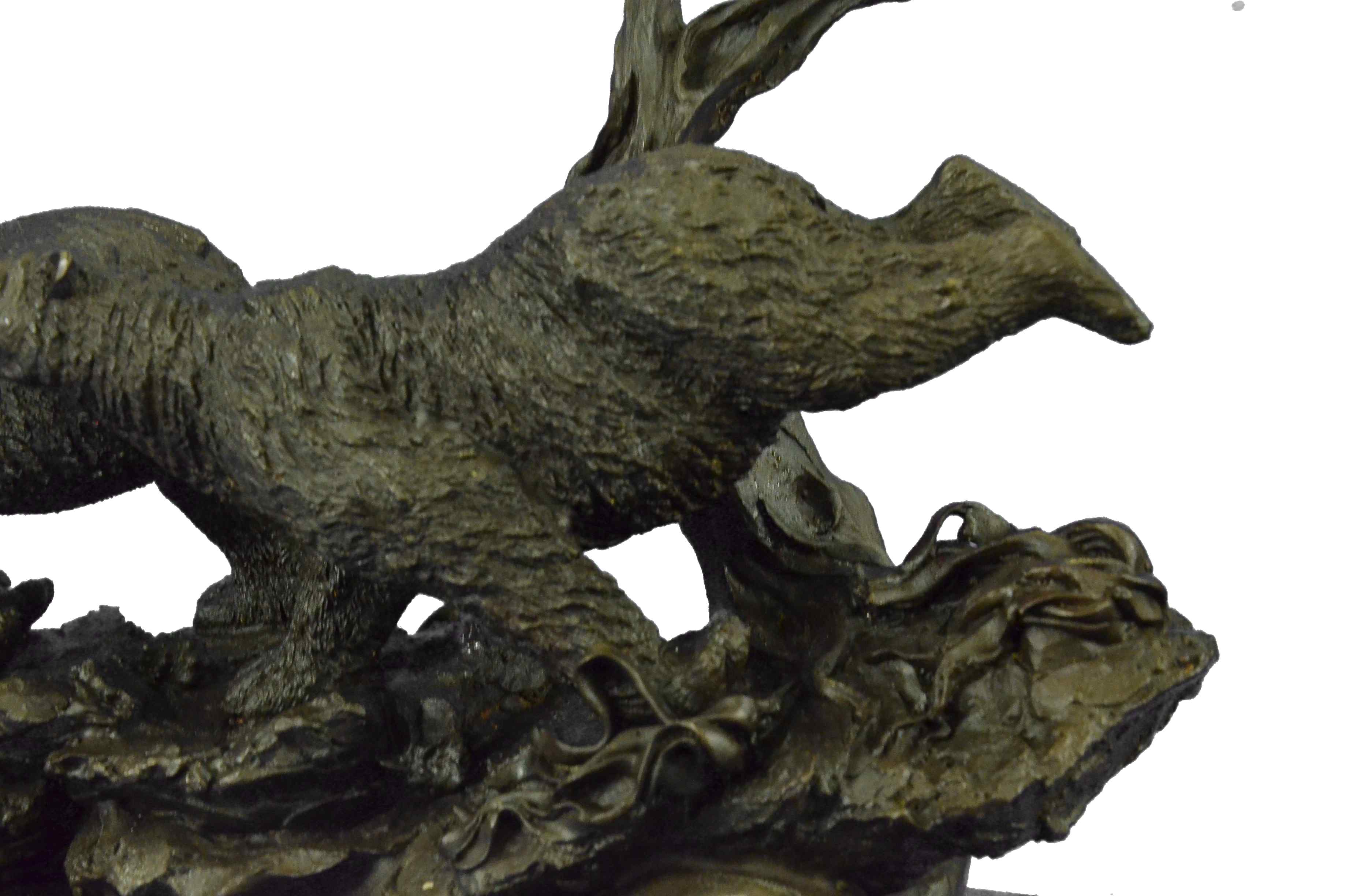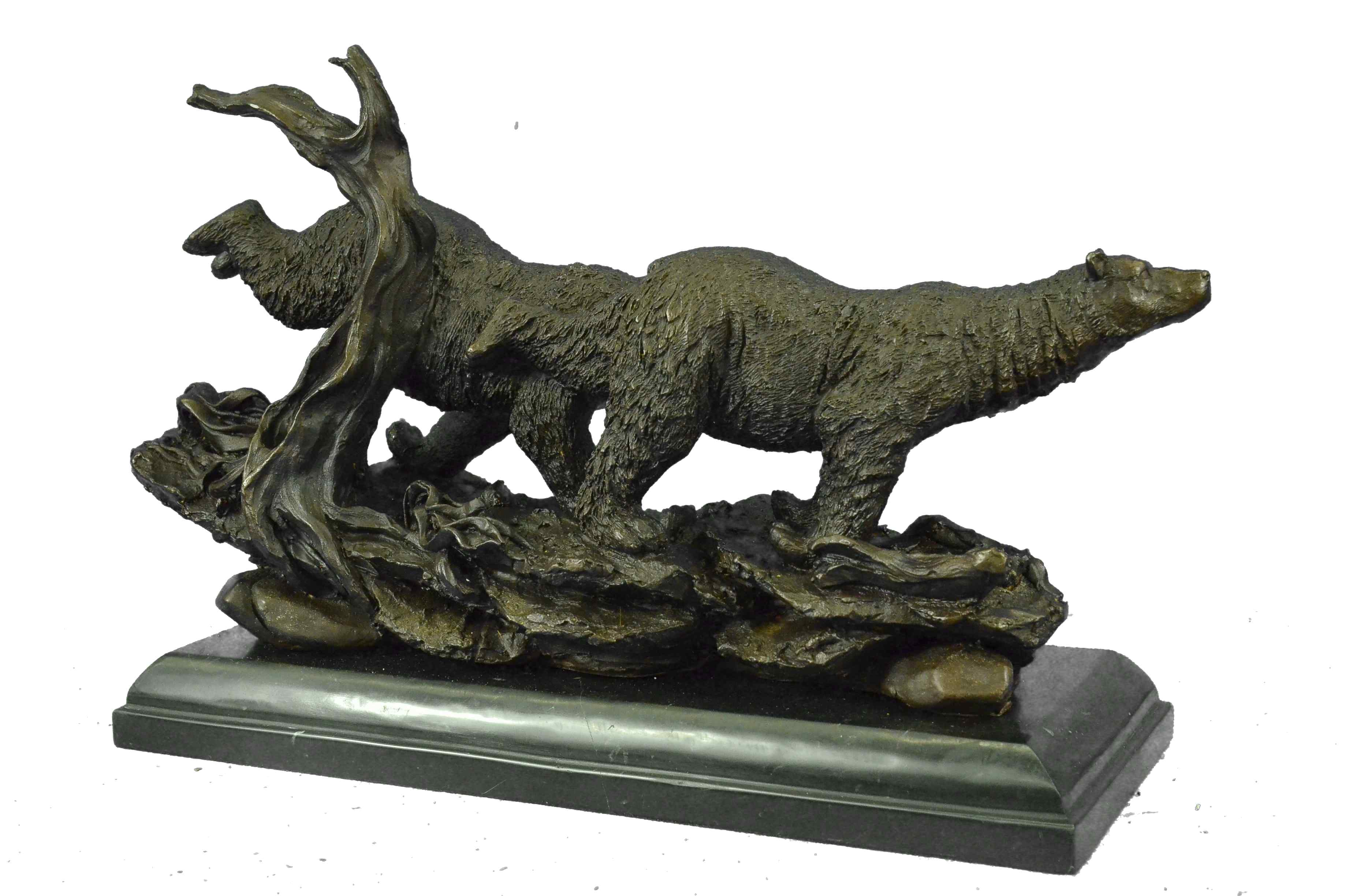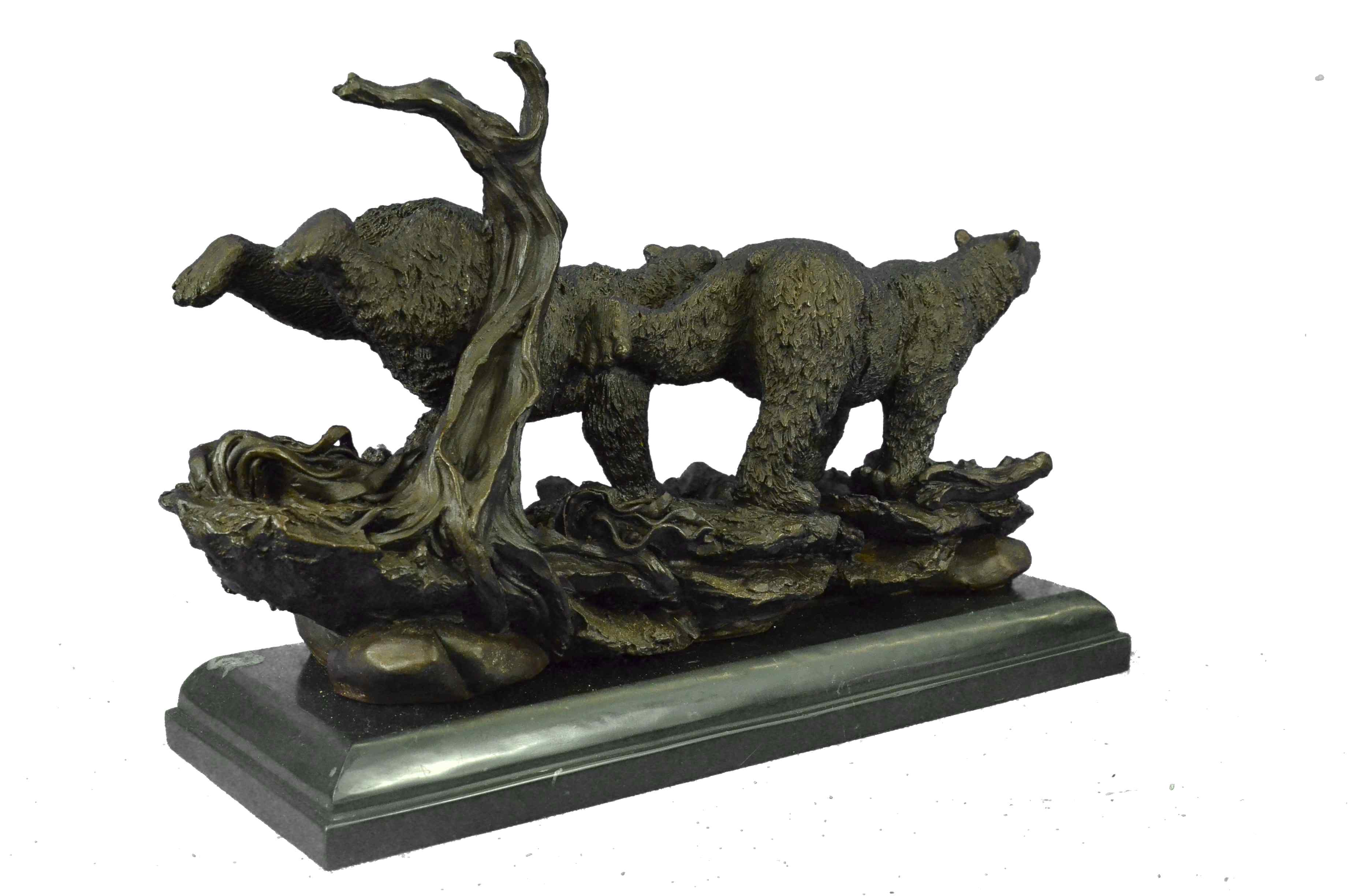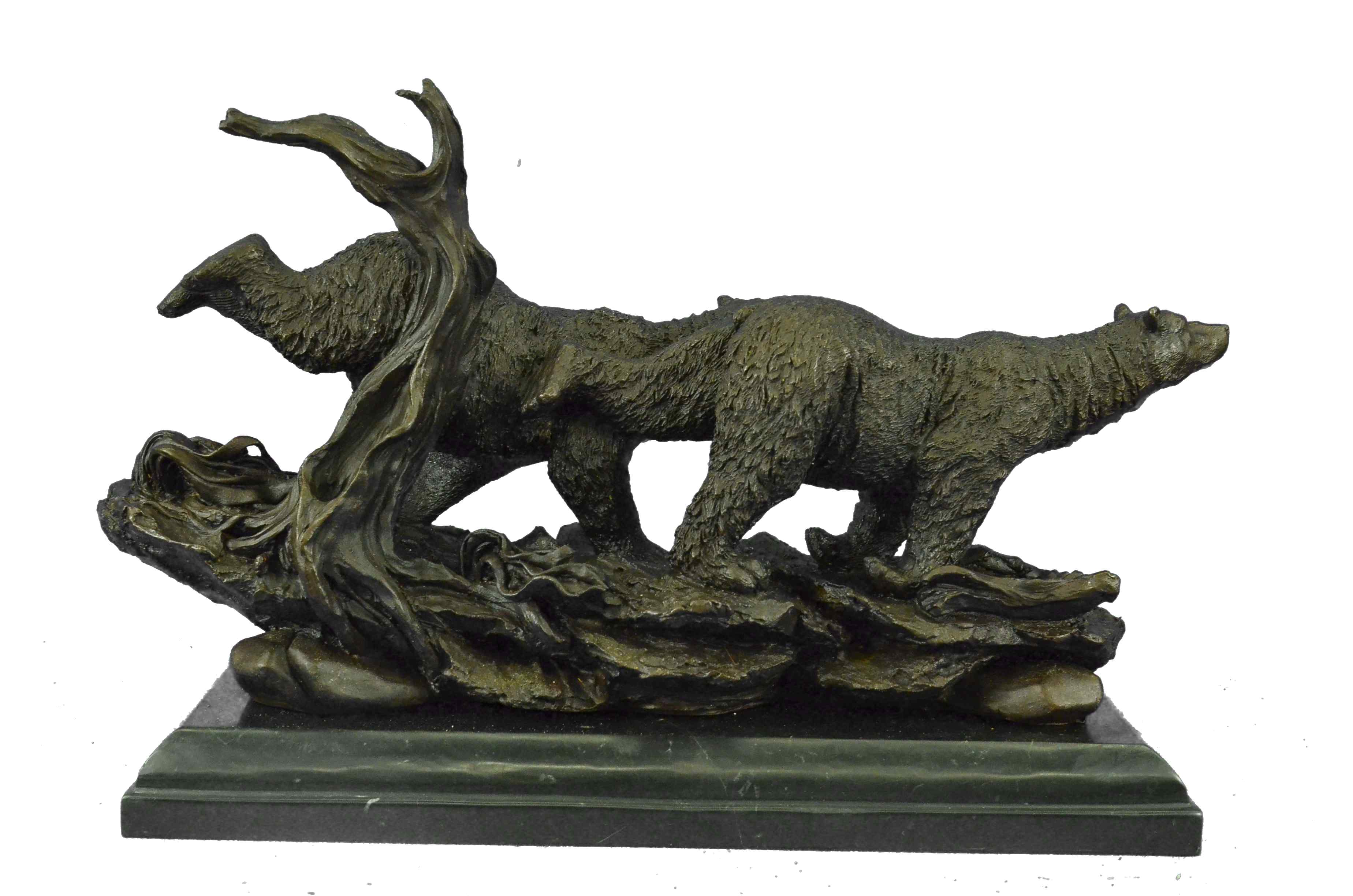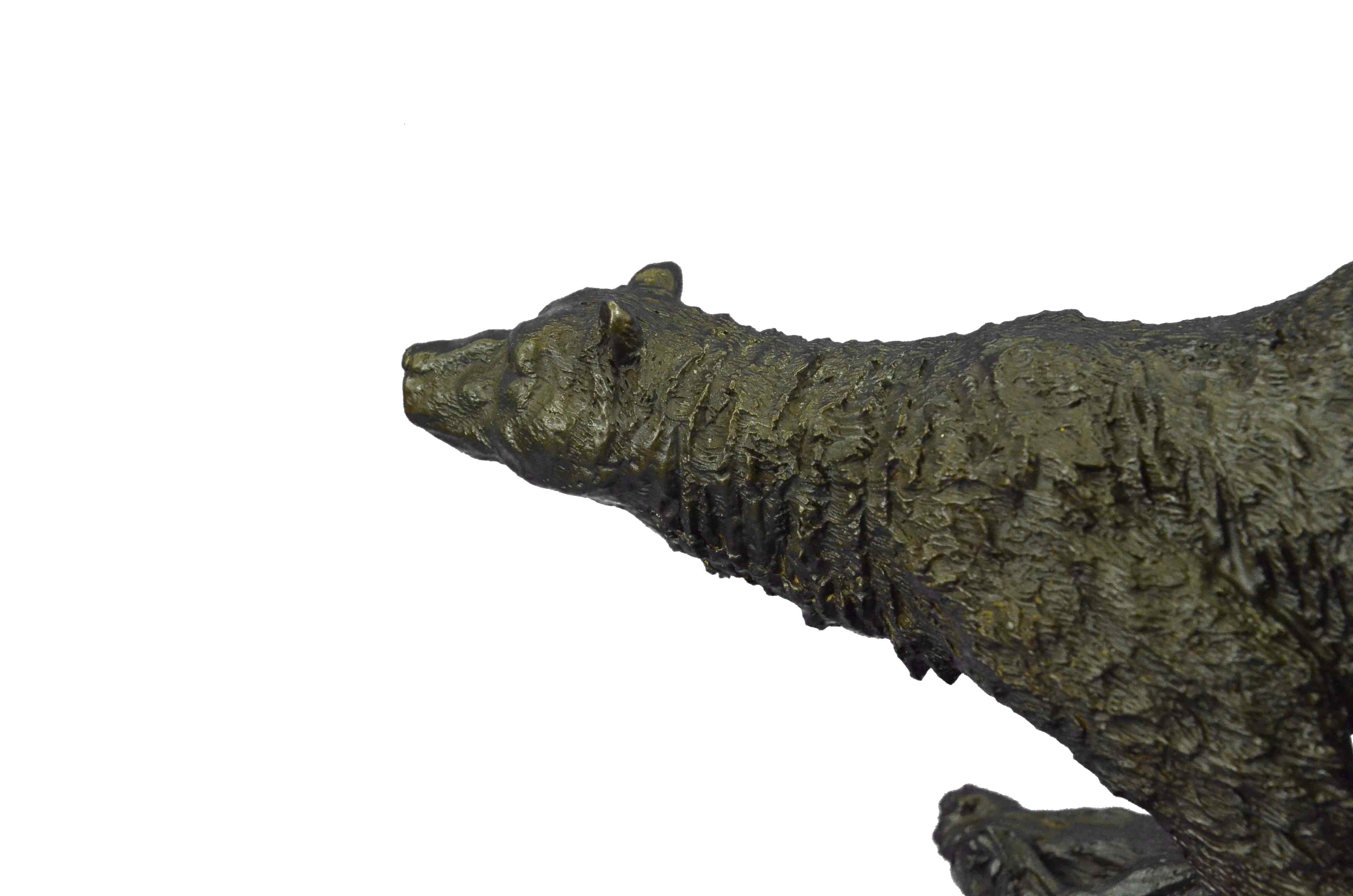 Extra Large 2 Running Black Bears Bear Bronze Sculpture Marble Base Statue Art