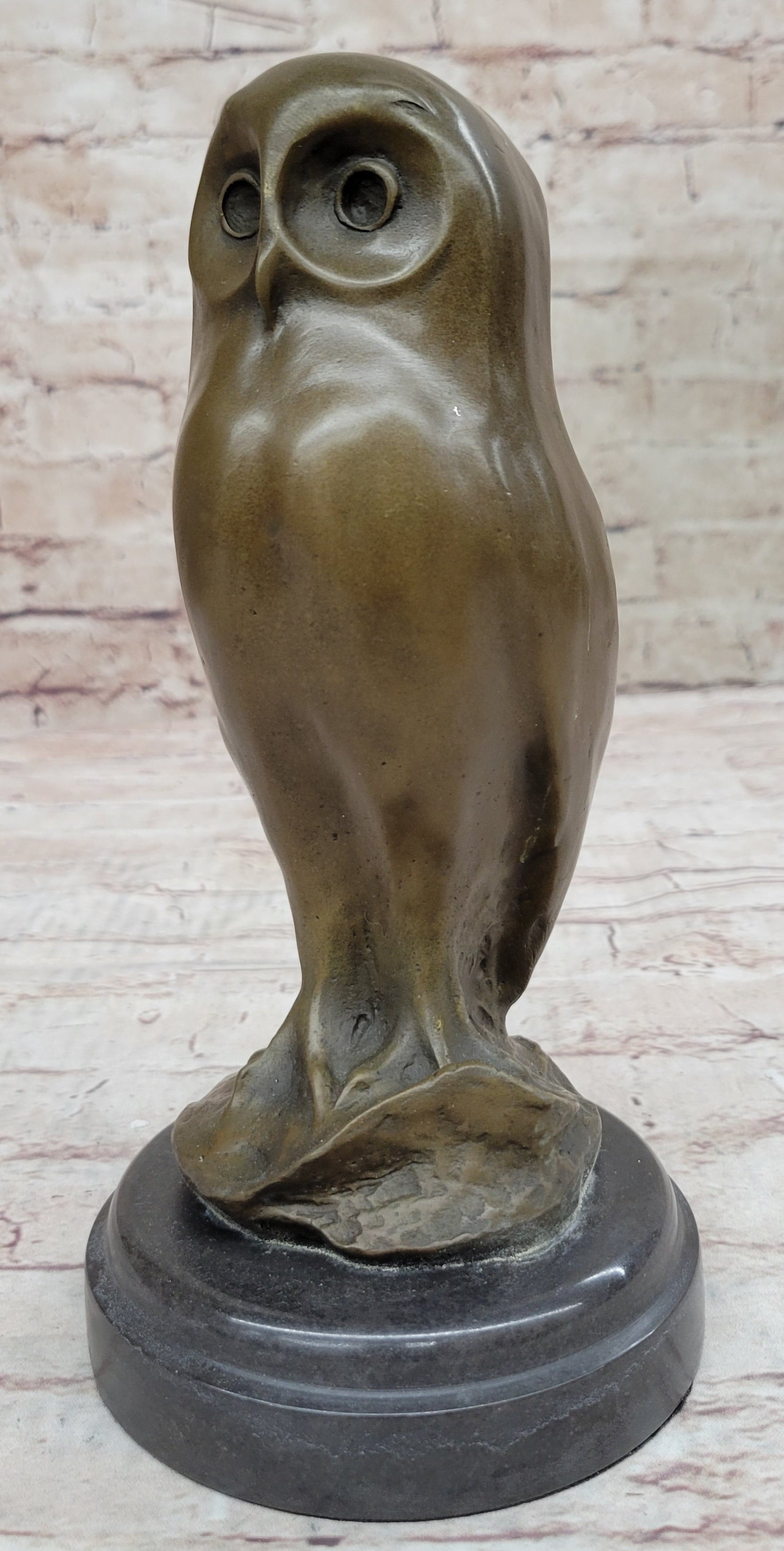 Bronze Metal Owl Bird Sculpture Statue Figure Original Art by Milo on Marble Base