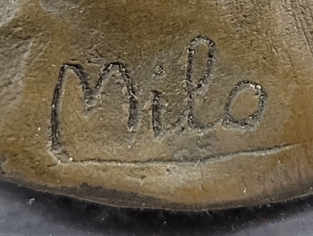 As a sign of its authenticity and quality, this bronze sculpture is signed by renowned artist Milo, and I am confident that you will be 100% satisfied with your purchase. Don't miss your chance to own this spectacular owl sculpture and bring a touch of nature's beauty into your home or office.Bronze Dimensions with Marble Base: Height 10" X Width 4 1/2"