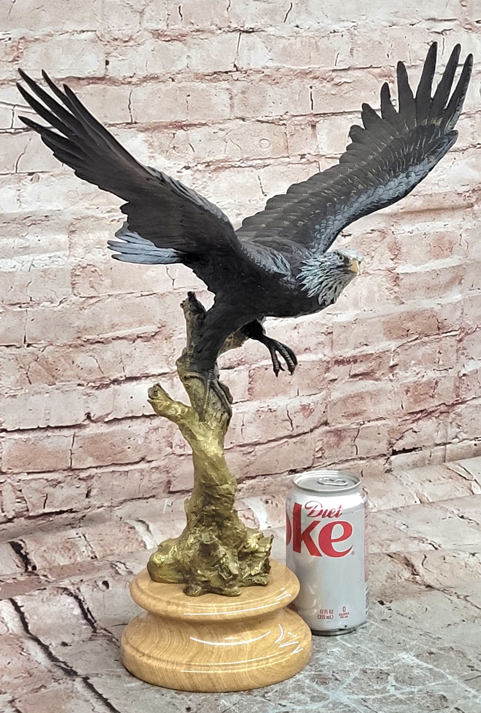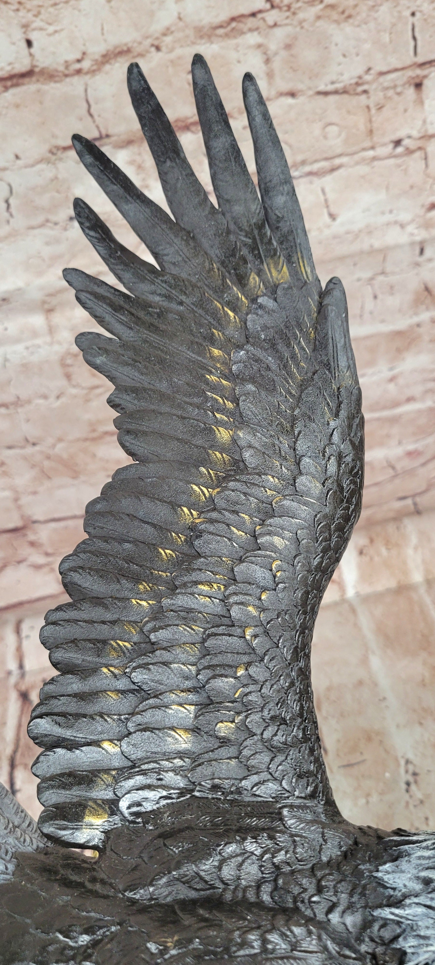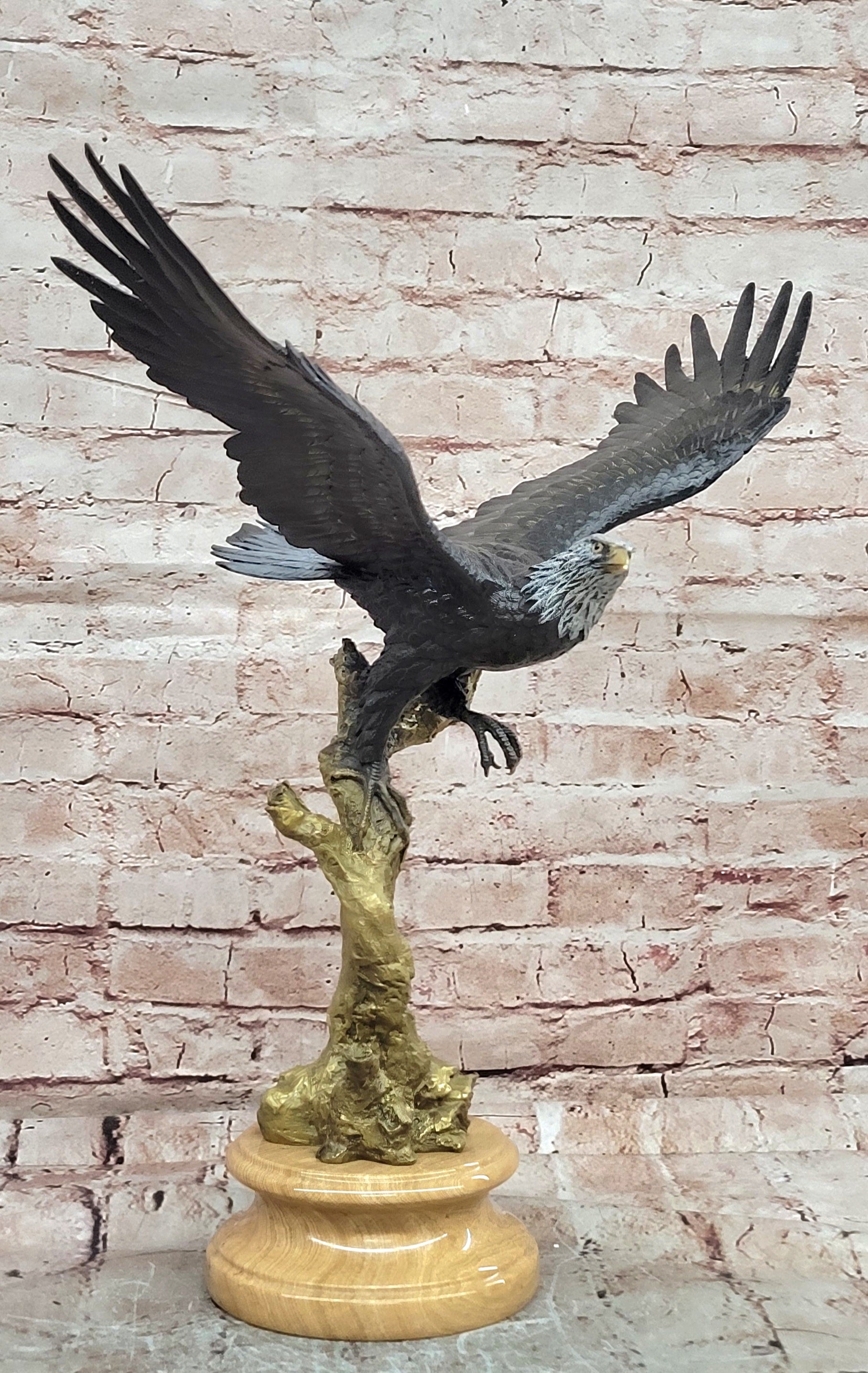 Hand made using the traditional lost wax casting method, this genuine bronze sculpture features a special patina that adds depth and richness to the detailed feathers and muscular form. The artistry and craftsmanship ensure that each contour and texture is finely preserved, highlighting the lifelike energy and elegance of this magnificent bird.