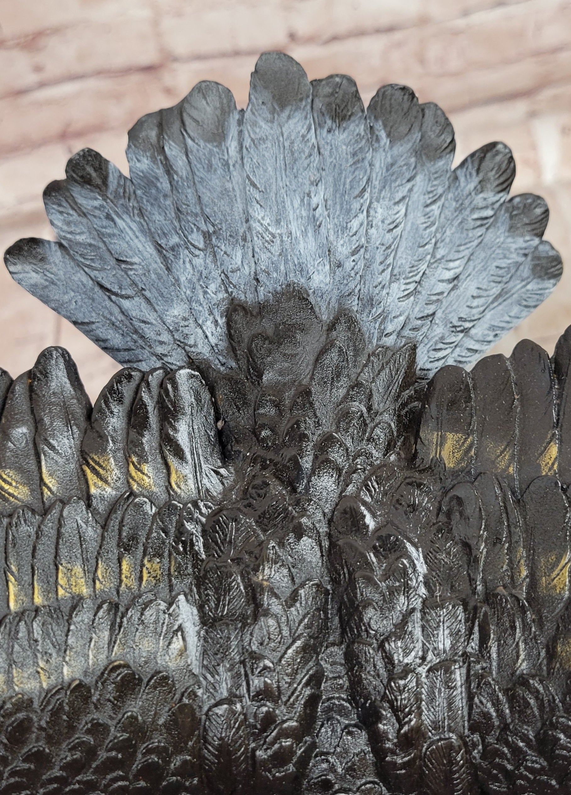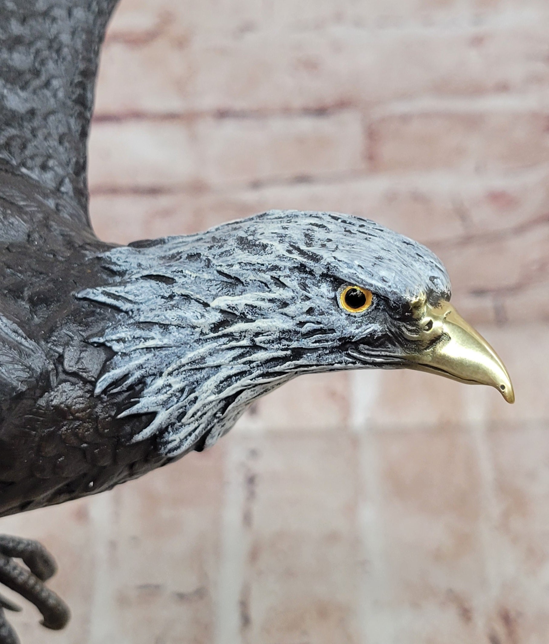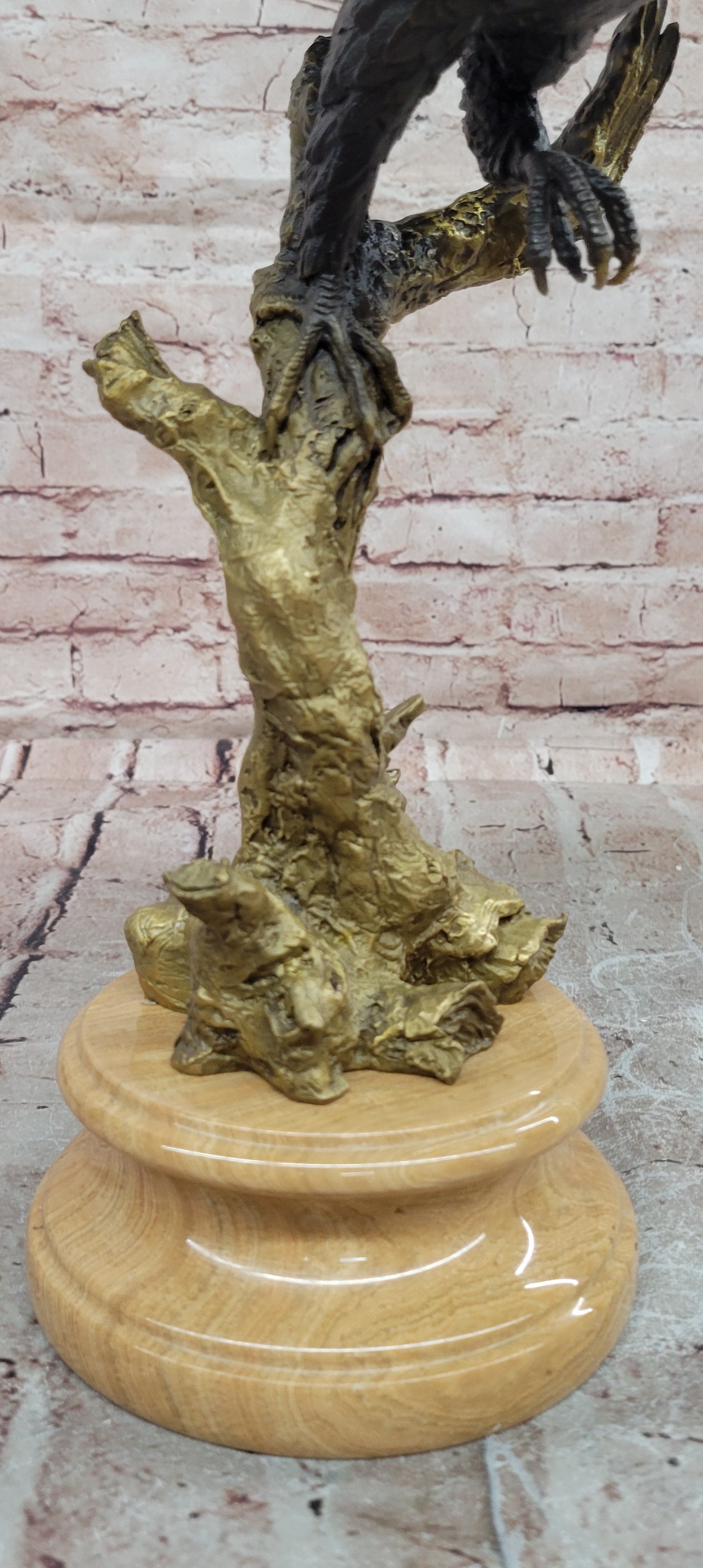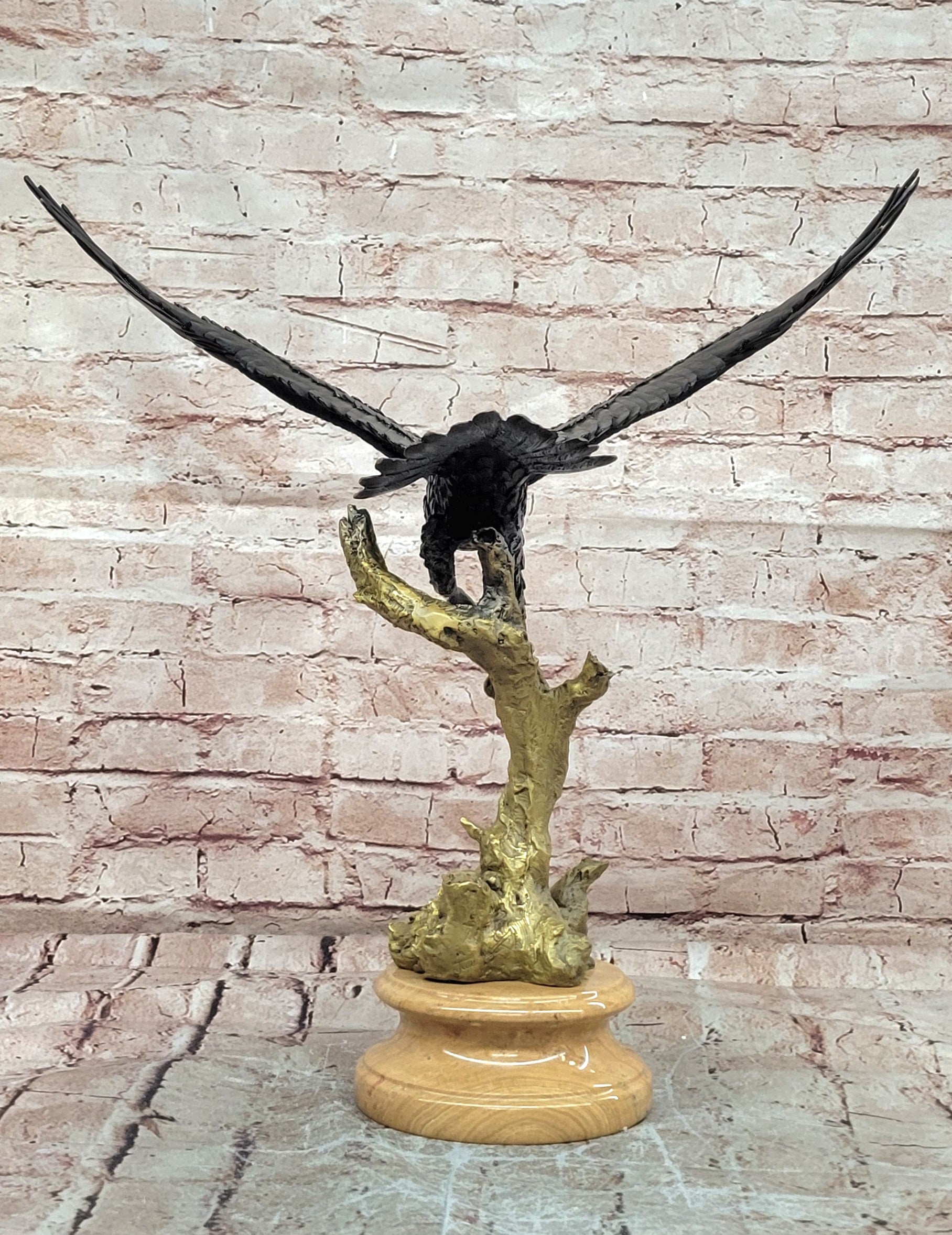 Hand made using the traditional lost wax casting method, this genuine bronze sculpture features a special patina that adds depth and richness to the detailed feathers and muscular form. The artistry and craftsmanship ensure that each contour and texture is finely preserved, highlighting the lifelike energy and elegance of this magnificent bird.