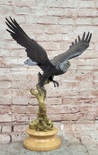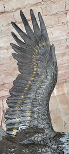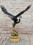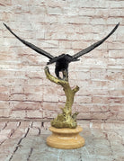 Soaring Bald Eagle Bronze Sculpture with Outstretched Wings on Marble Base