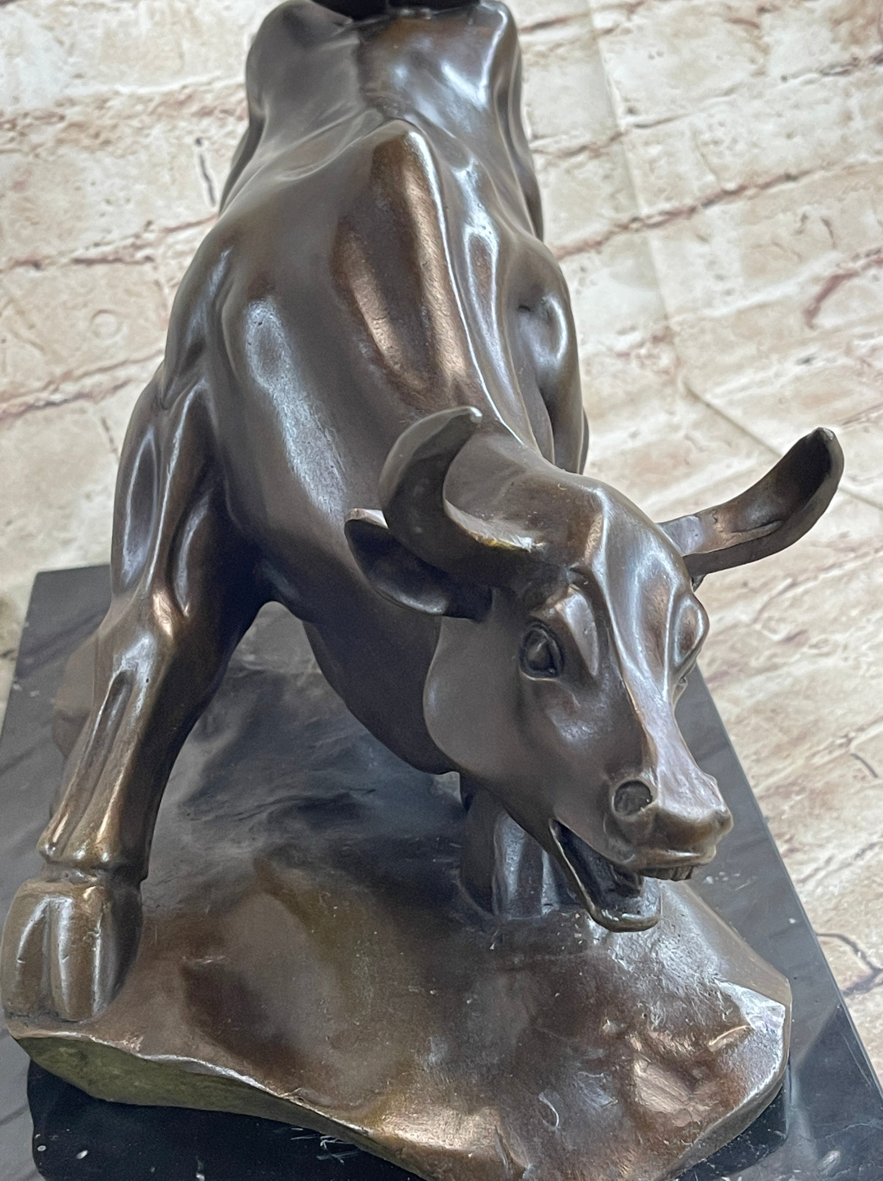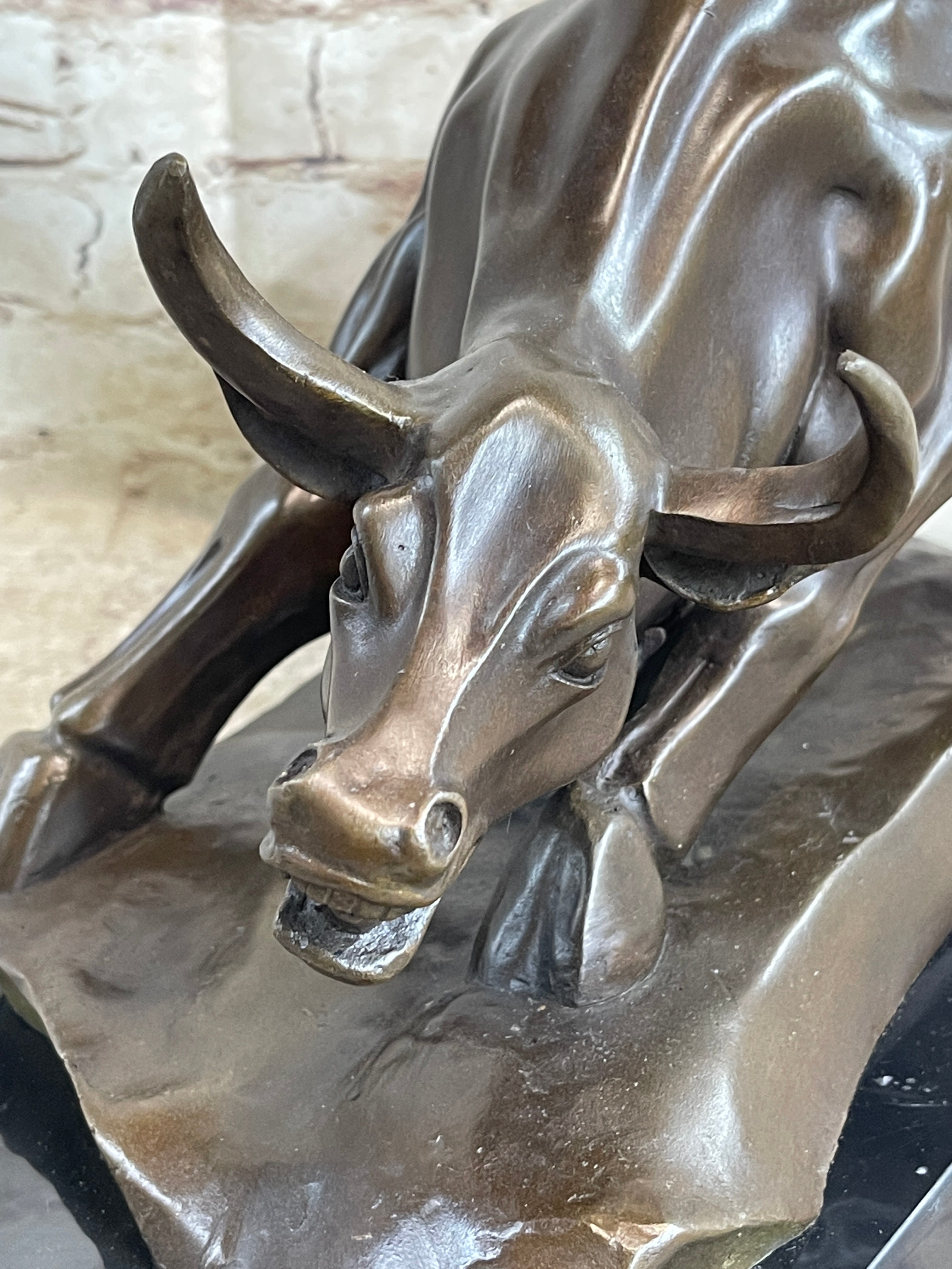 Bronze Statue Marble Base Spanish Matador Bull Toro Statue Sculpture Figurine