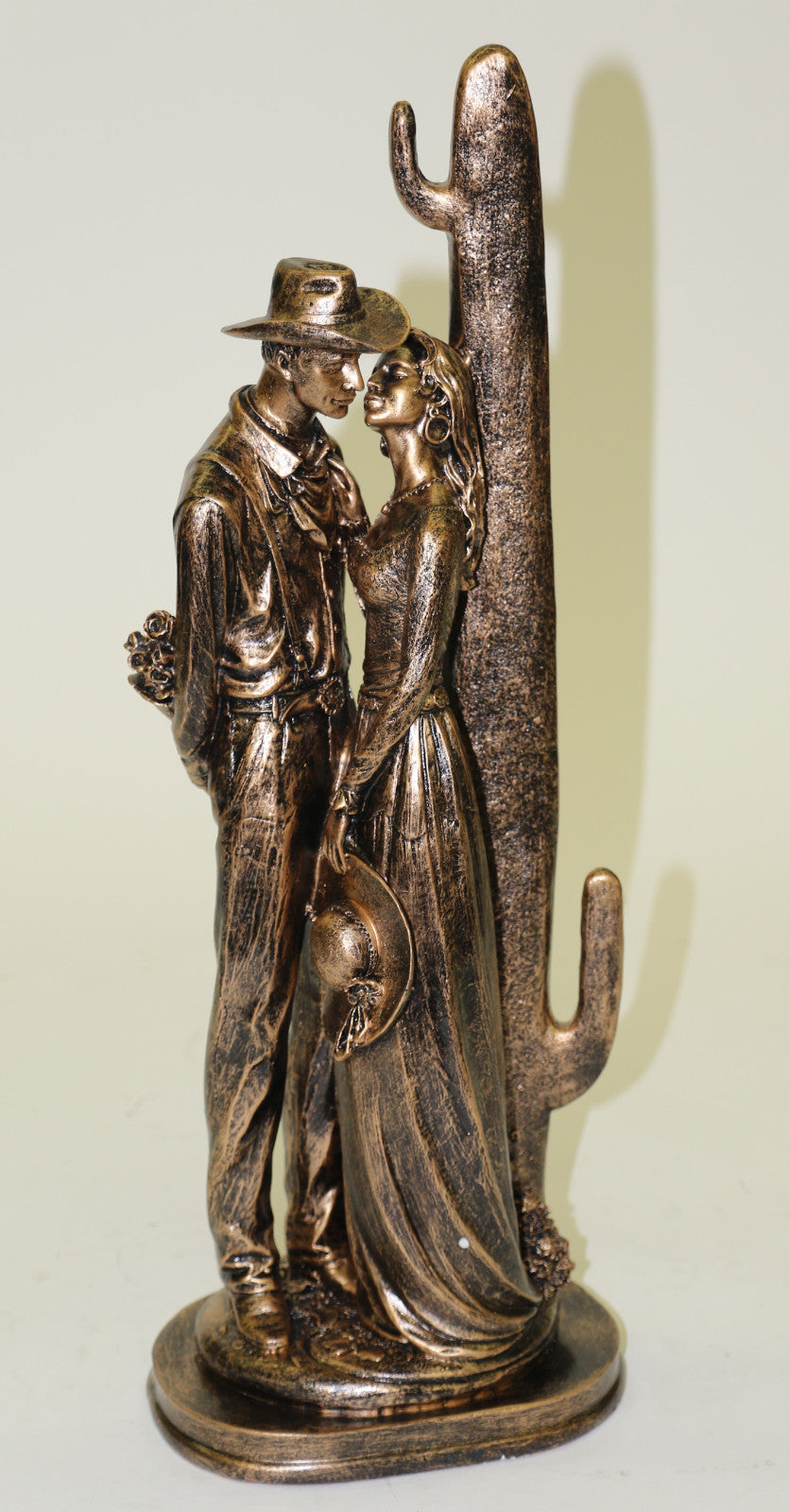 Cold Cast Bronze Good Looking Cowboy Courting Gorgeous Gal Hand Made Figurine