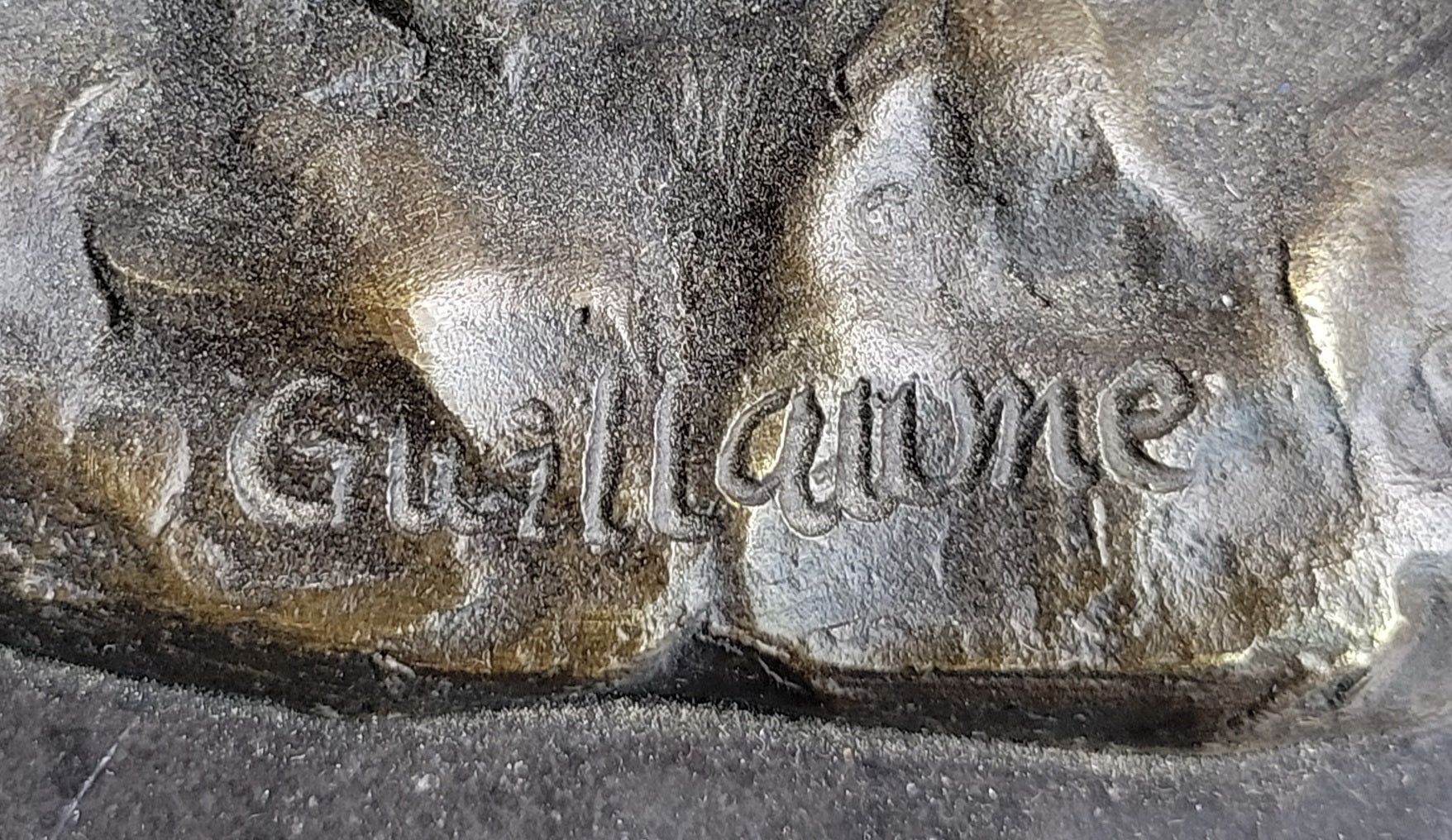 To enhance its visual impact, the artwork is mounted upon a black marble base, elevating its presence and lending a touch of sophistication. The sculpture proudly bears the signature of the esteemed artist, Guillaume, adding a seal of quality and mastery to this remarkable piece.