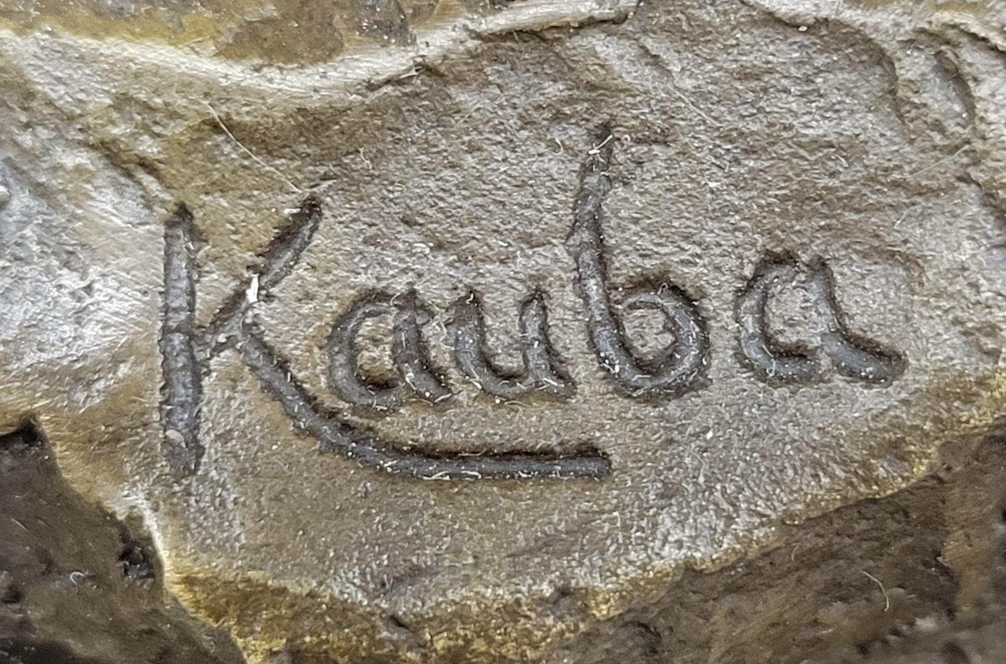 Resting proudly on a black marble base, the sculpture becomes a striking centerpiece, enhancing the overall presentation. The brown patina adds warmth and depth to the bronze, accentuating the intricate details of the cowboy and his horse. Handmade by the lost wax method, also known as hot cast, this sculpture preserves the artist's vision, making each piece a unique testament to Kauba's skill and dedication.