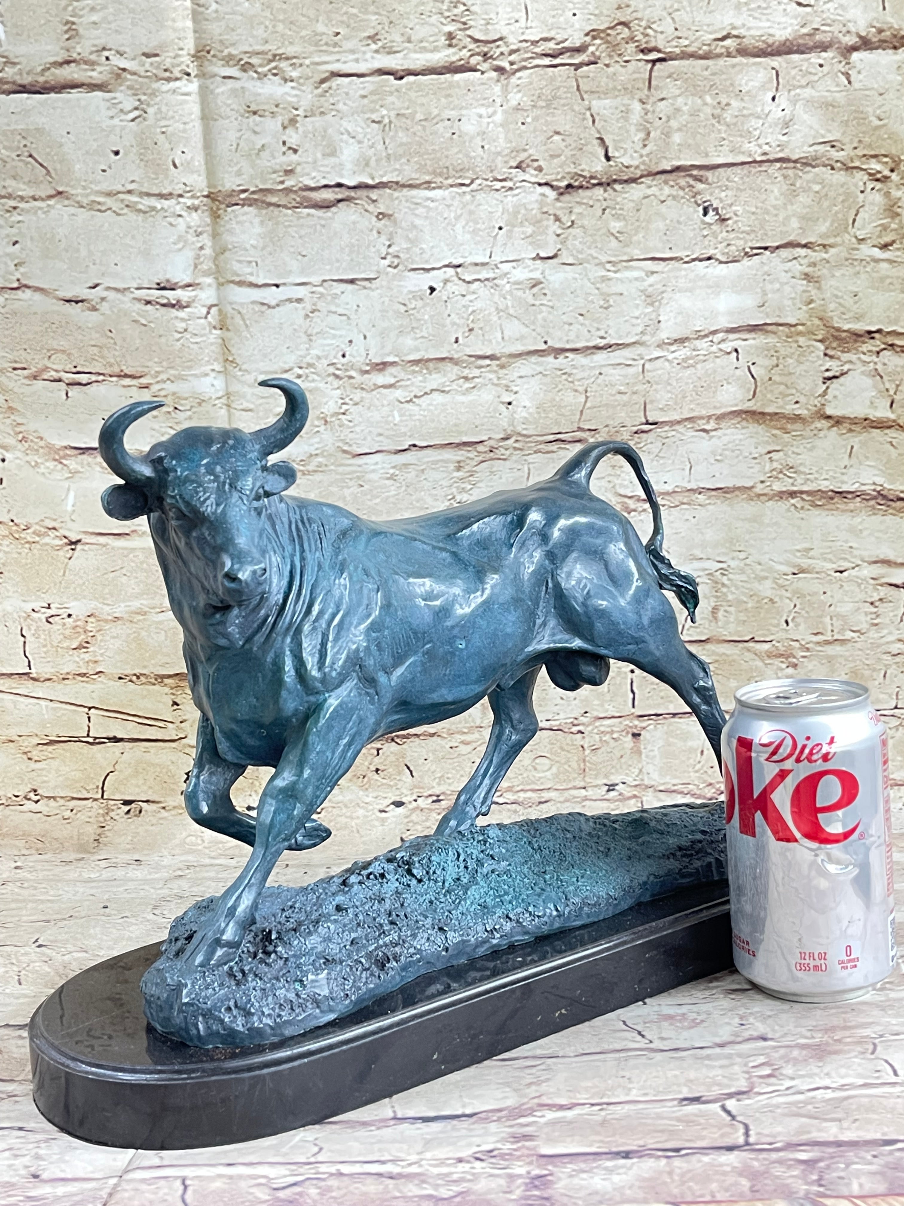 Meticulously handcrafted, this sculpture is cast using the renowned "Lost Wax Method," ensuring exceptional detail and artistry. Made entirely of 100% bronze, it showcases the enduring allure of this remarkable material. Every aspect of the sculpture is fully detailed, capturing the essence and power of the bull.