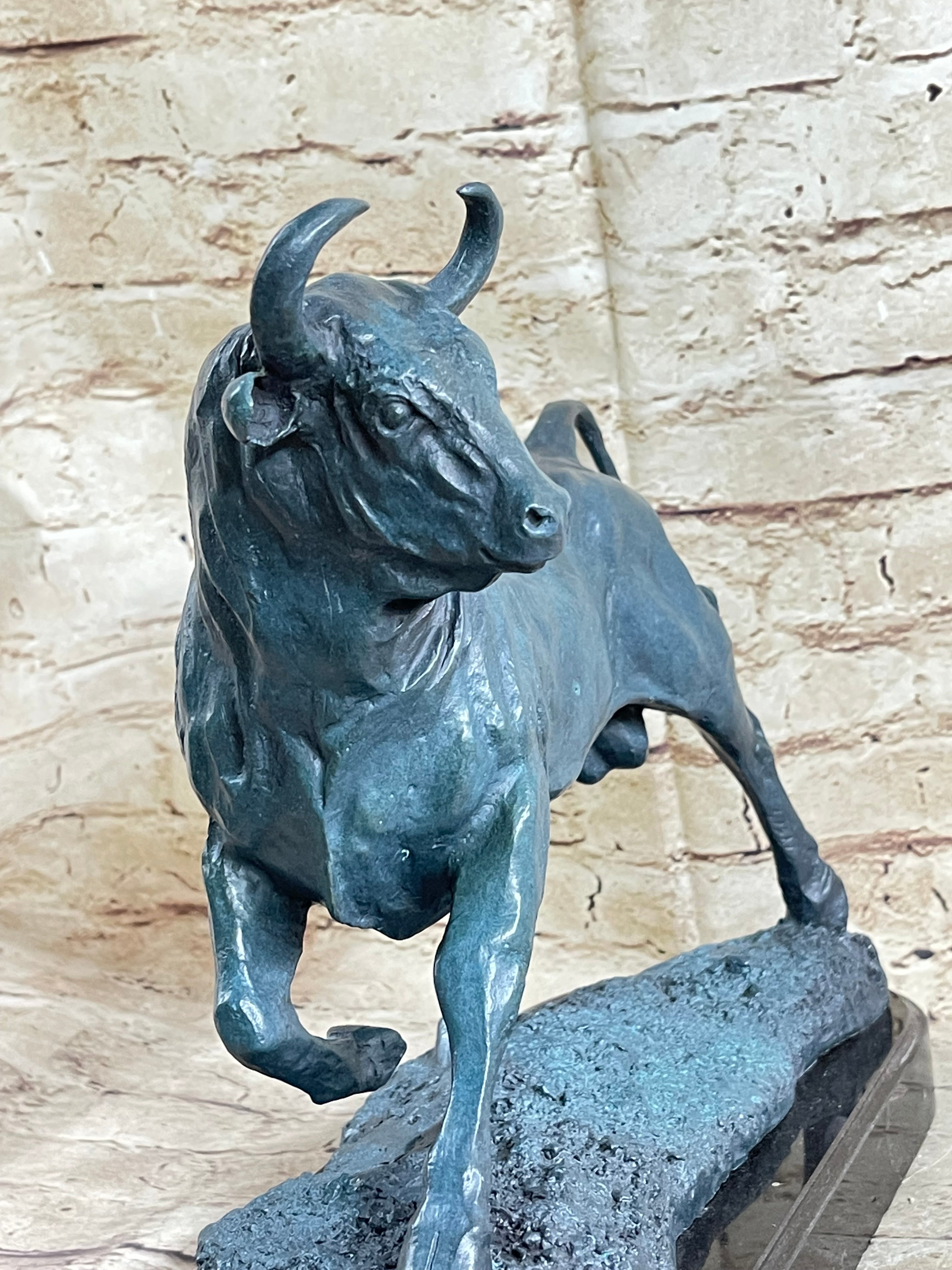 Wall Street Bull Green Patina Bronze Statue Sculpture Figure Stock Market 11" x 16"