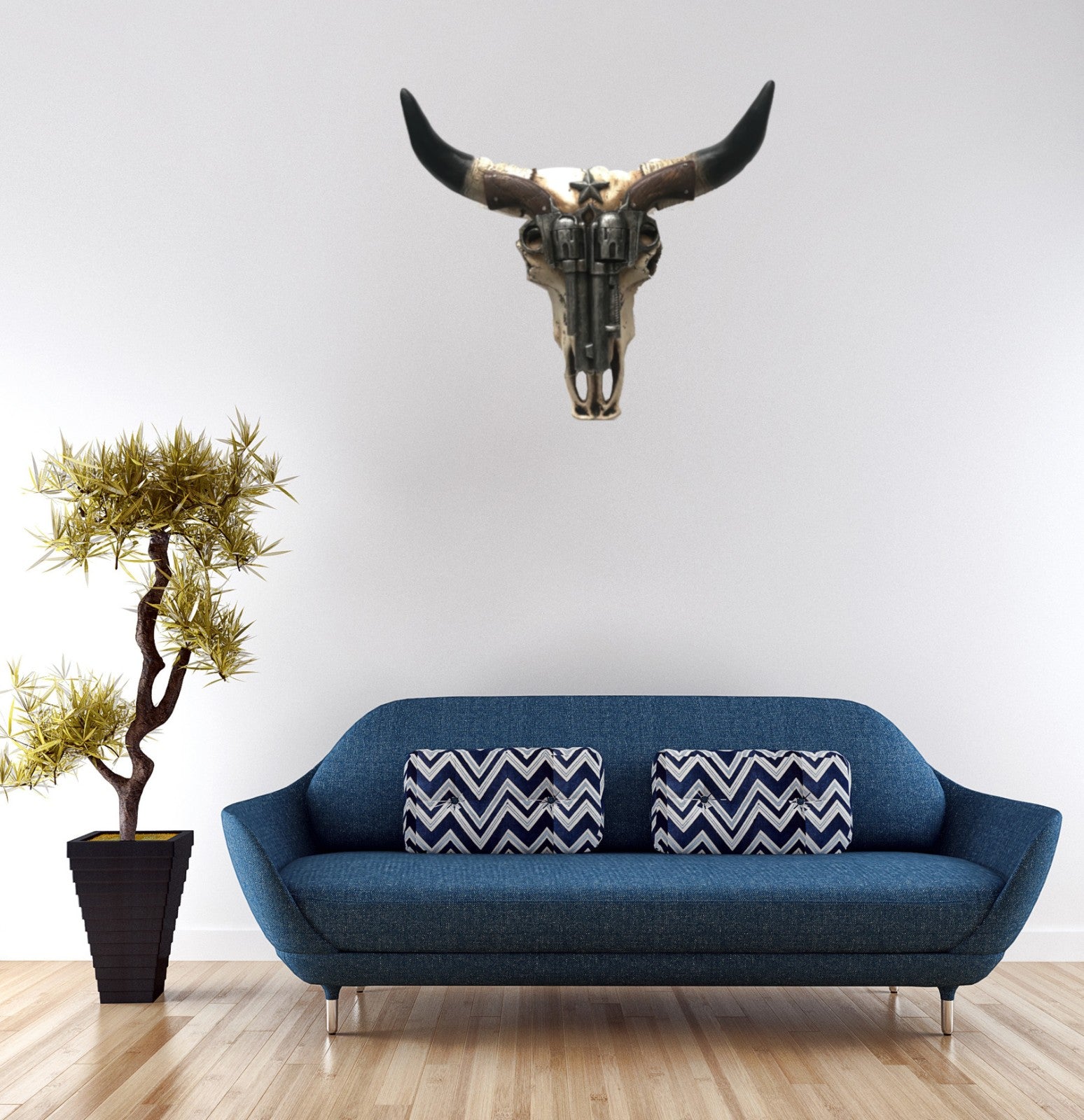 Hello statement maker!!!! This Bull head sculpture will sure add the missing farmhouse touch to any of your rooms. Feature it on any of your walls and you will have a statement piece year round!* Crafted of Cold Cast Resin Metallic Bronze Finish
