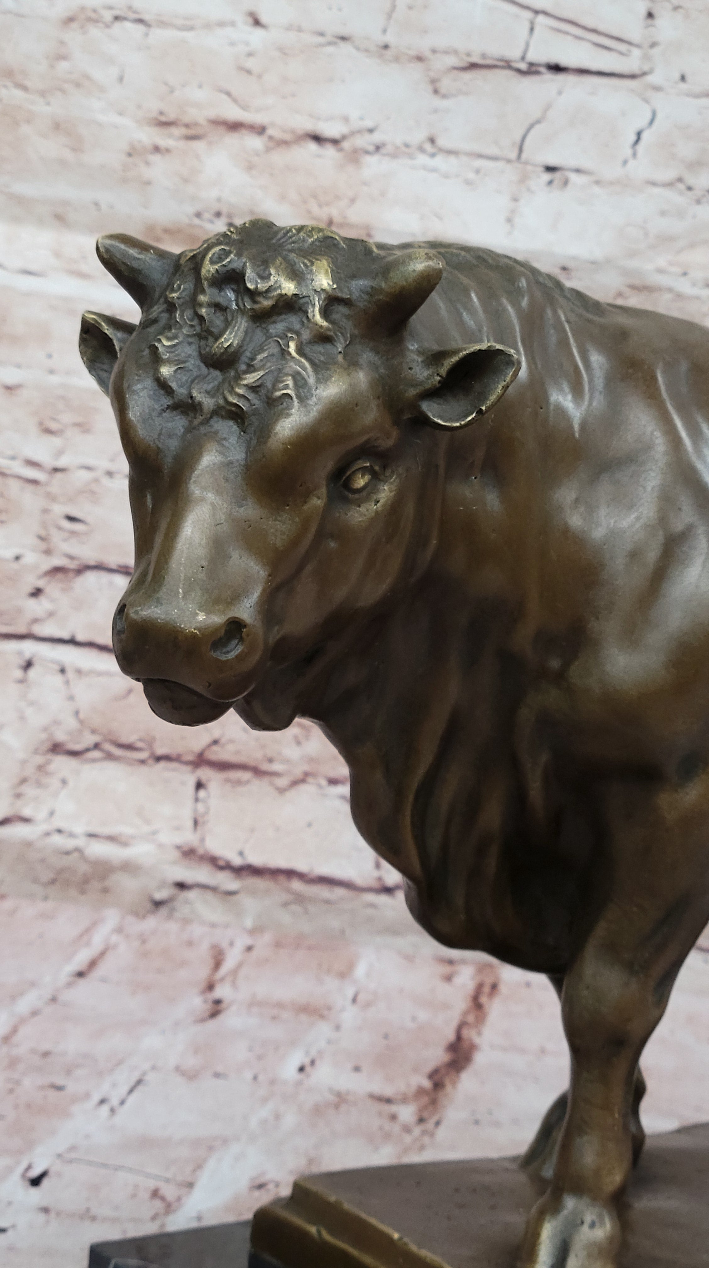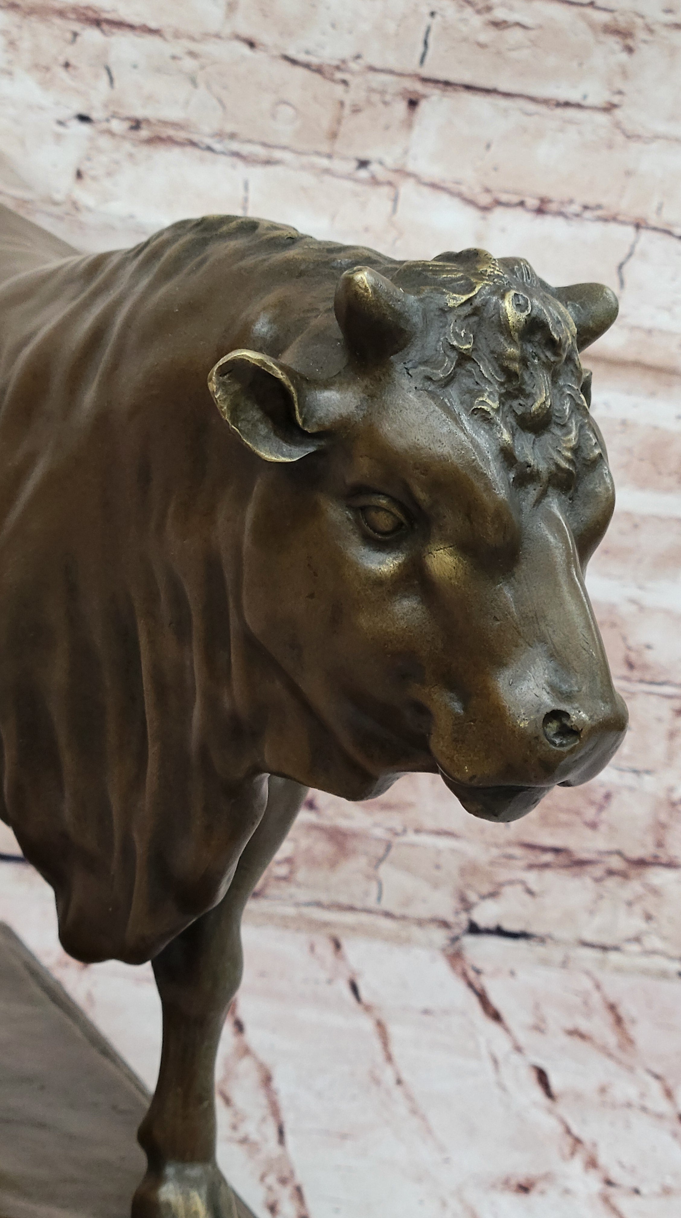 Sturdy Bronze Bull Statue on Marble Base – Powerful Animal Sculpture with Realistic Detail