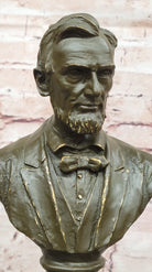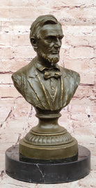 Abraham Lincoln Presidential Bronze Bust Sculpture Statue on Marble Base