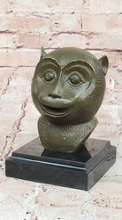Abstract Bronze Primate Sculpture – Smiling Monkey Bust on Marble Base