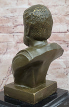 The piece is handmade using the traditional lost wax method, allowing for meticulous detail and a refined finish. Cast in genuine bronze, it features a rich dark brown patina that enhances the depth and contrast of the form. Every element—from the curls of his hair to the folds in his robe—demonstrates the skill and precision of the artist's hand.