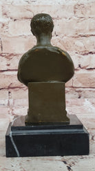 The sculpture is handmade using the traditional lost wax casting method, a time-honored technique known for preserving fine detail and creating lasting art. The rich brown patina enhances the texture and depth of the bust, while the solid black marble base provides stability and an elegant contrast, ideal for dignified display in any setting.