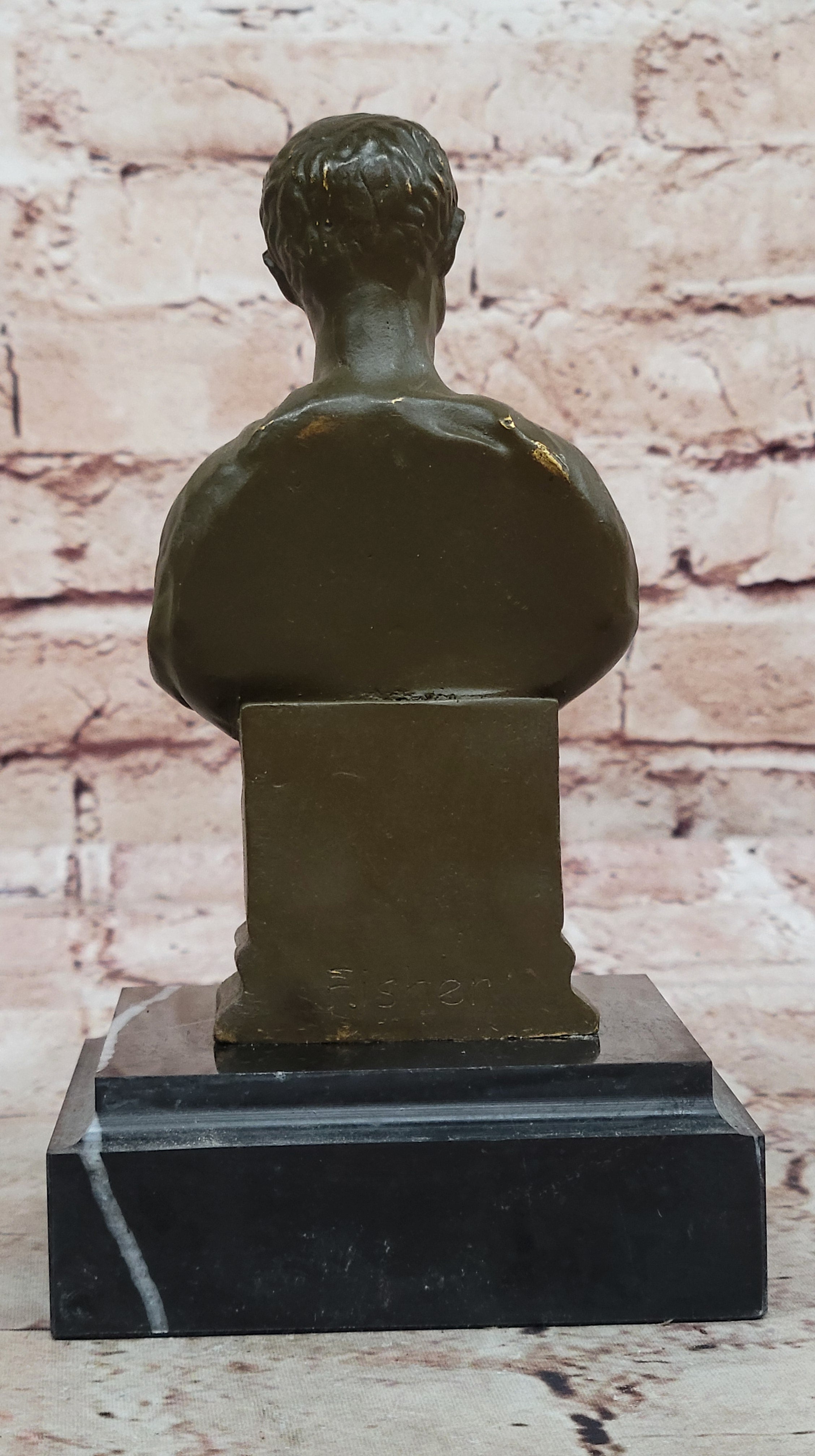 Signed by artist Fisher, this bronze bust is both a decorative centerpiece and a historical tribute to the enduring legacy of Caesar. Perfect for collectors of Roman artifacts, classical décor, or timeless leadership symbolism.Bronze Dimensions with Marble Base: Height 7" X Width 4"