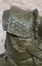 Handcrafted using the traditional lost wax method, this sculpture showcases masterful artistry and lasting craftsmanship. The dark brown patina emphasizes the strong contours and rugged textures of the figure, adding depth and drama to this commanding work.