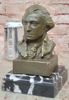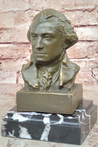 The bust is handcrafted using the traditional lost wax casting method, allowing for exquisite detail in the facial features, hair, and clothing. Finished with a rich brown patina, the piece carries a timeless appearance that honors the gravity of its subject. The craftsmanship highlights both historical reverence and artistic finesse, making it a standout piece of collectible memorabilia.