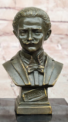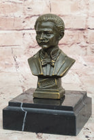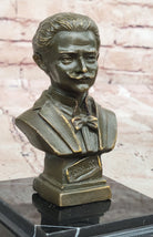 This bronze work was created using the traditional lost wax casting technique, a method prized for its precision and durability. The piece is finished with a rich brown patina that highlights its depth and texture, and it rests securely atop a polished black marble base. Signed by the artist Fisher, this bust is both a sophisticated decorative piece and a meaningful homage to one of history’s great musical minds. It makes an ideal addition to any classical music lover’s collection or cultured interior space.Bronze Dimensions with Marble Base: Height 6" X Width 4"