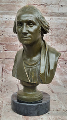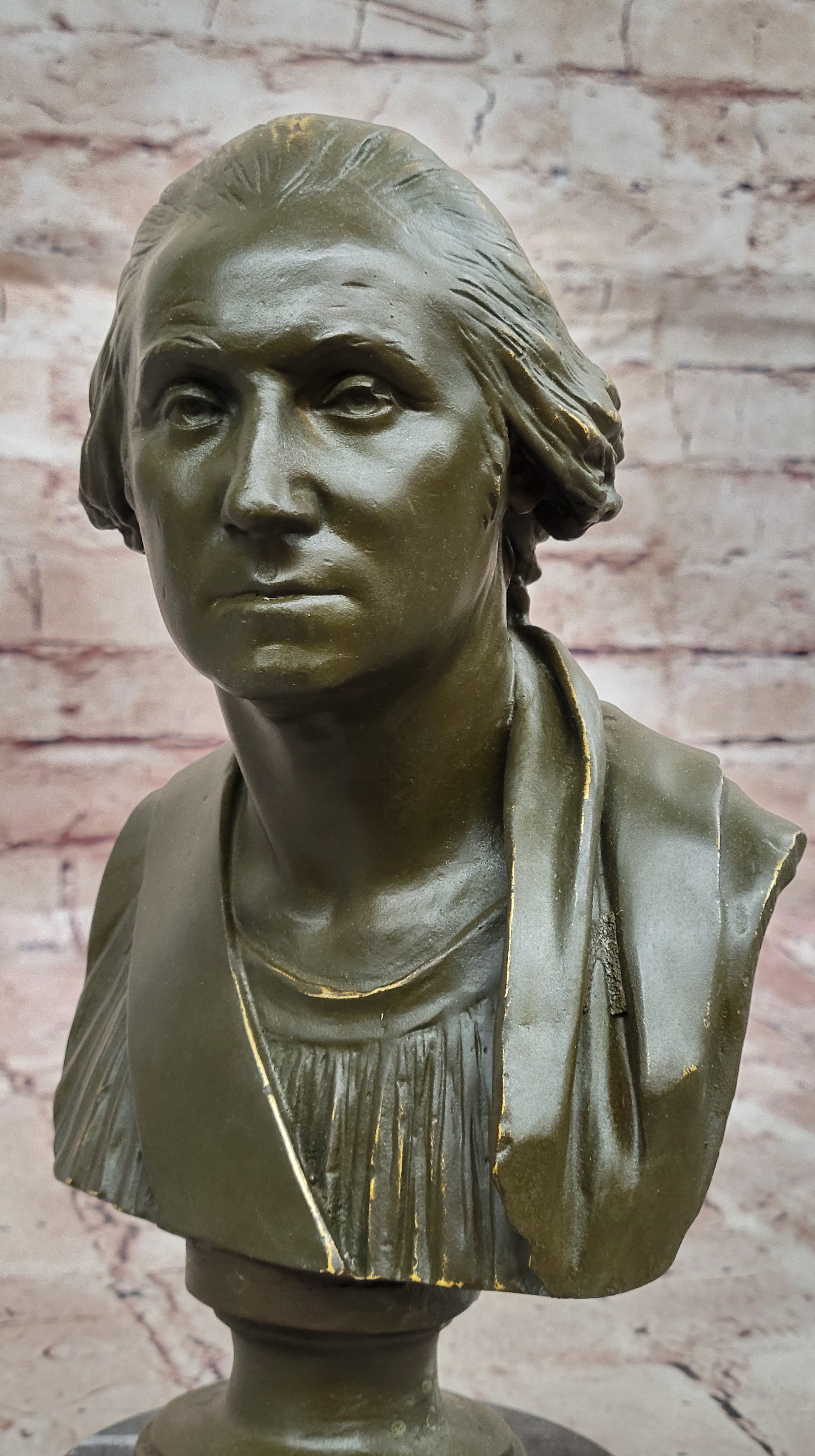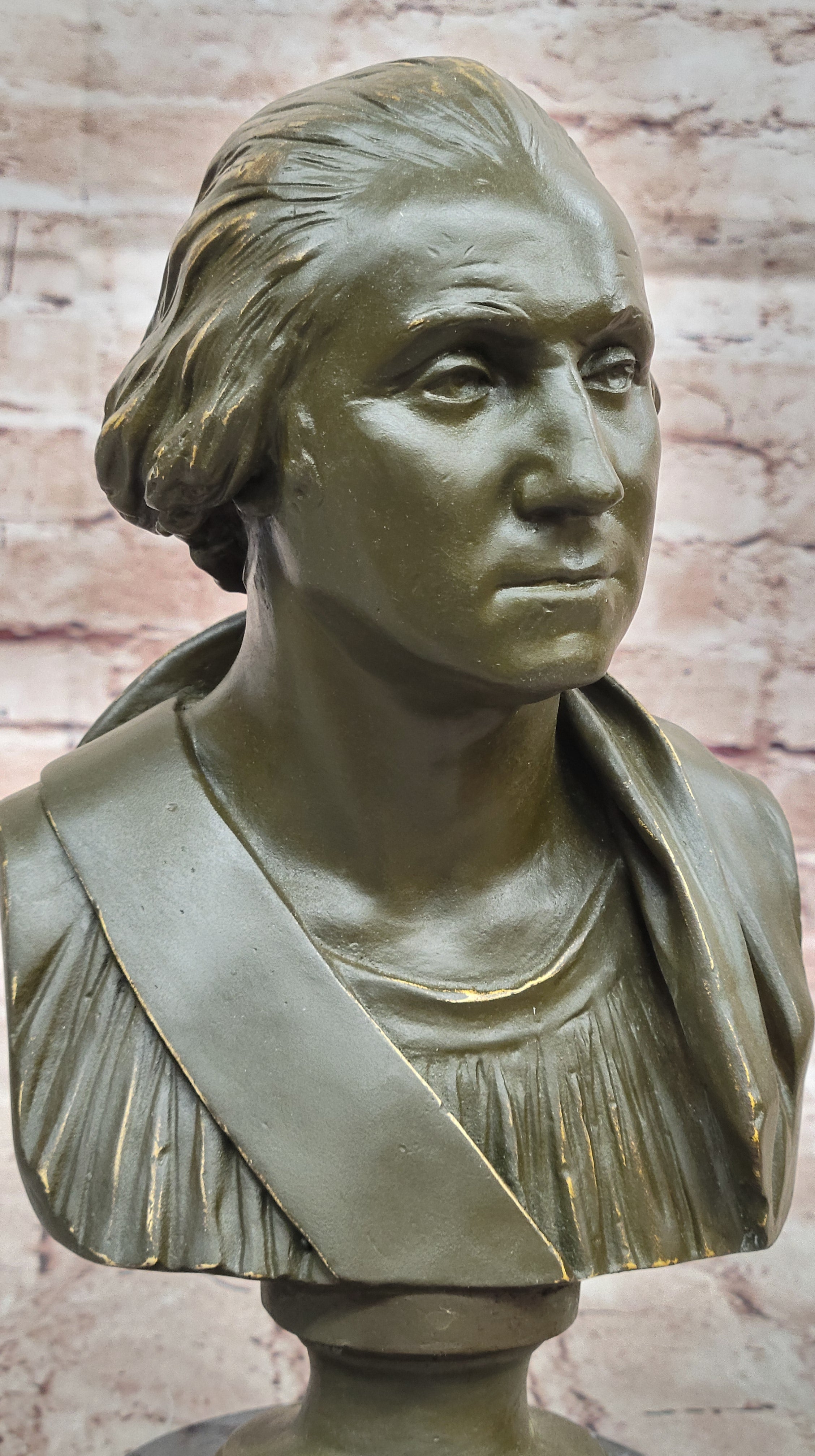 Crafted using the traditional lost wax method, this sculpture reflects the artisan's dedication to classical techniques and precision. The rich brown patina enhances the depth of the bust, giving it a timeless, museum-quality appearance. Every contour, from Washington’s strong jawline to the folds of his colonial-era attire, is executed with careful attention to historical accuracy and artistic excellence.
