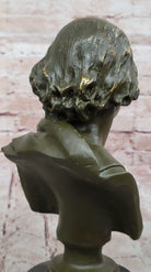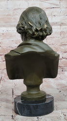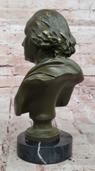 The bust is mounted on a sleek round black marble base, providing a sturdy and elegant foundation that complements the sculpture's noble presence. Signed by the artist Fisher, this piece is not only a celebration of American history but also a testament to fine bronze artistry—ideal for collectors, historians, and admirers of the nation's founding legacy.Bronze Dimensions with Marble Base: Height 11" X Width 5.5"