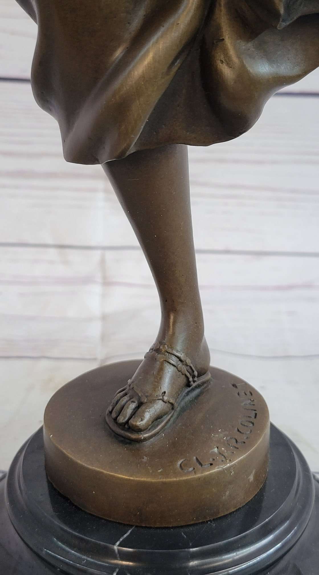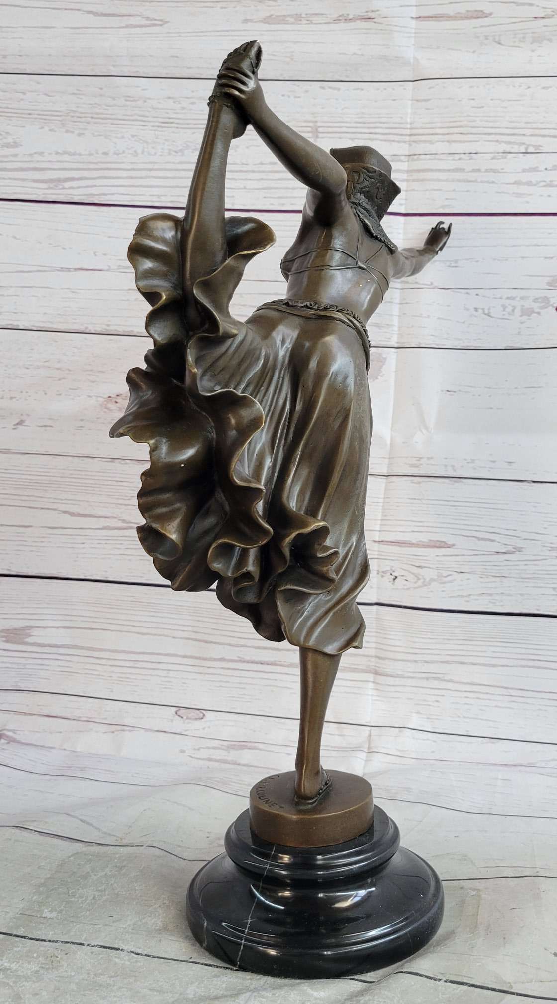 Crafted with precision using the lost wax method, this sculpture is made of 100% genuine bronze and is inscribed by the artist. It rests securely on a polished marble base, which provides a refined foundation to the dynamic pose above. In excellent condition, this artwork stands as a remarkable tribute to the beauty of dance and the artistry of one of the early 20th century’s most celebrated sculptors.Bronze Dimensions with Marble Base: Height 16" X Width 13"