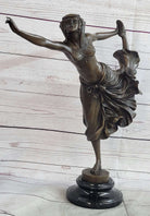Semi Nude Female Arabesque Dancer Bronze Sculpture after Colinet on Marble Base