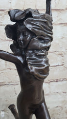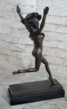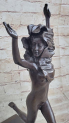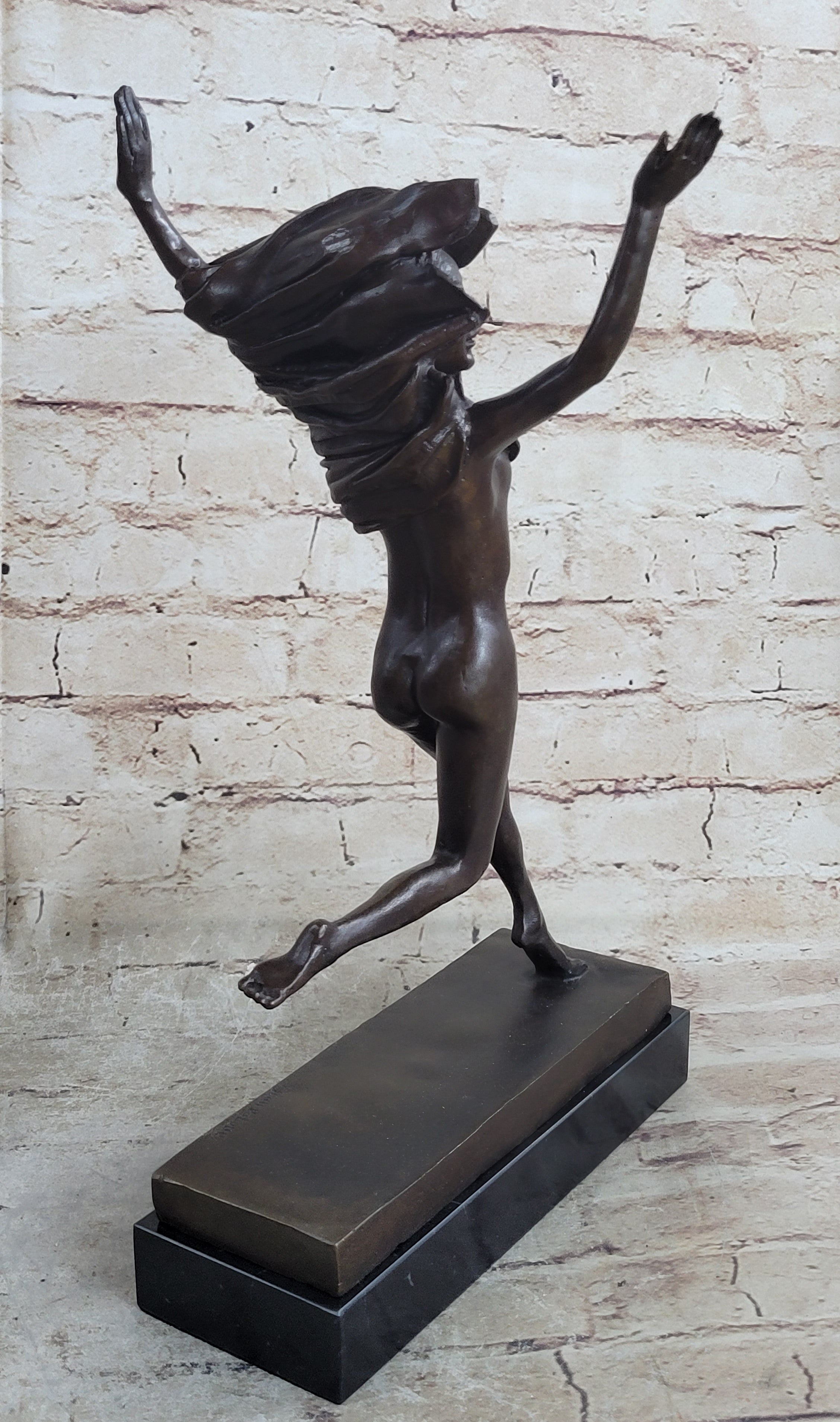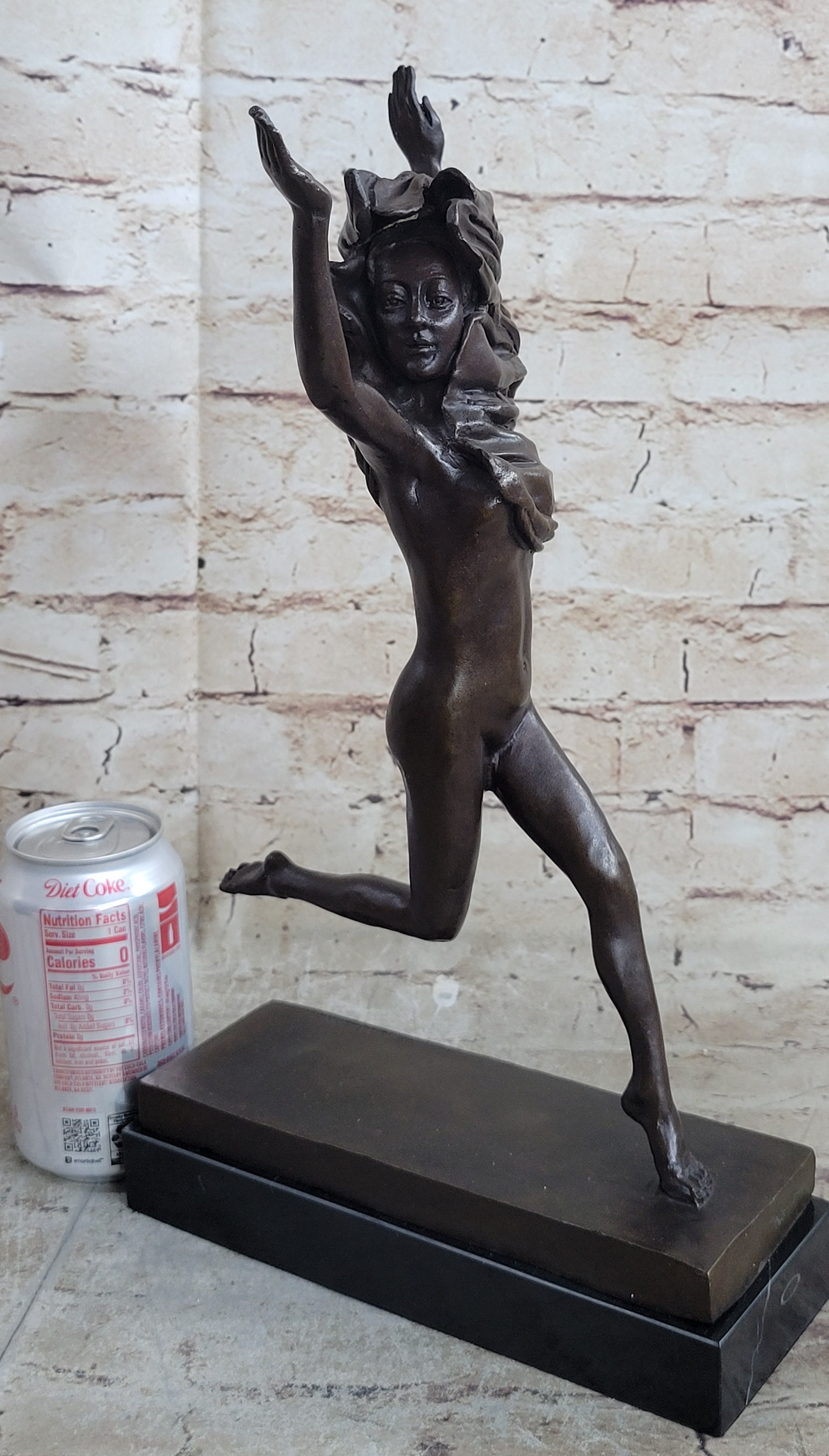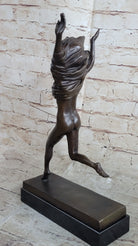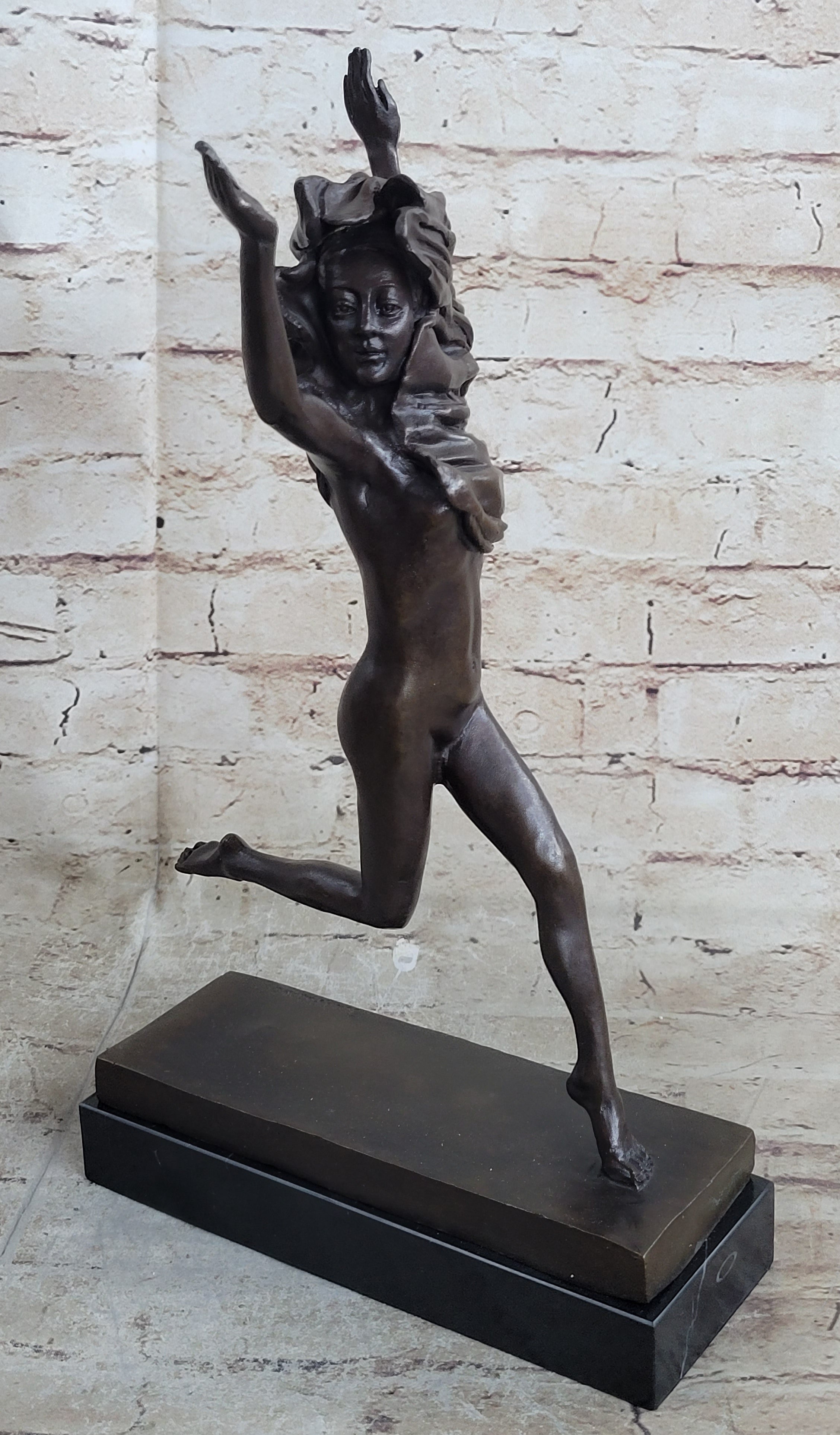 100% Solid Bronze Nude Woman Running in the Street Sculpture Figure Statue