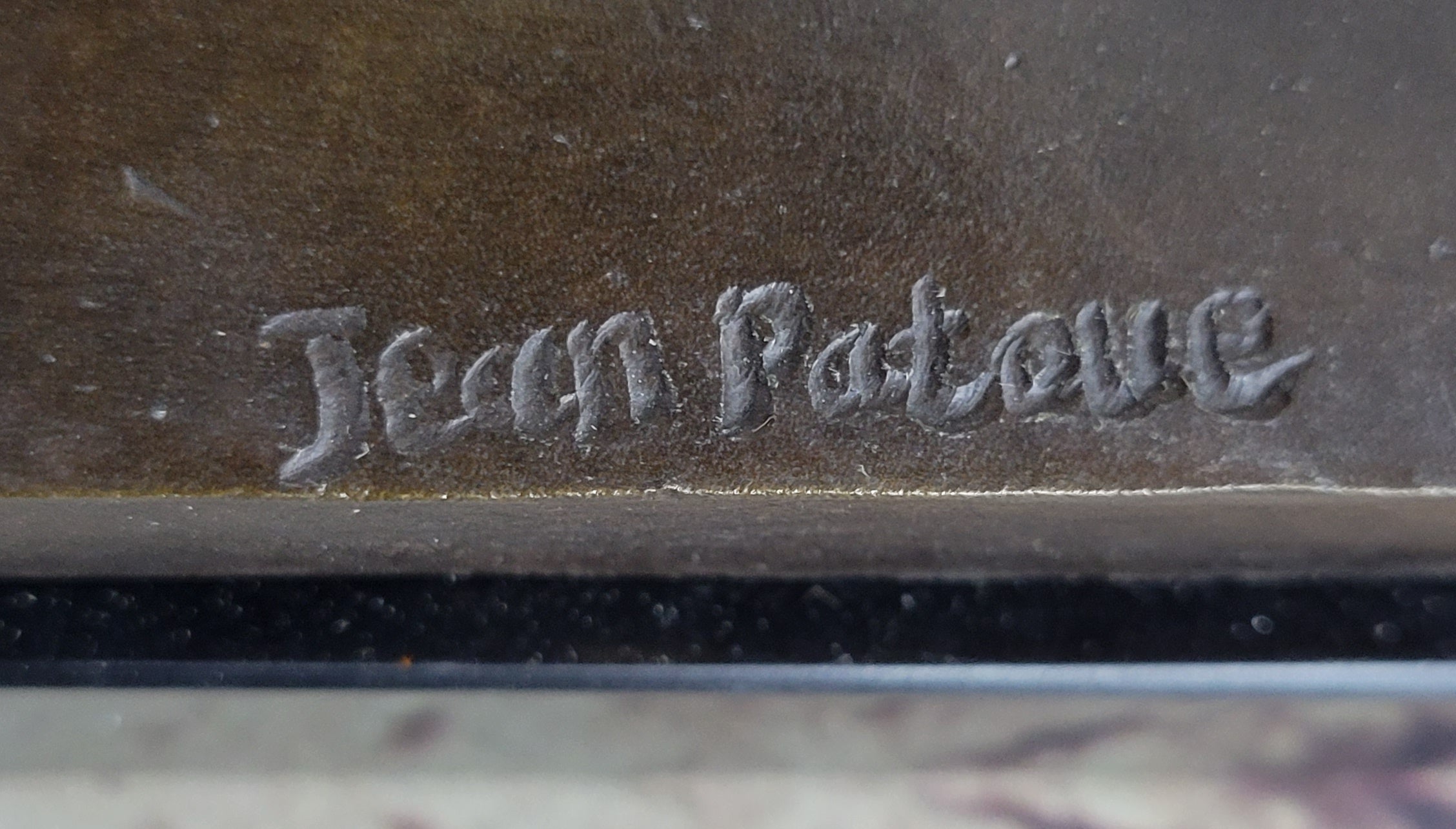 Cast using the traditional lost wax method, this sculpture is mounted on a sleek black marble base, adding an element of sophistication. It is signed by the esteemed artist Jean Patoue, making it a timeless collectible that will enhance any art lover’s collection.Bronze Dimensions with Marble Base: Height 14.5" X Width 9"