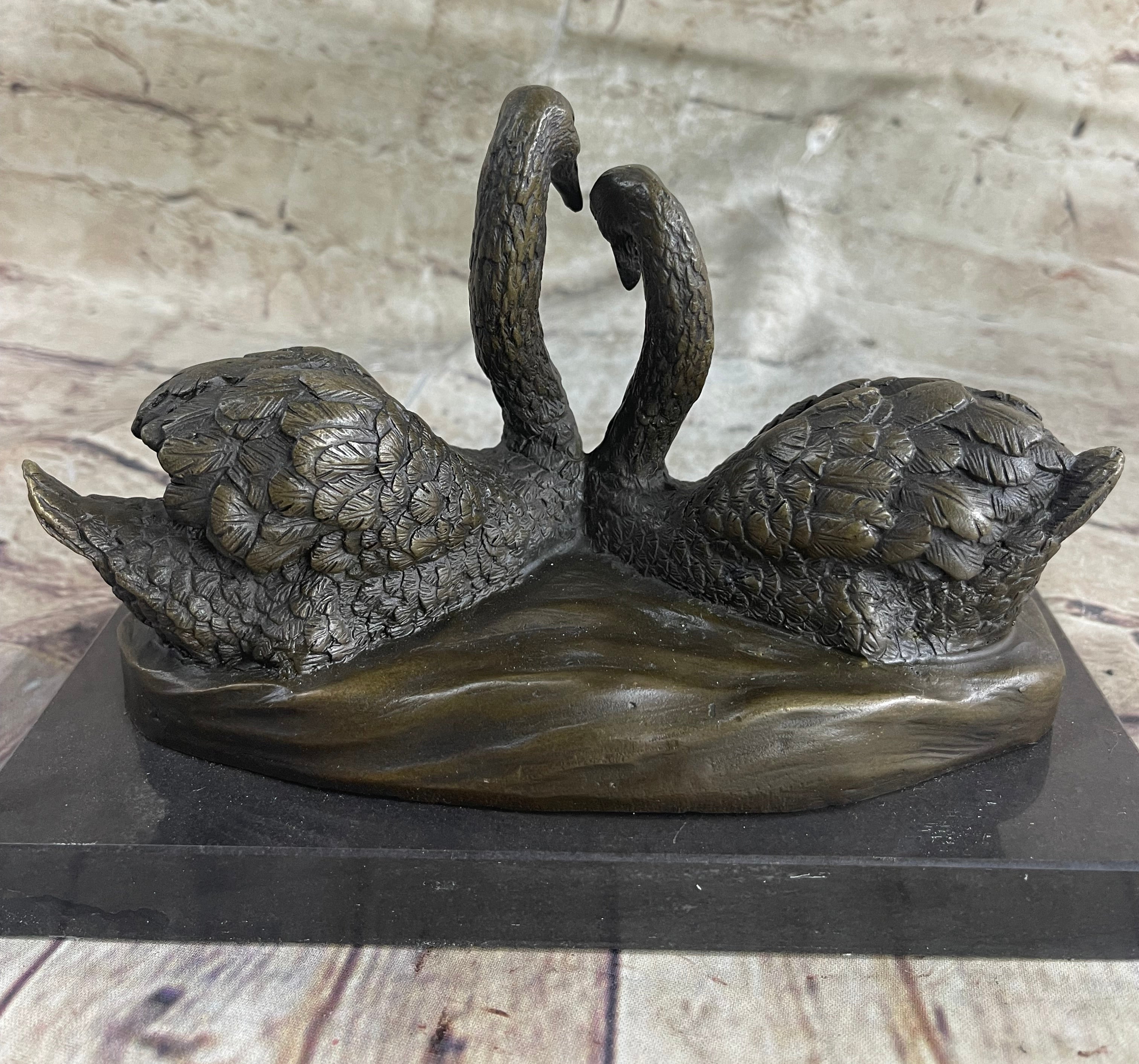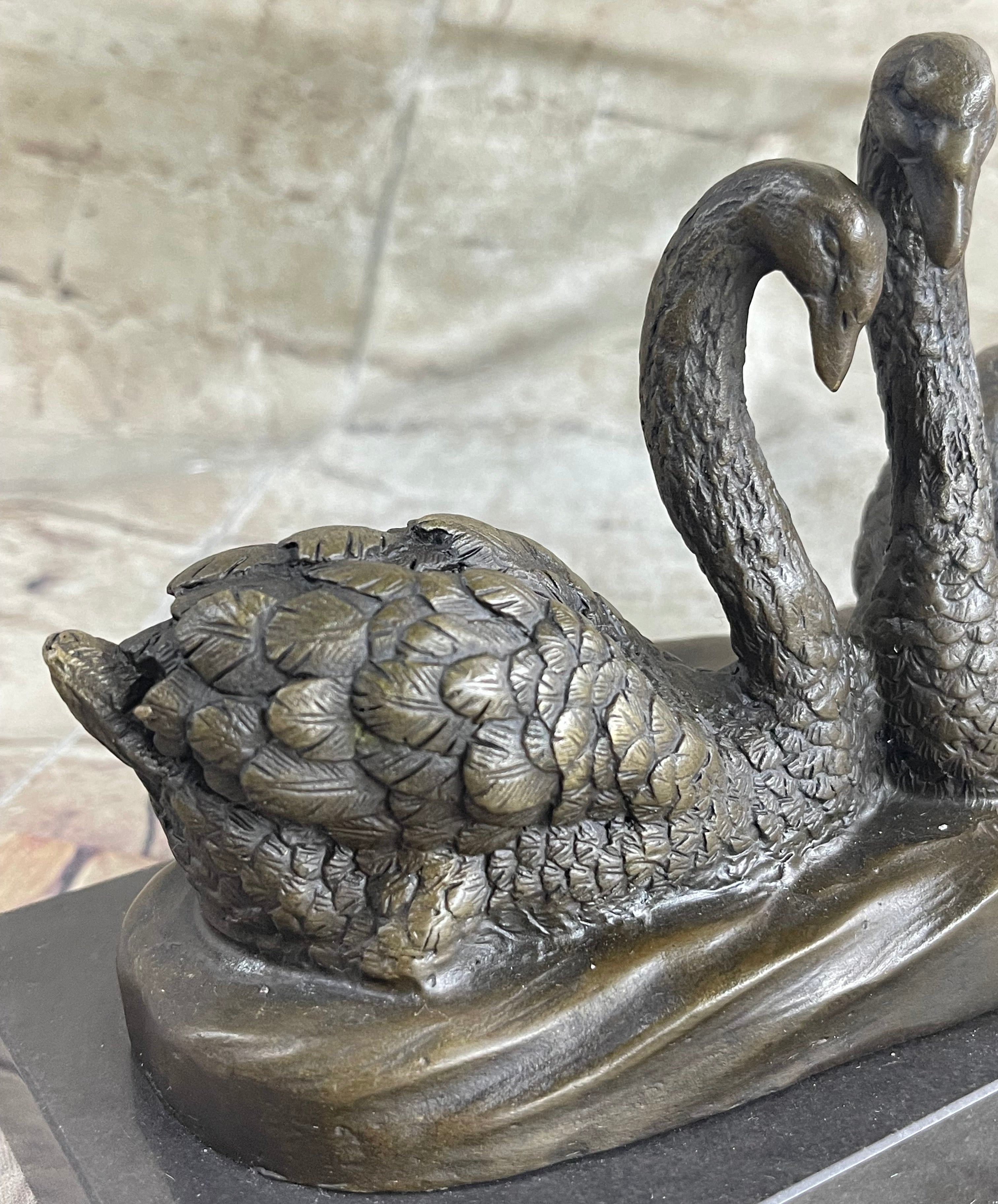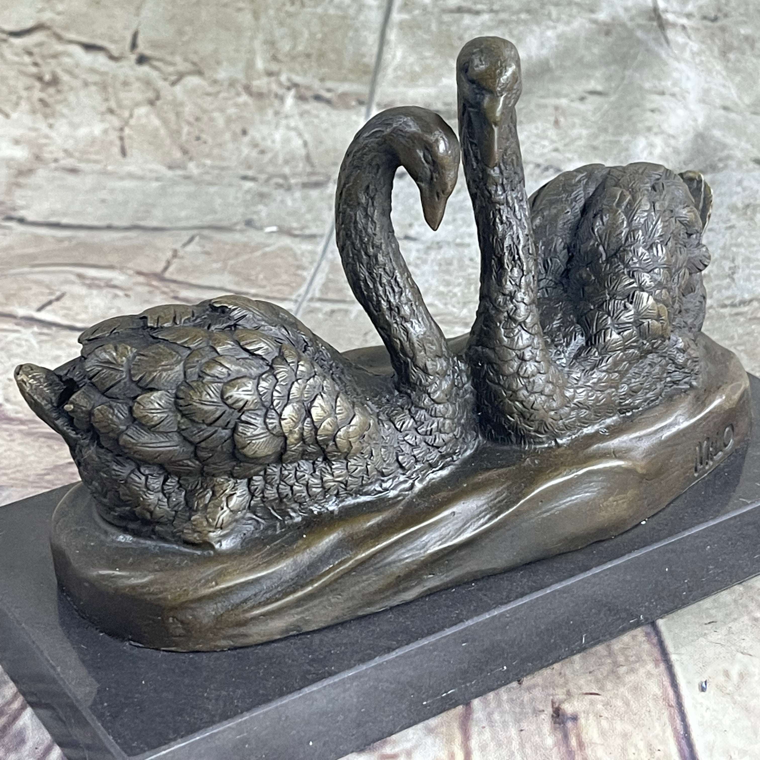 2 SWAN DANCING BRONZE SCULPTURE HOT CAST BRONZE SCULPTURE MARBLE BASE FIGURINE